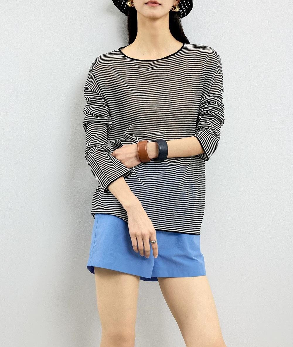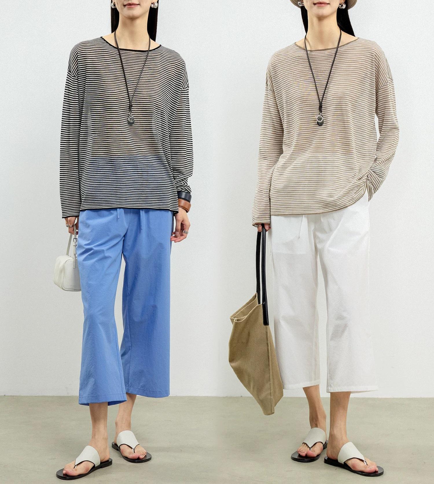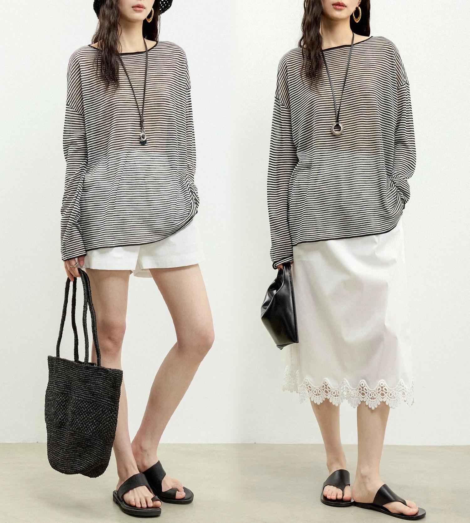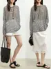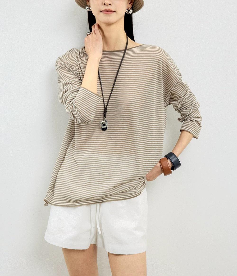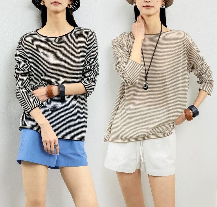 Hilo de Papel Mezcla de Lino Ligero Seco Transpirable Cómodo Protección Solar Rayado Suelto Verano Cubre-hombros