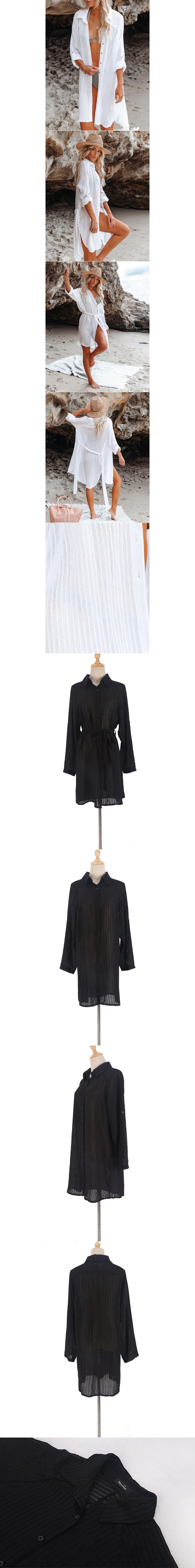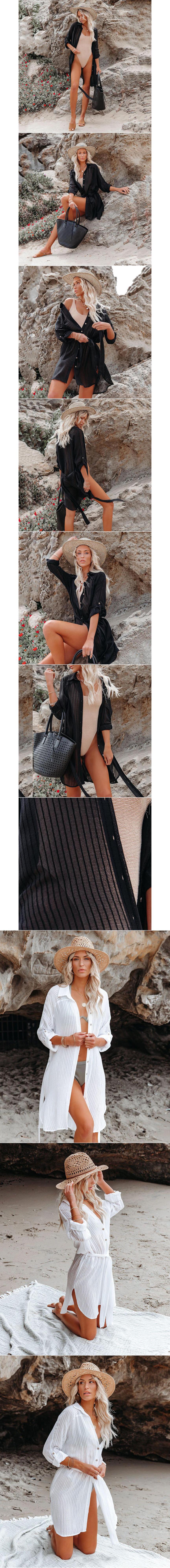 Nuevo bikini europeo y americano negro estilo camisa holgado de manga larga para cubrirse en la playa, traje de baño para vacaciones junto al mar, cárdigan protector solar