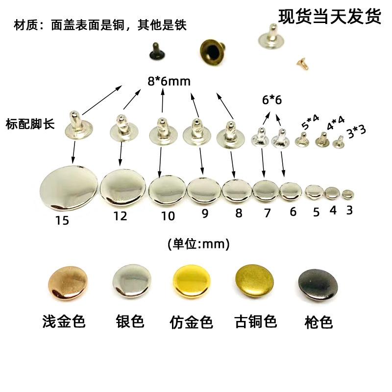 Remaches de un lado al por mayor del fabricante, Accesorios metálicos DIY para bolsos, ropa y zapatos, Pies de cuerno redondos, Remaches planos