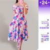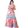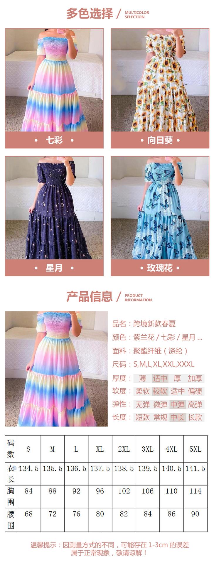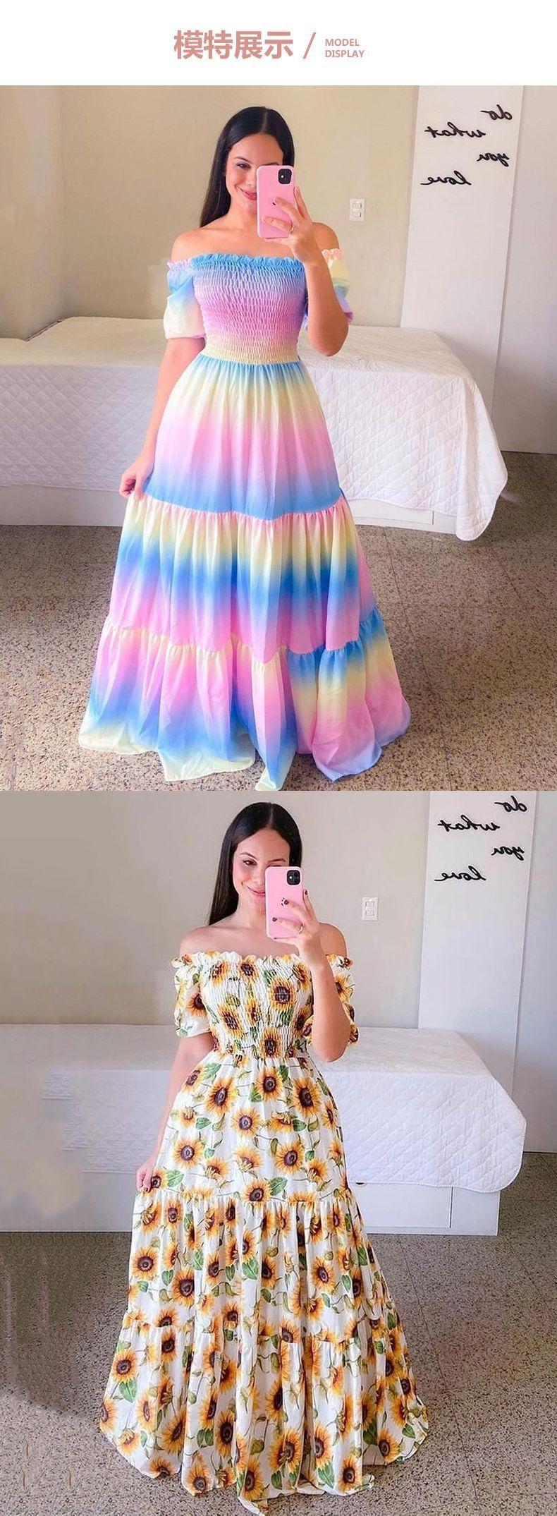 2025 nuevo vestido transfronterizo de primavera y verano para mujer europea y americana con hombros descubiertos, moda floral, falda larga estampada con hombros descubiertos