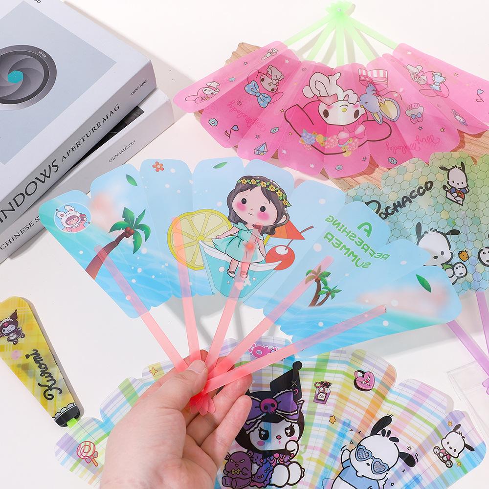 Verano lindo caricatura abanico pequeño niños estudiantes abanico plegable portátil caricatura abanico plegable de plástico regalo de jardín de infancia