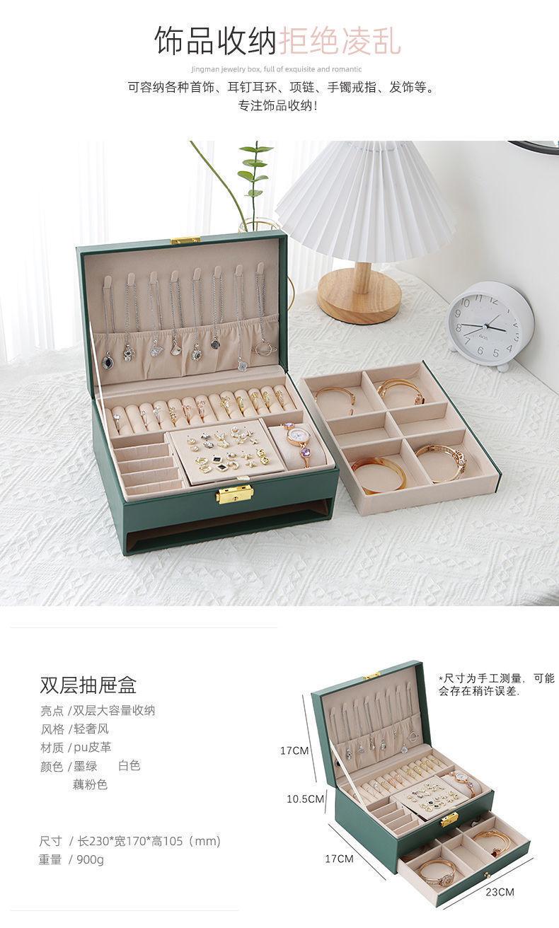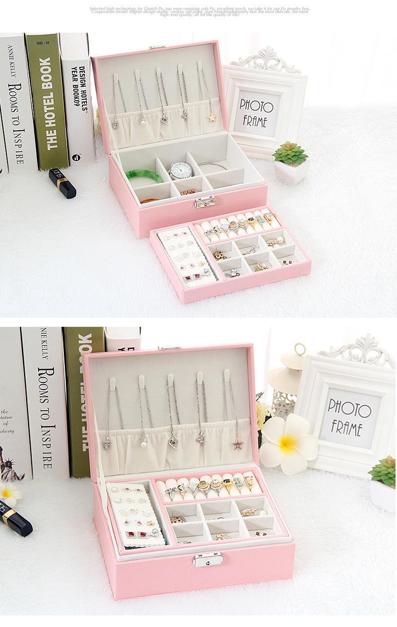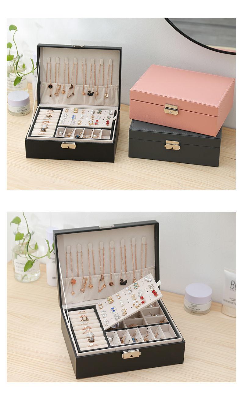 Double classic Black, Double-layer Classic White, Double-layer classic pink, Earrings box navy blue [can hold ...