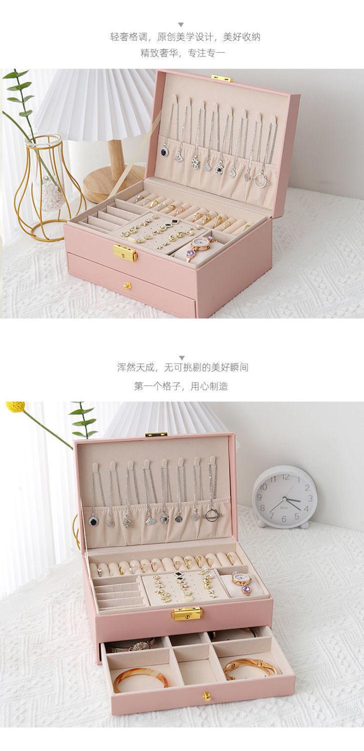 Caja de Joyería, Caja para Aretes de Hogar, Caja de Almacenamiento Decorativa, Caja de Almacenamiento para Collares, Pulseras de Joyería de Gran Capacidad
