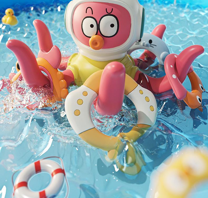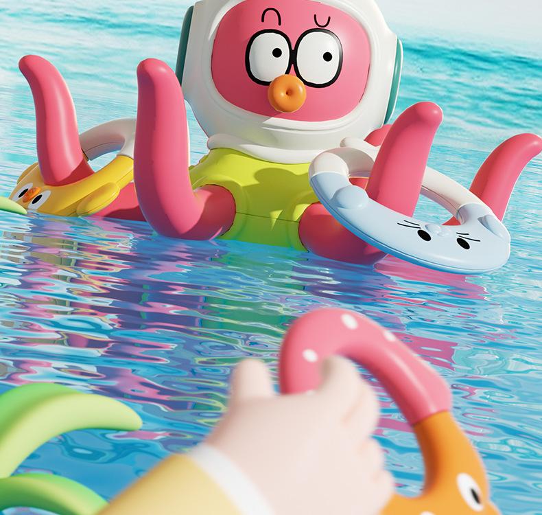Anillo de Pulpo Transfronterizo Juguete de Agua Baño de Bebé Flotante Anillo Lanzador Pulpo Juego de Agua Baño Juguete Pequeño
