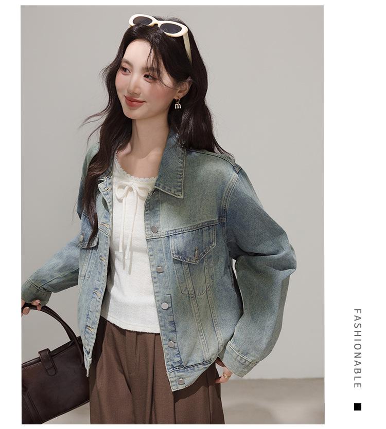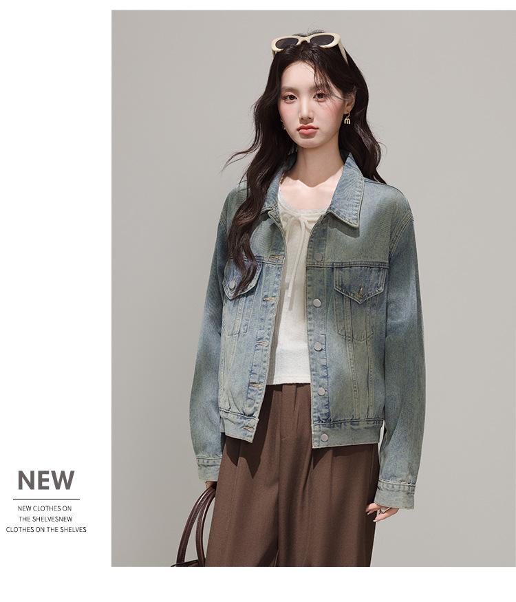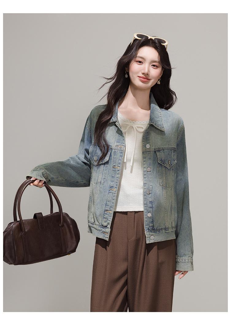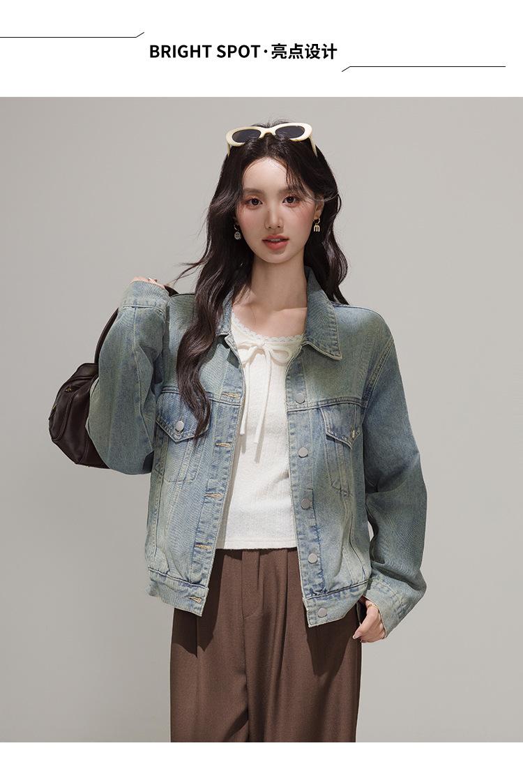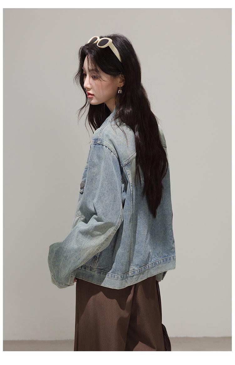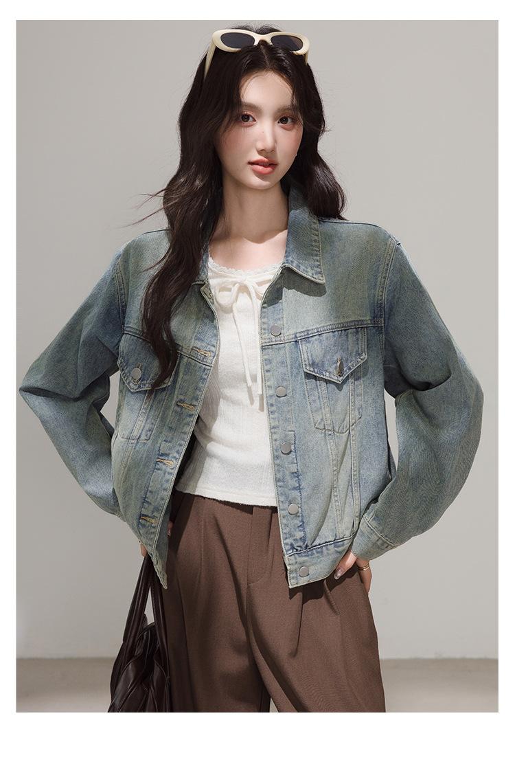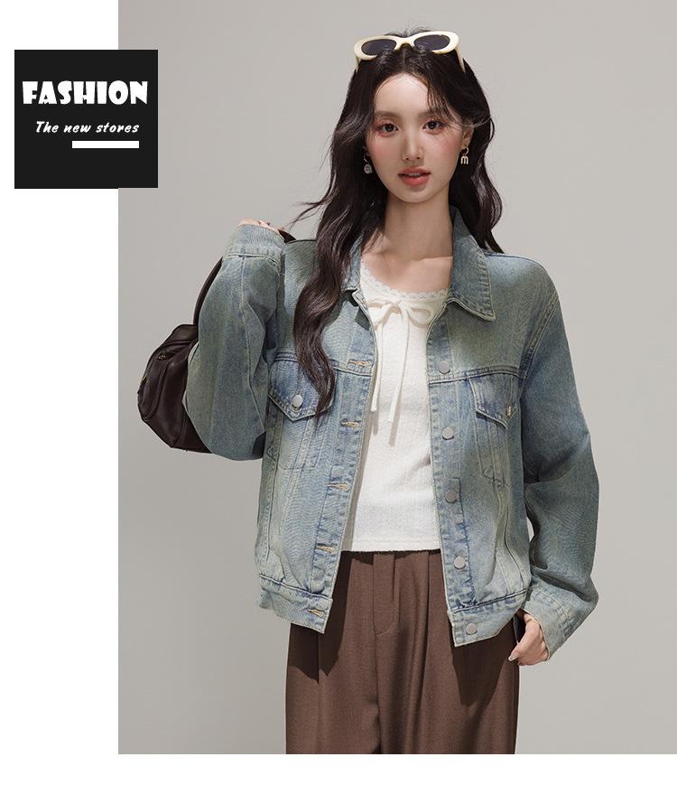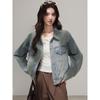 2025 Otoño Nueva Tendencia Retro Lavado Color Claro Moda Petite Chaqueta Corta de Mezclilla Mujer