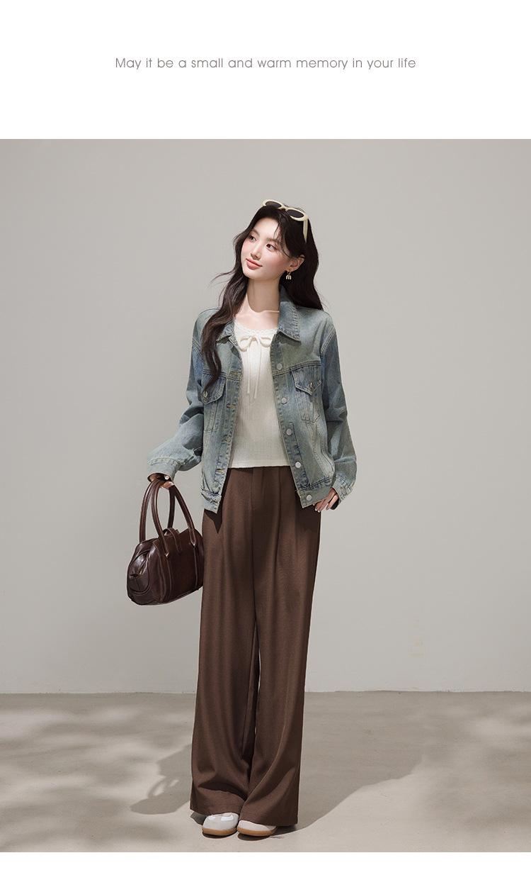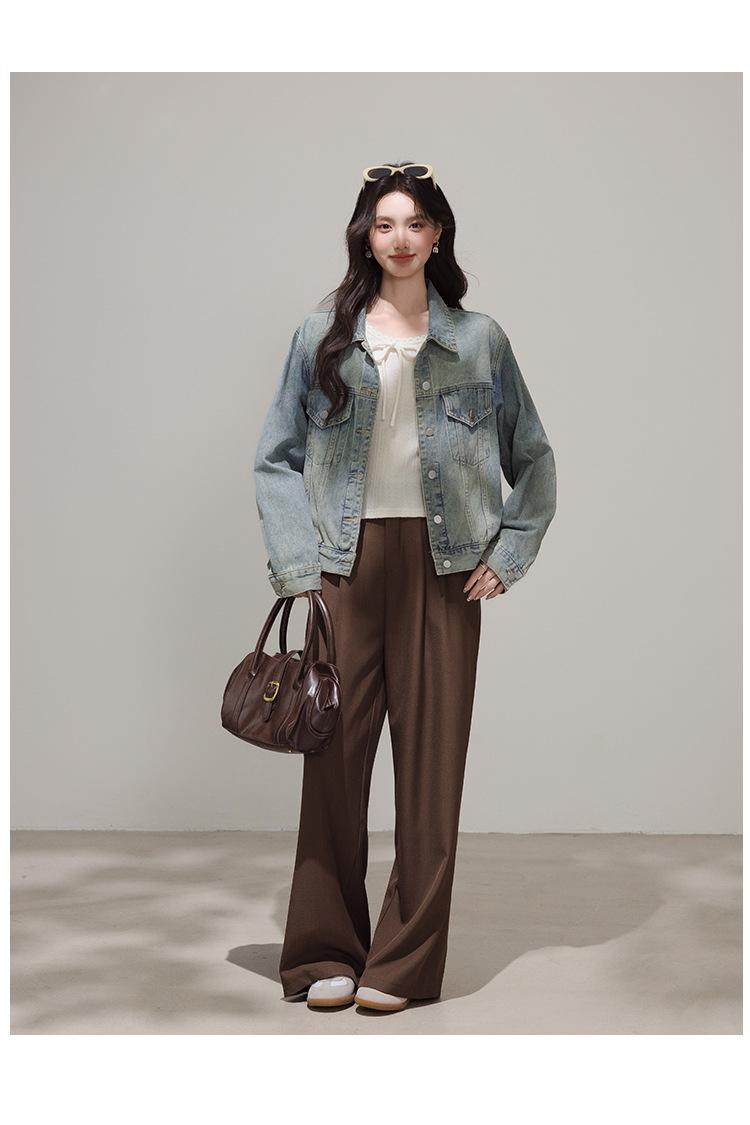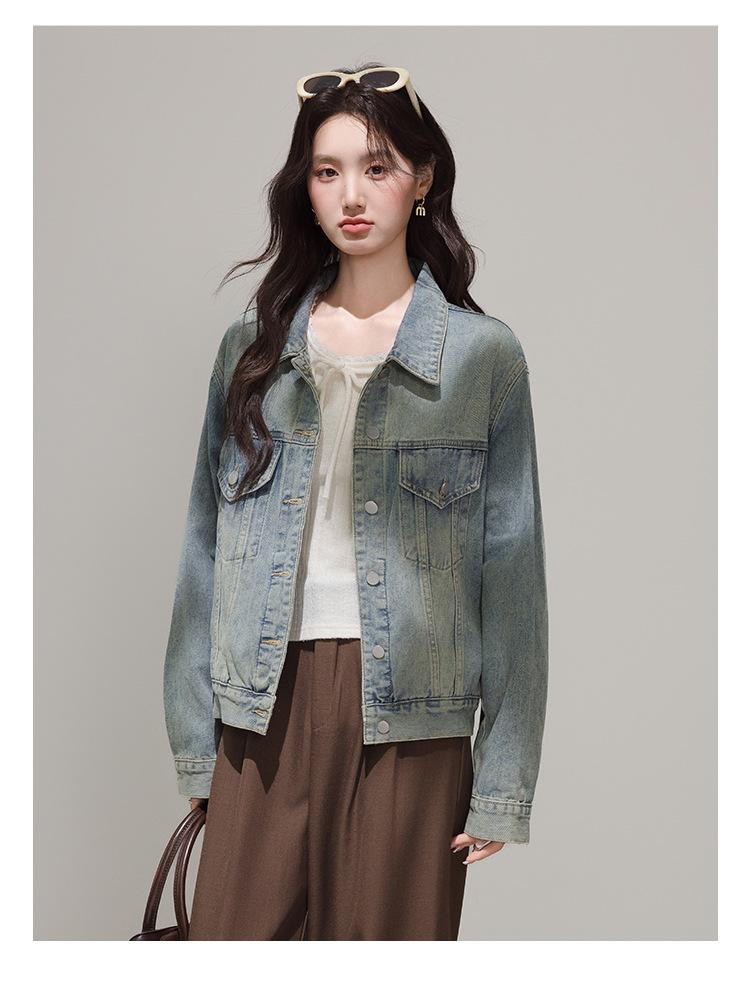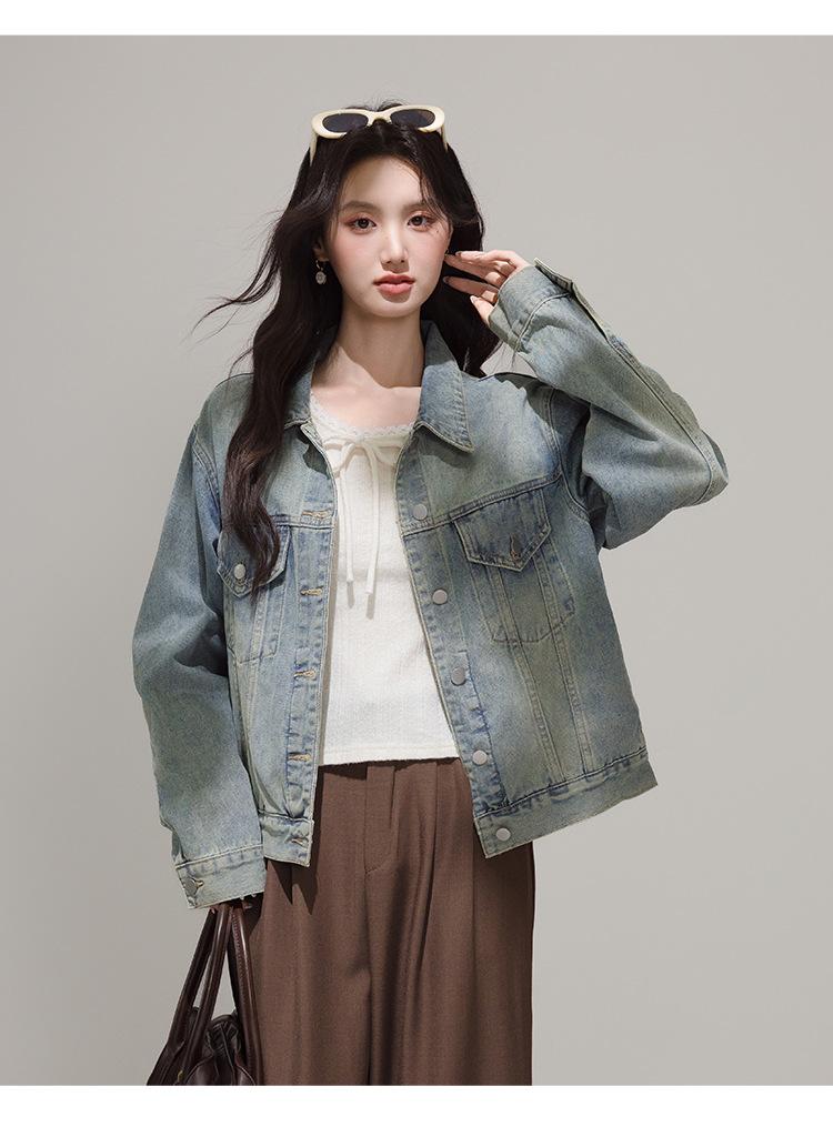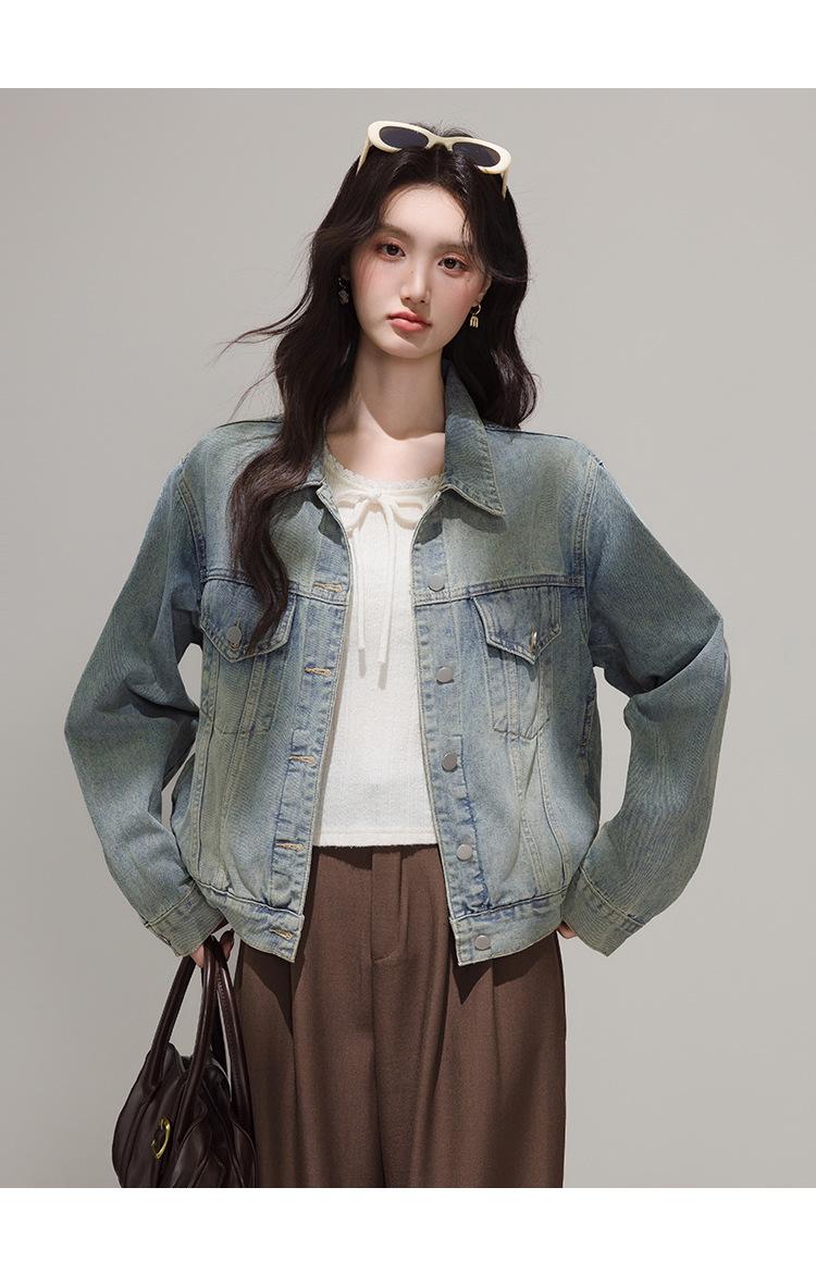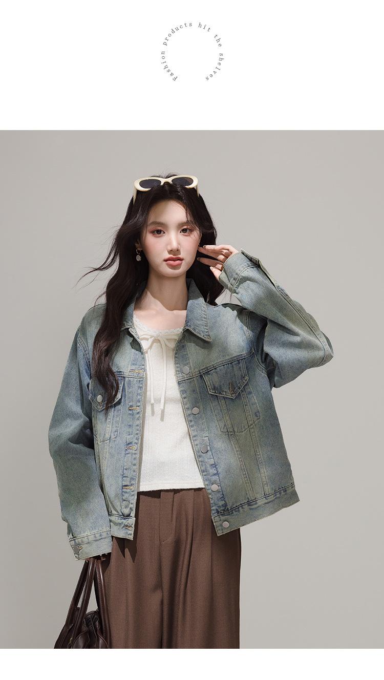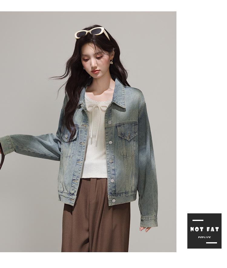 2025 Otoño Nueva Tendencia Retro Lavado Color Claro Moda Petite Chaqueta Corta de Mezclilla Mujer