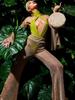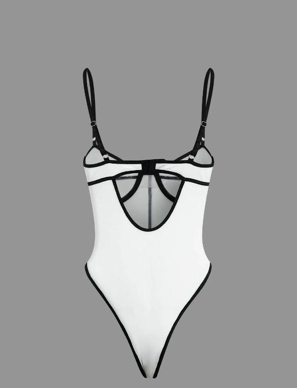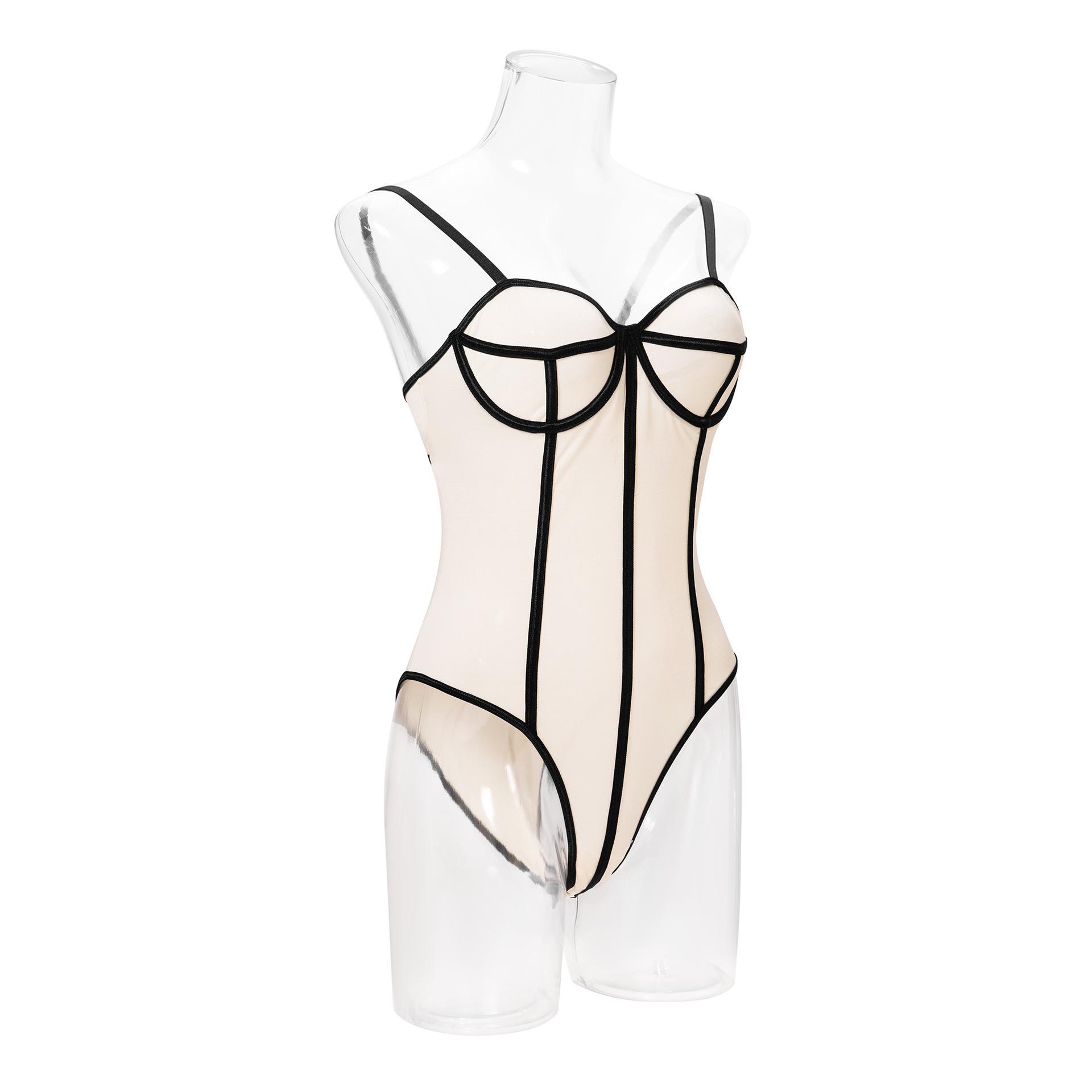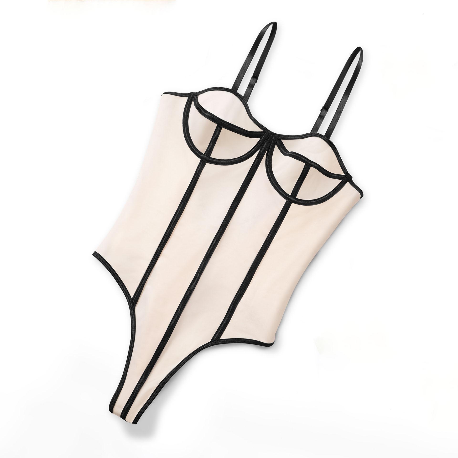 2025 Verano Nuevo Estilo Europeo y Americano Bloque de Color Bodycon Mono Chica Caliente Sexy Ajustado Calado Espalda Descubierta