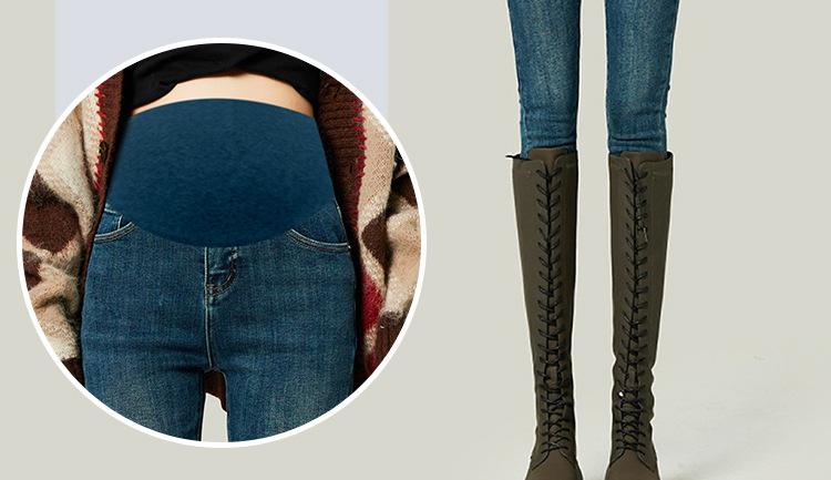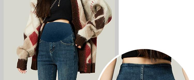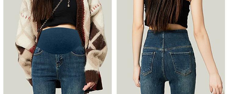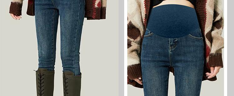 Jeans de Maternidad para Otoño e Invierno 2024 con forro polar Engrosados Moda Ropa Exterior Pantalones para el Vientre Elásticos Ajustados Combinan con todo Leggings