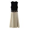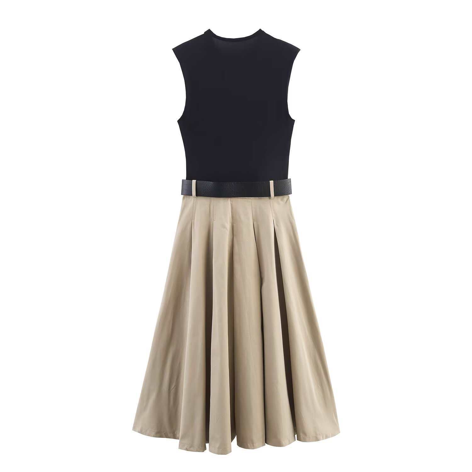 Estilo Europeo y Americano para Mujer Verano Cintura Alta Temperamento para Ir al Trabajo Nueva Falda Plisada Midi Algodón Negro