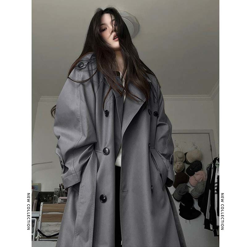 Gabardina Gris para Mujer Largo Medio 2024 Nuevo Primavera Otoño Estilo Coreano Estatura Petite Sentido de Alta Gama Abrigo Estilo Británico