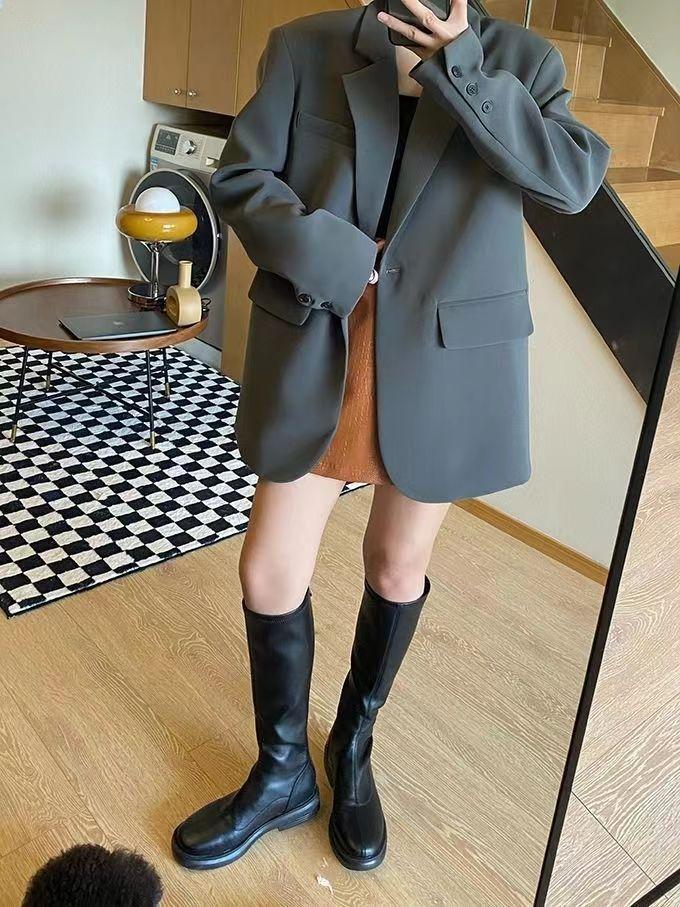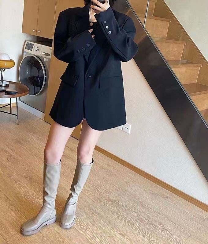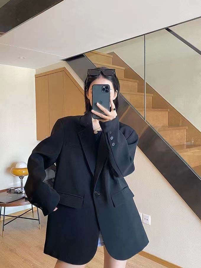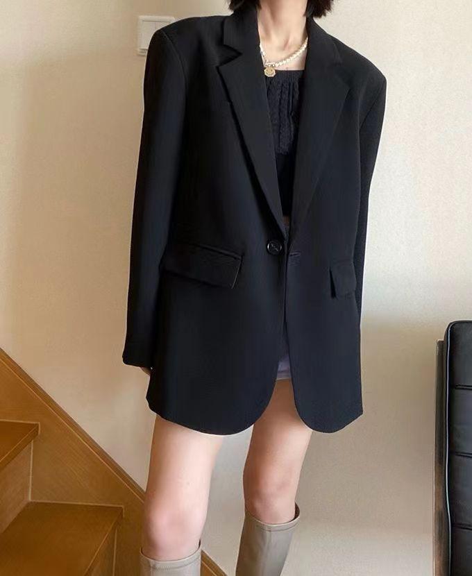 Chaqueta de Traje Negra Mujer Diseño Nicho Blazer Estilo Coreano Holgada Casual Adelgazante Top Primavera Otoño Traje Pequeño