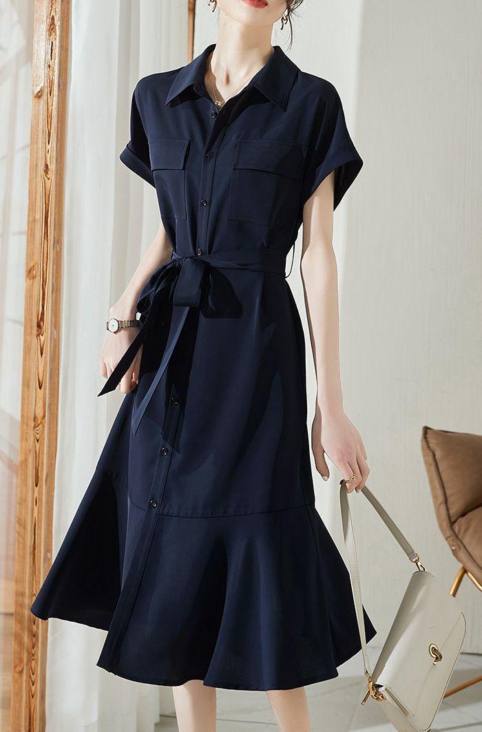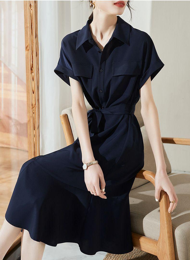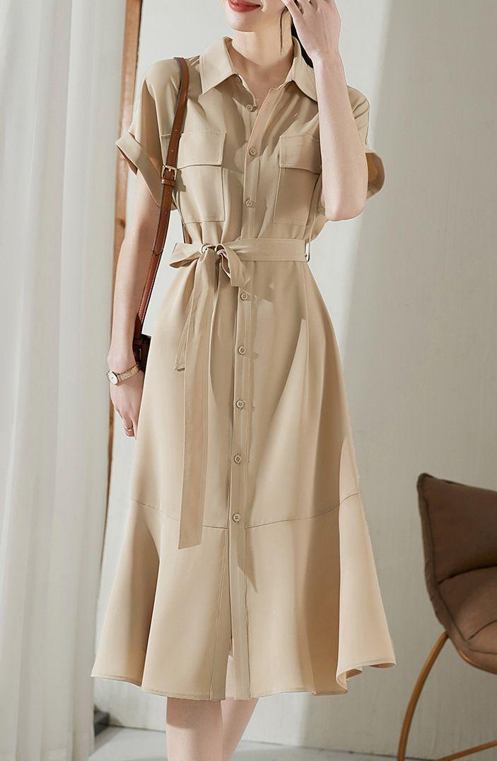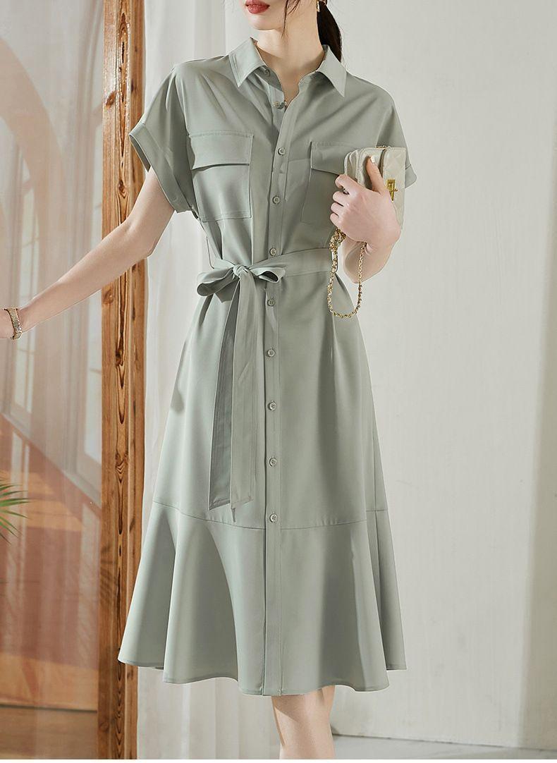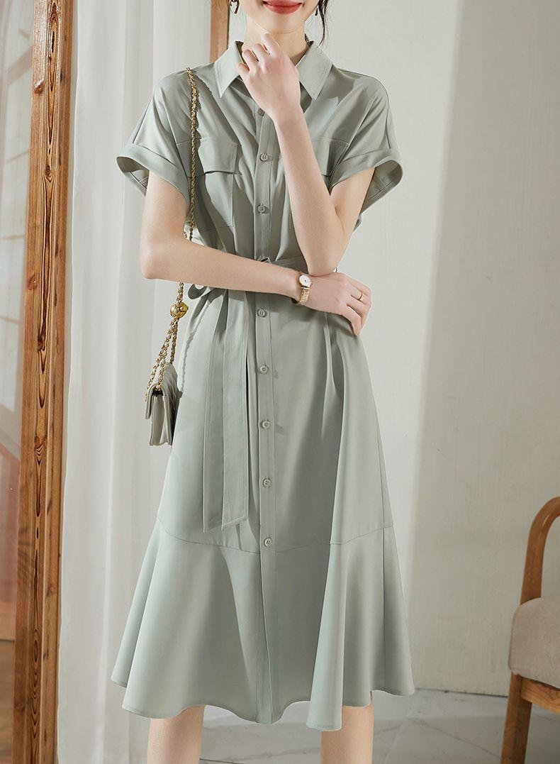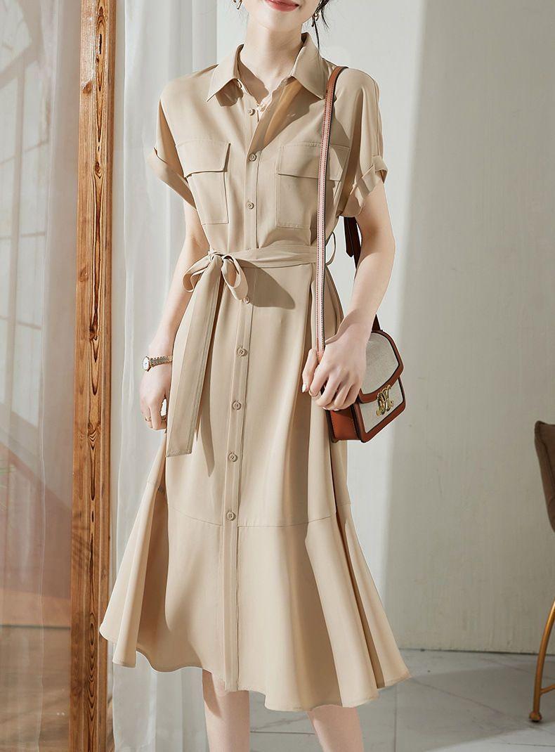 Vestido de Alta Gama para Mujer 2025 Verano Nuevo Francés de Alto Sentido Casual Vestido Camisero Temperamento Adelgazante de Cintura