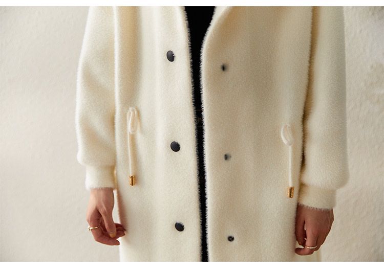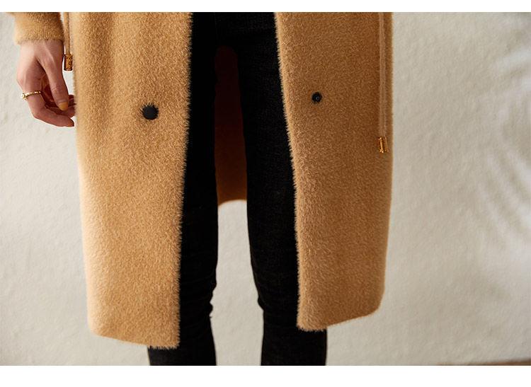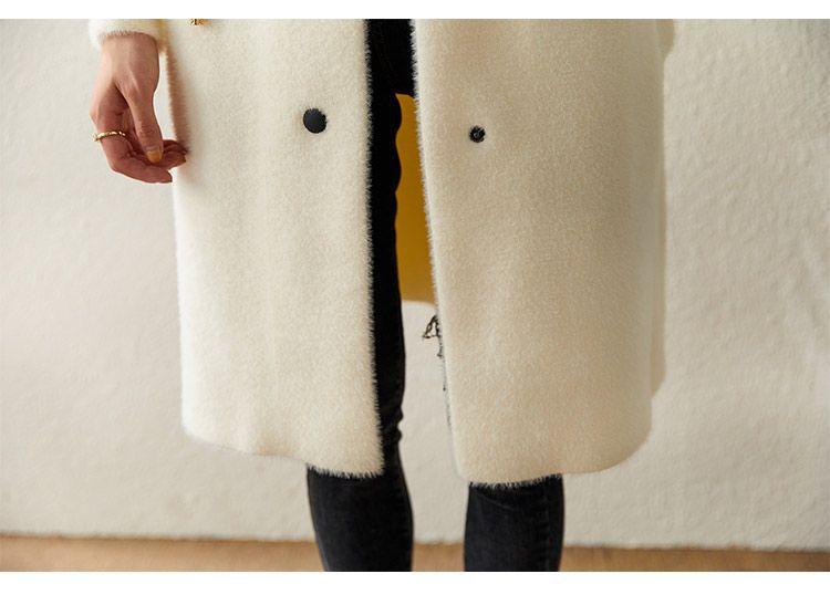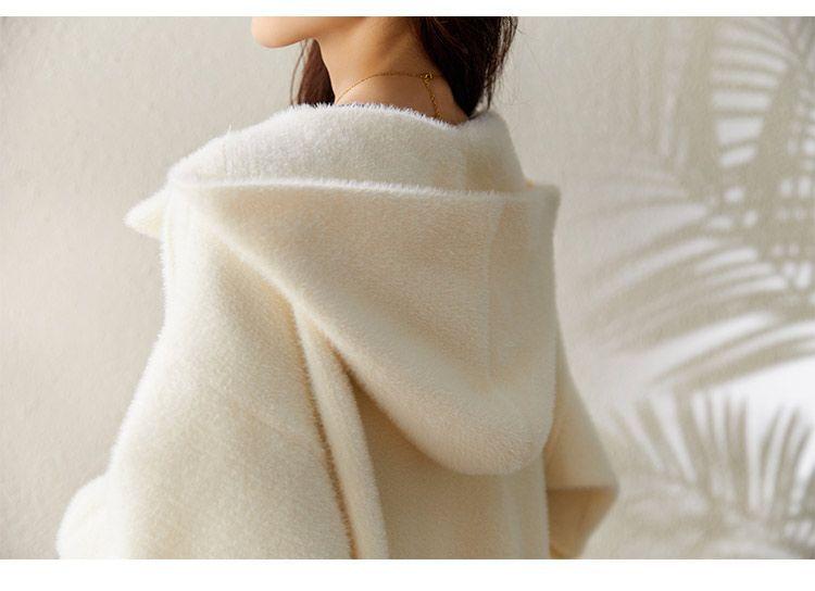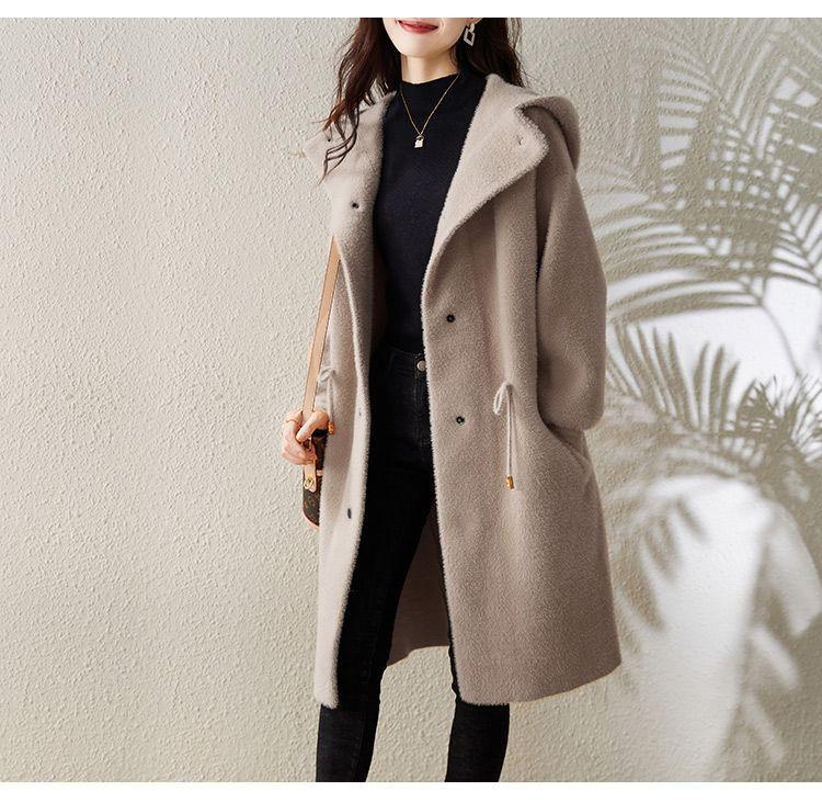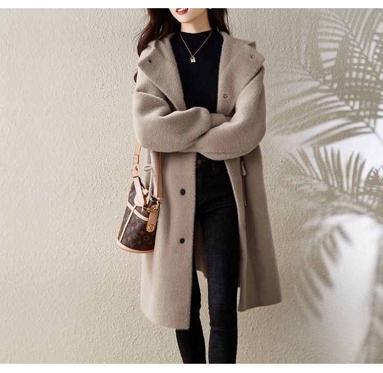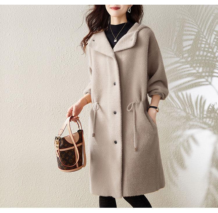 Debe comprar ropa de otoño e invierno con gorro a juego, cárdigan, abrigo de imitación de visón, suéter holgado de longitud media para mujer, abrigo cálido