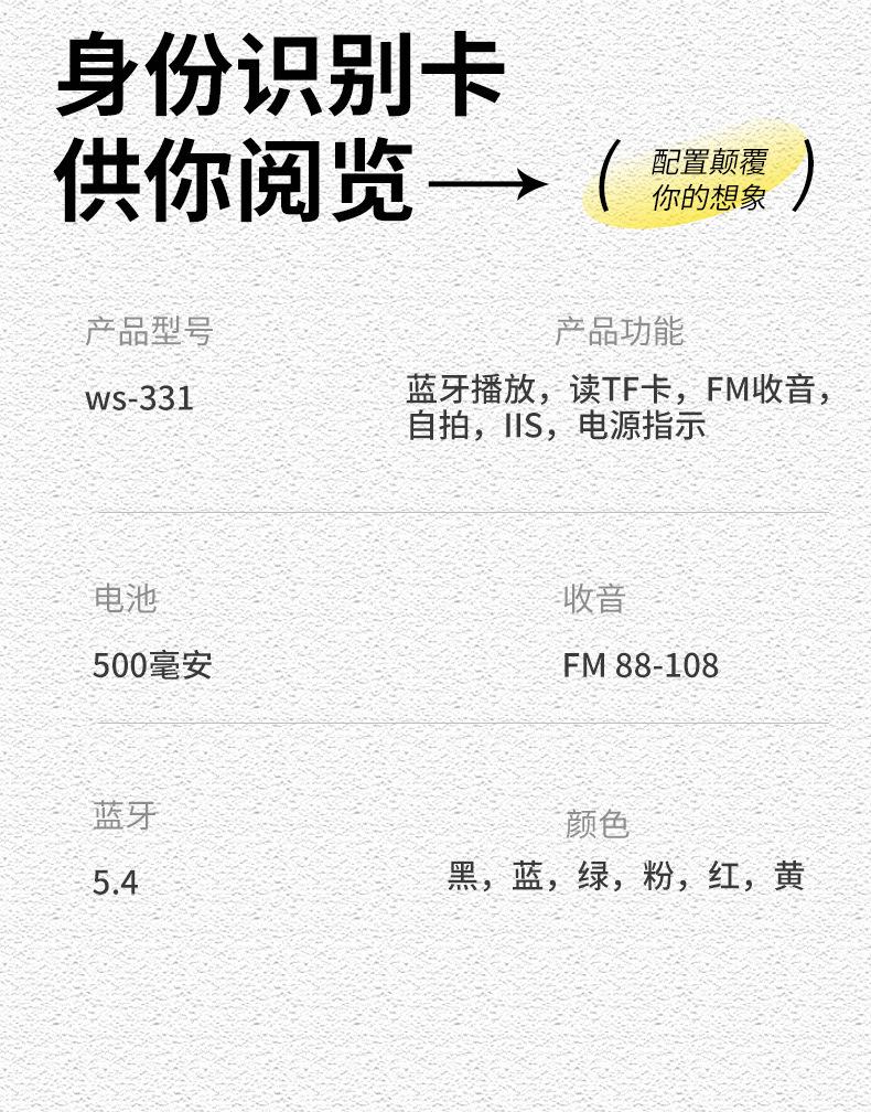 Función: Reproducción Bluetooth, tarjeta TF, radio FM, TWS