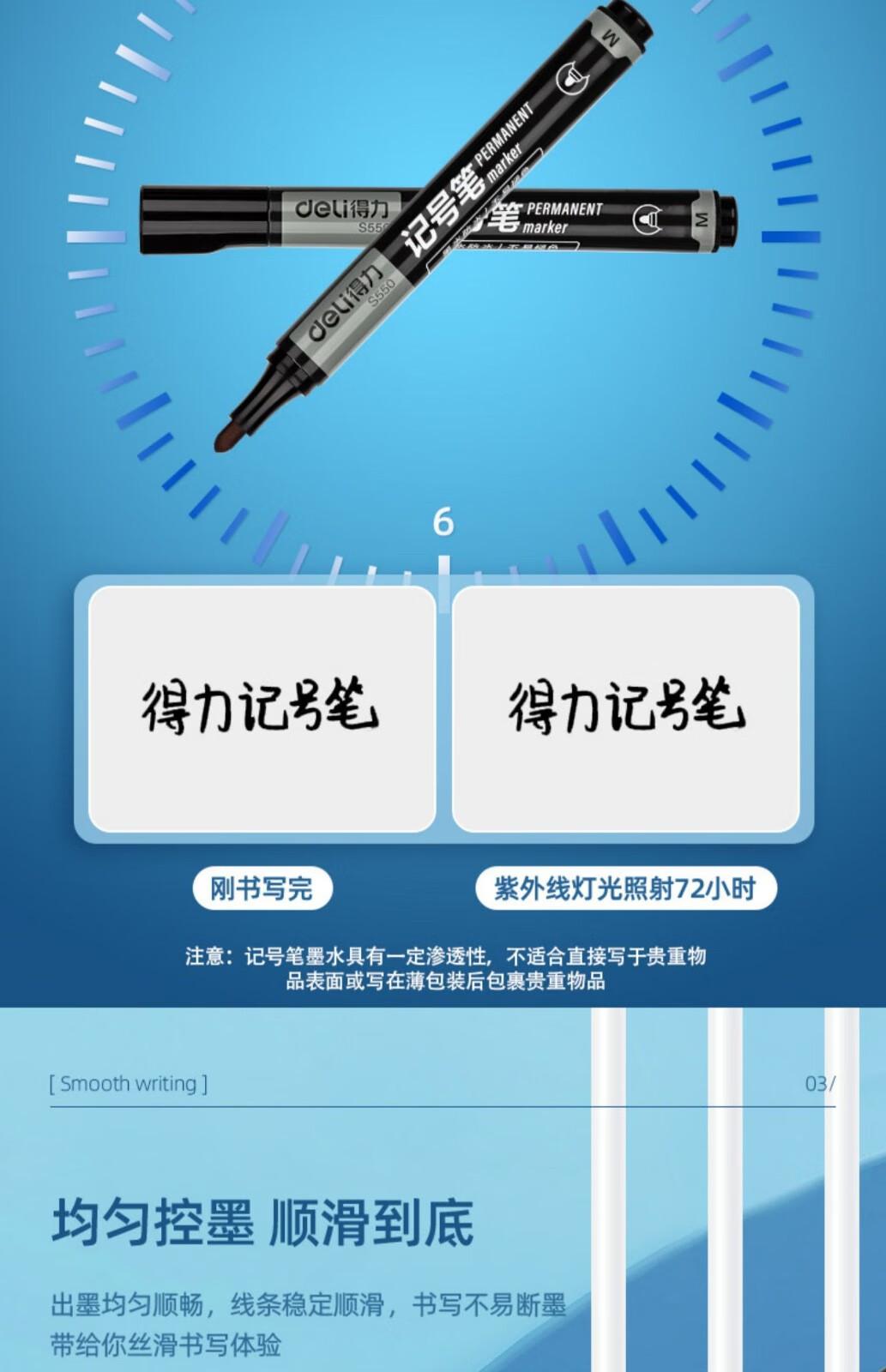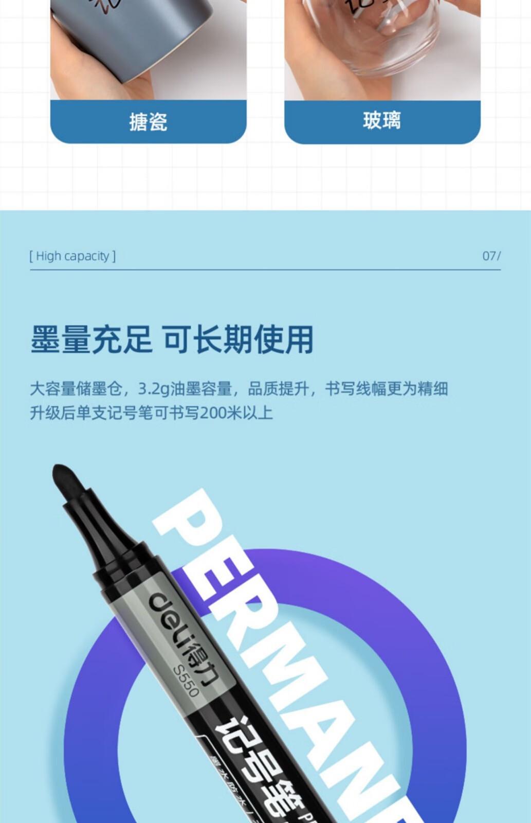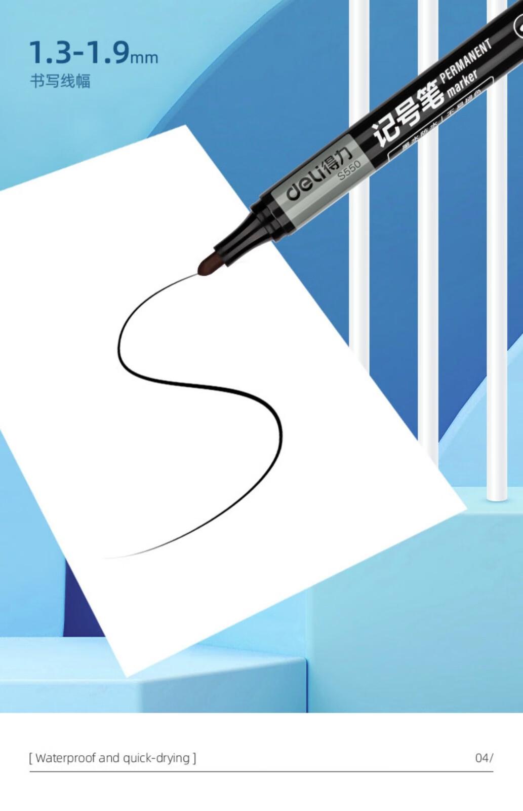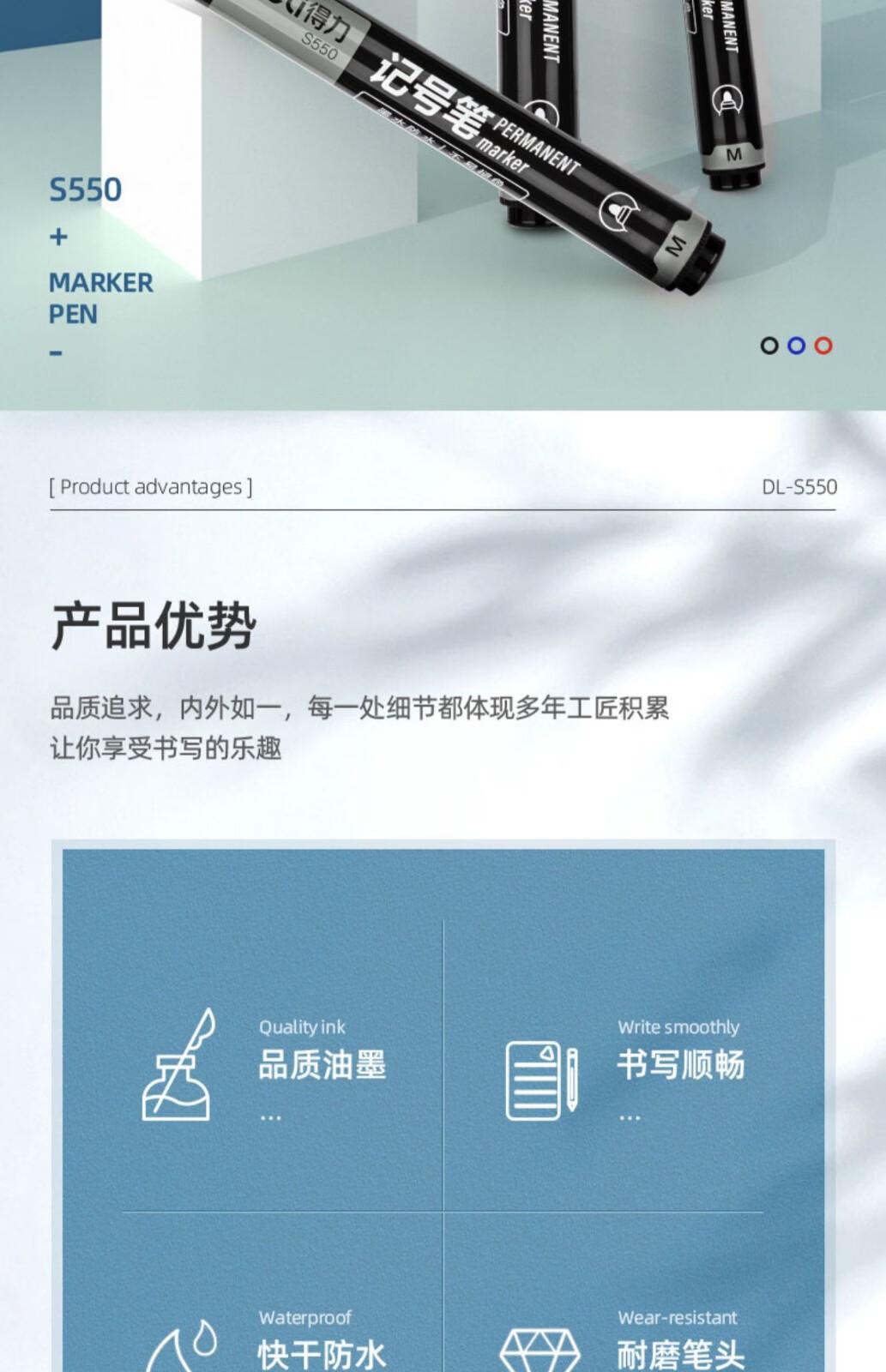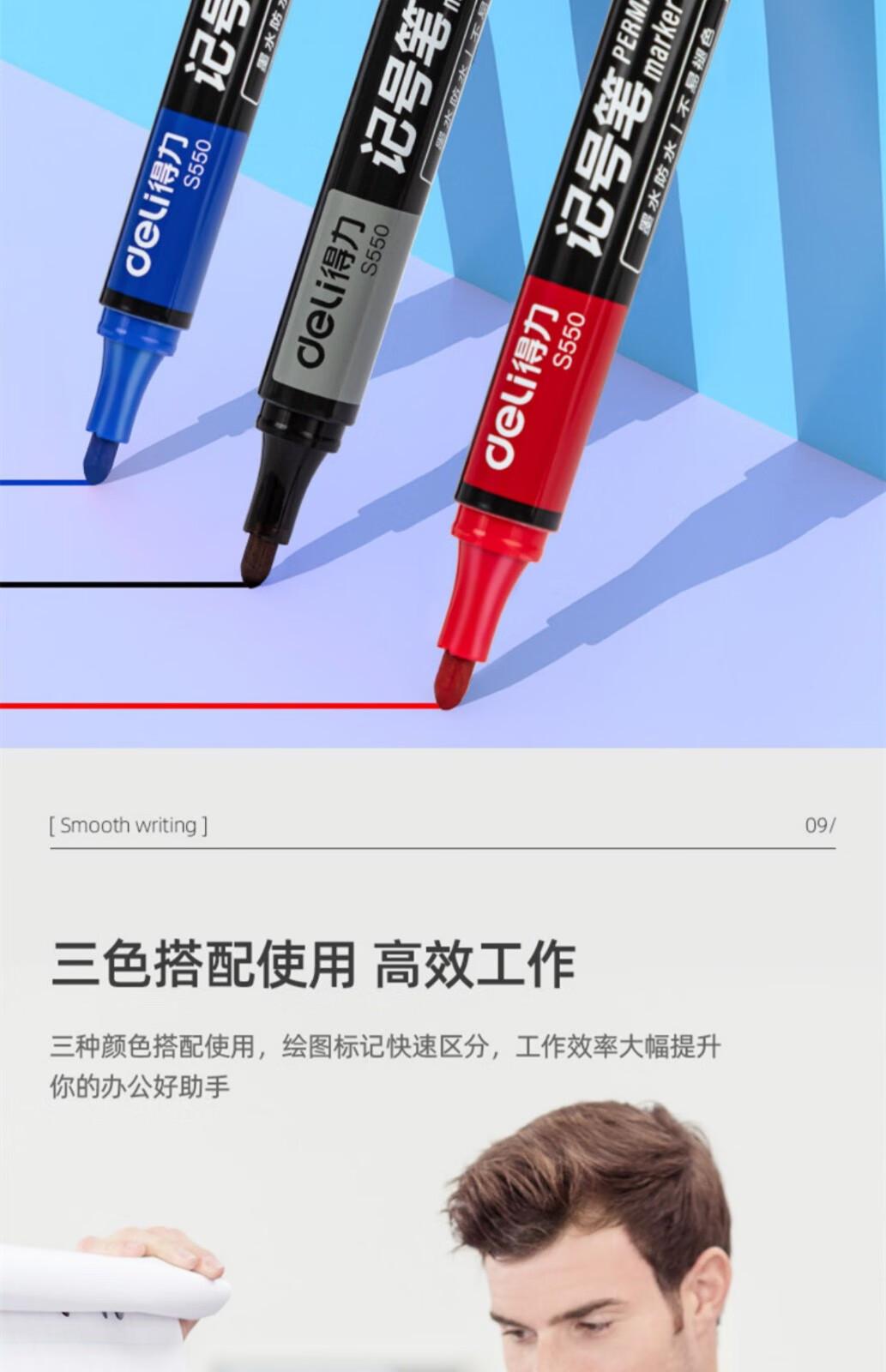 Marcador Deli S550 indeleble resistente al agua punta gruesa marcador aceitoso 10 piezas/caja marcador express de punta grande