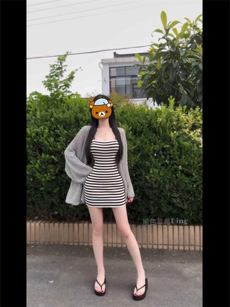 Vestido ajustado de tirantes a rayas estilo chica caliente puro y sexy, en capas con cárdigan de punto de manga larga calado, conjunto de dos piezas para mujer