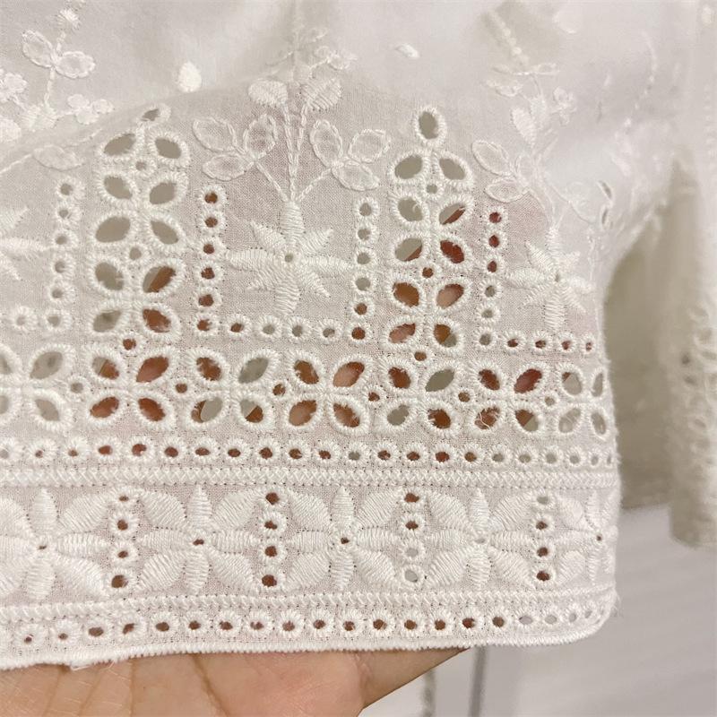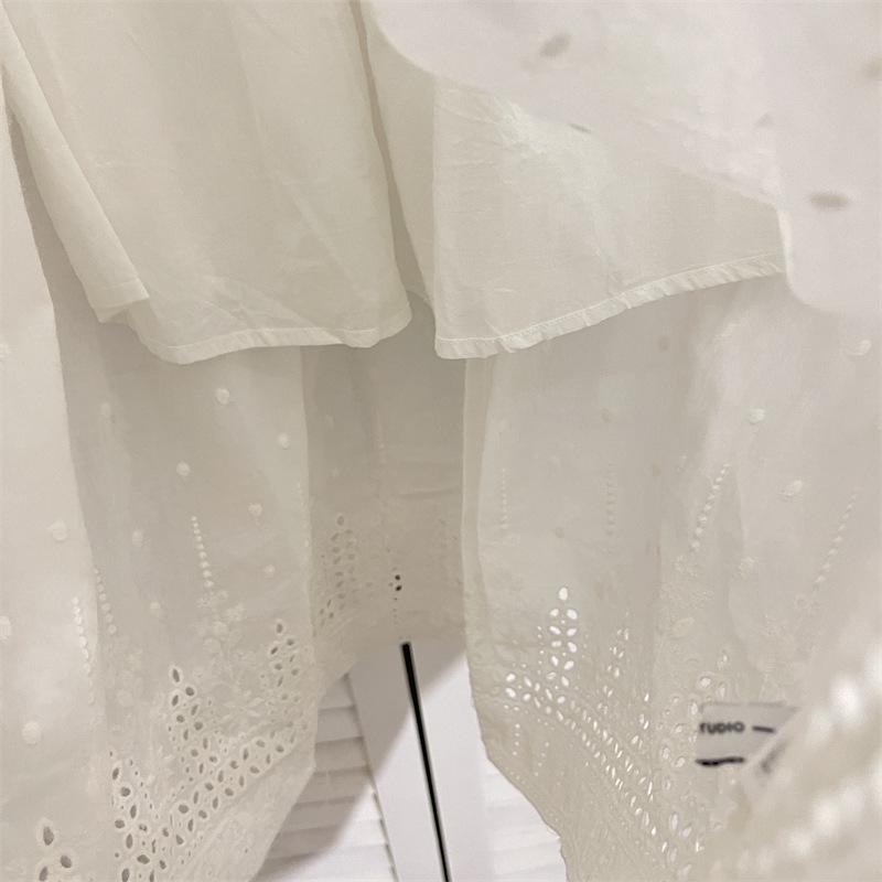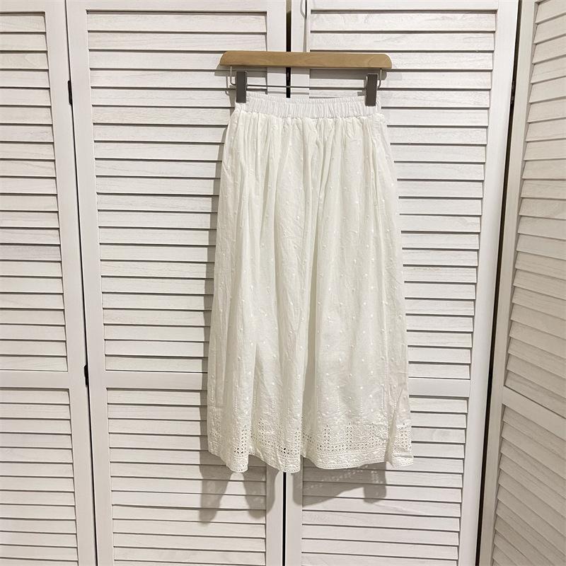 Falda Francesa Vintage Hueca Bordada de Lunares Ondulados 2024 Nueva Cintura Alta Adelgazante Línea A Falda Larga Combinable Amplio Vuelo Paraguas