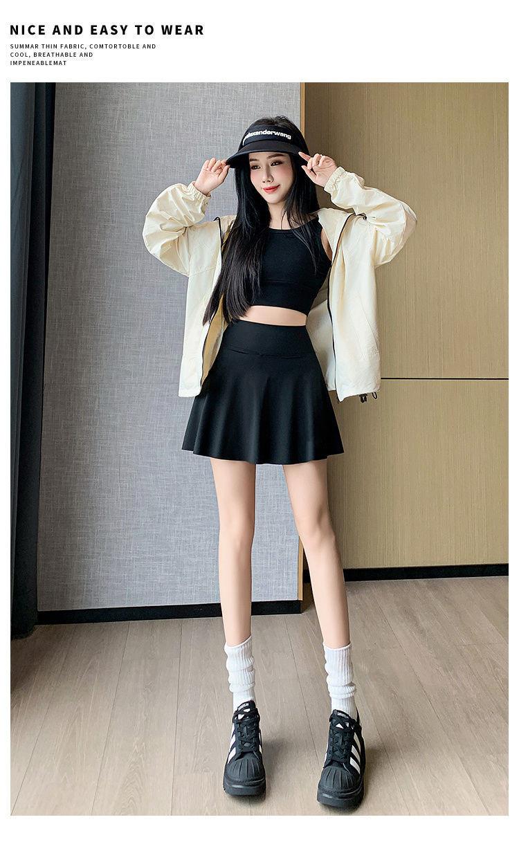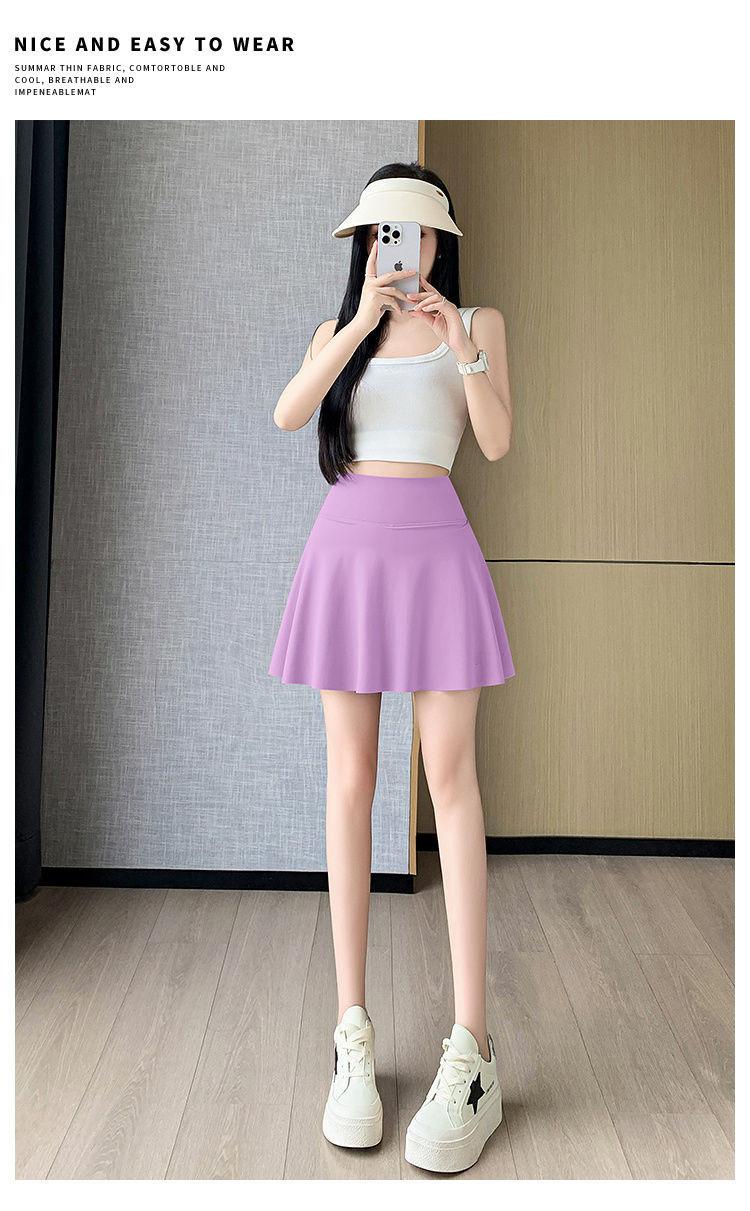 Falda Plisada Gris para Mujer Verano 2025 Nuevo Estilo Falda Deportiva Pequeña Yoga Tenis Antiluz Falda Línea A