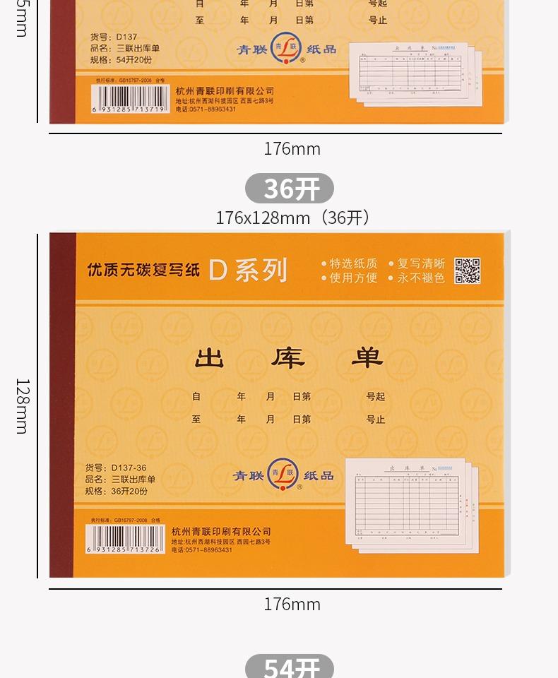 Two-part delivery note/54k/50 copies, Sanlian delivery note/54k/50 original package, Two-part receiving note/5...