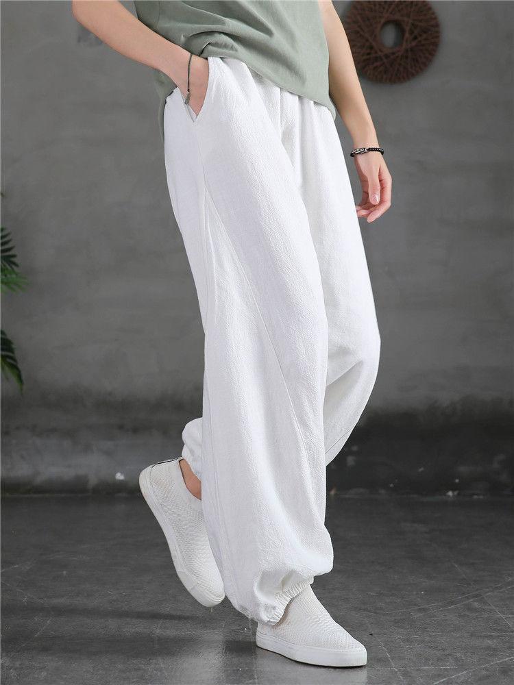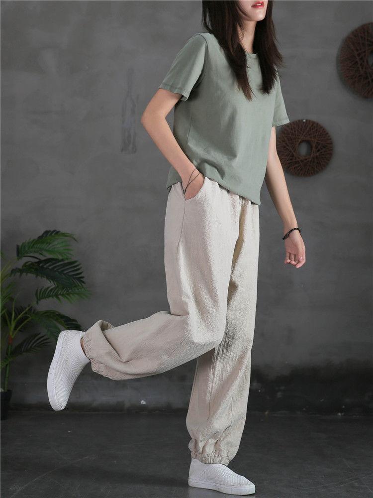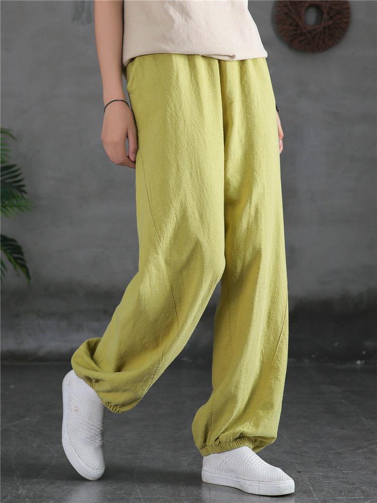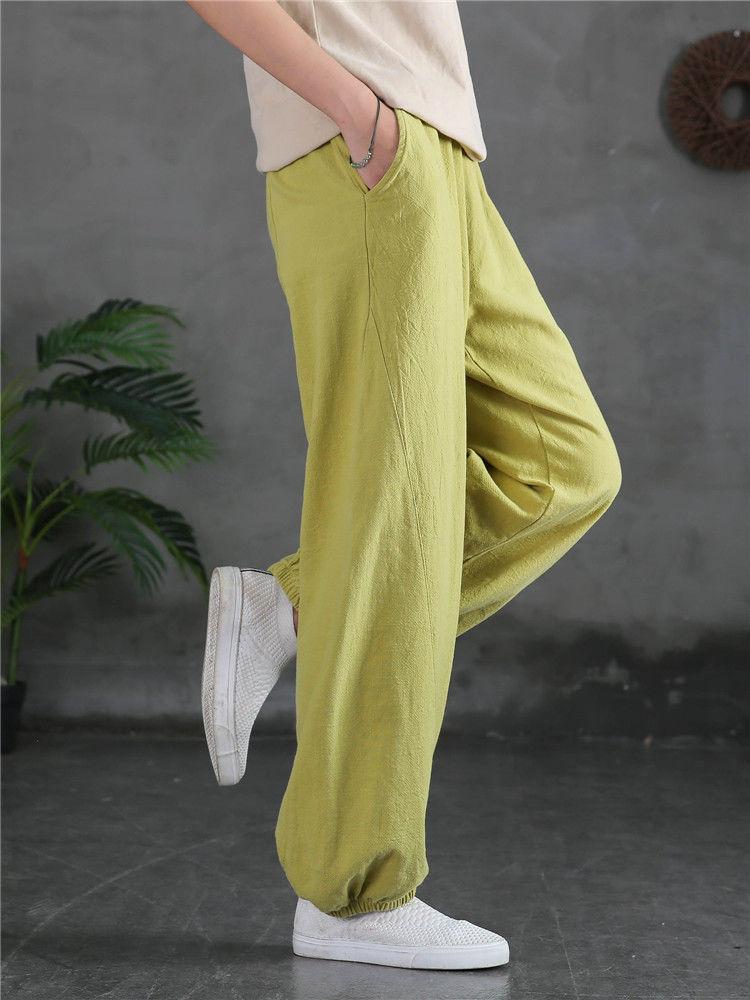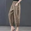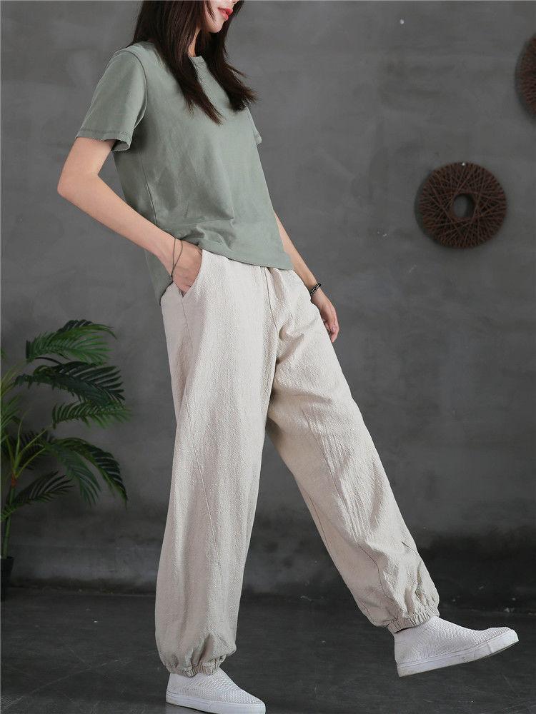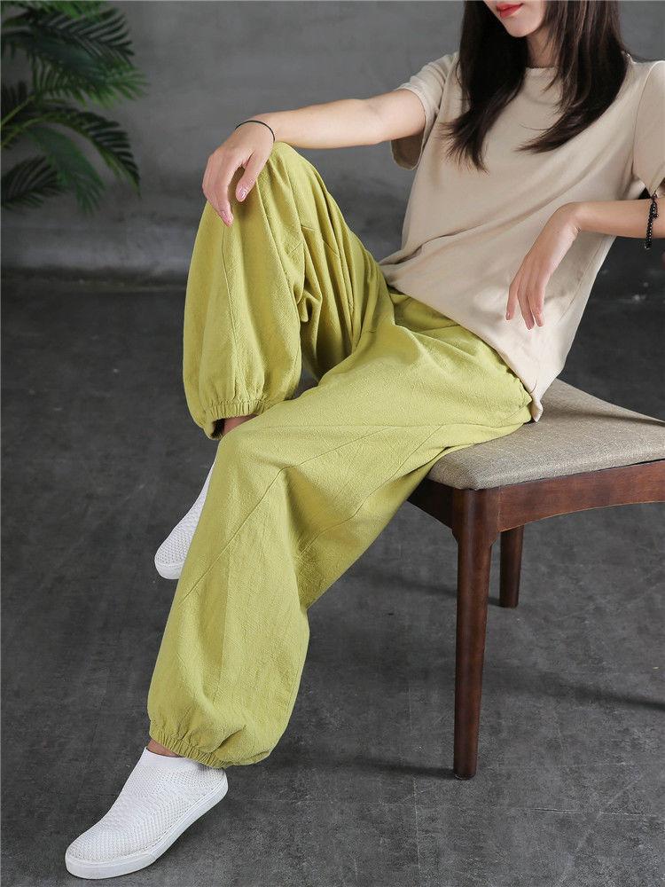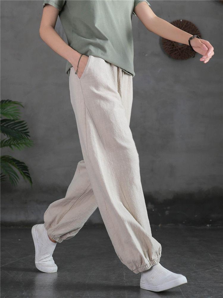 Pantalones Bombachos Vintage de Algodón y Lino para Mujer 2024 Primavera y Verano Nueva Llegada Pantalones de Pierna Sueltos Color Sólido Combinables Pantalones Casuales