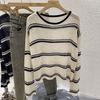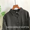 Han Fan Casual Combinable Top Suelto Cárdigan Solapa Botonadura Sencilla Primavera Slim Rayas Camisa de Manga Larga para Mujer
