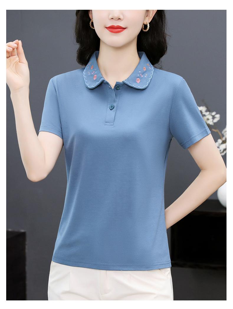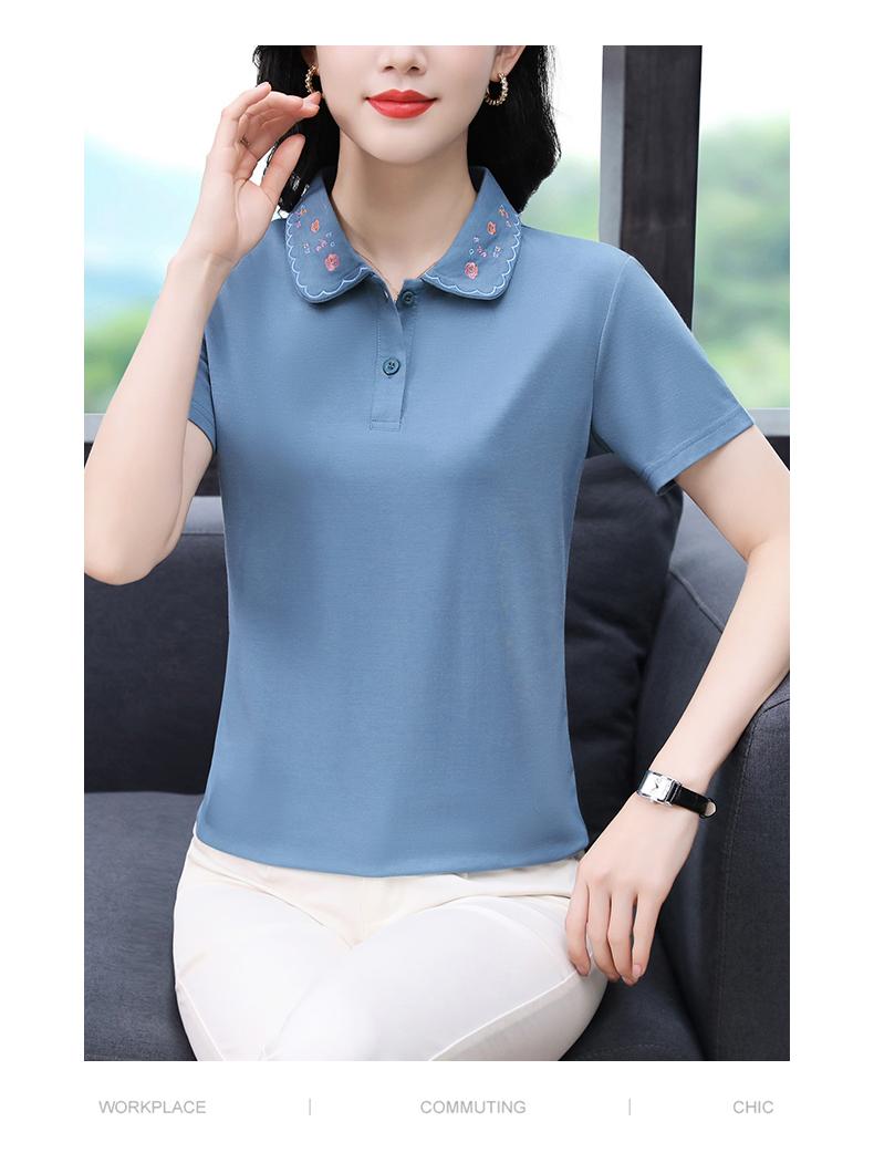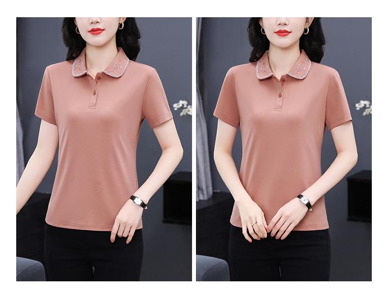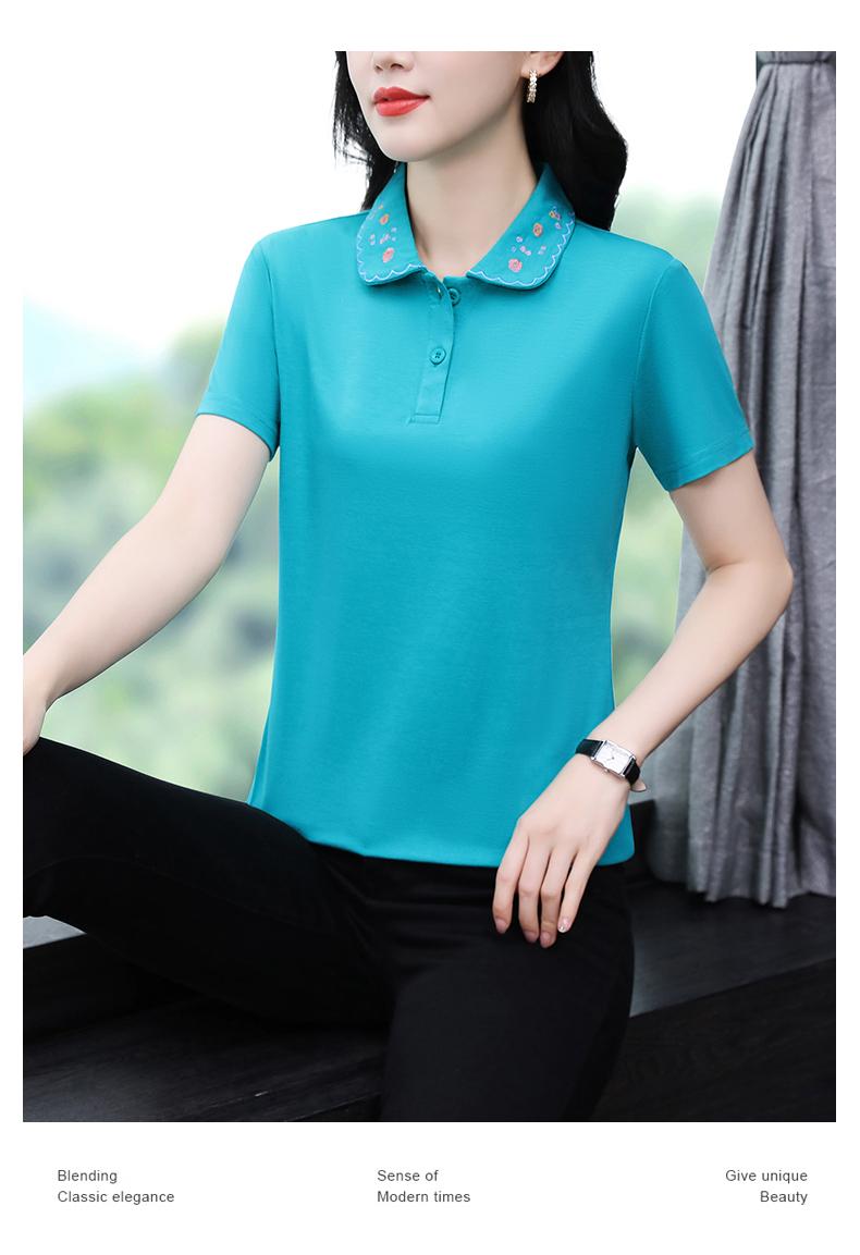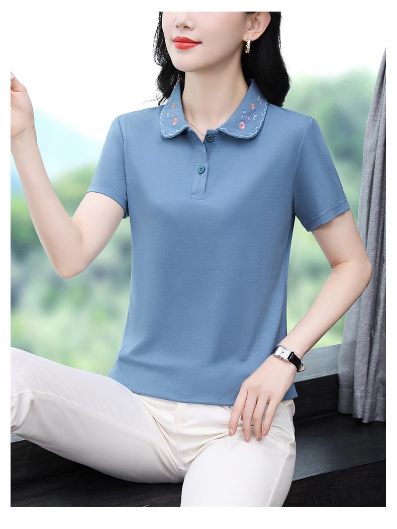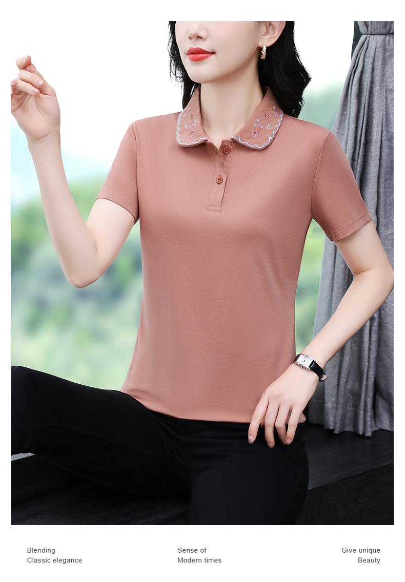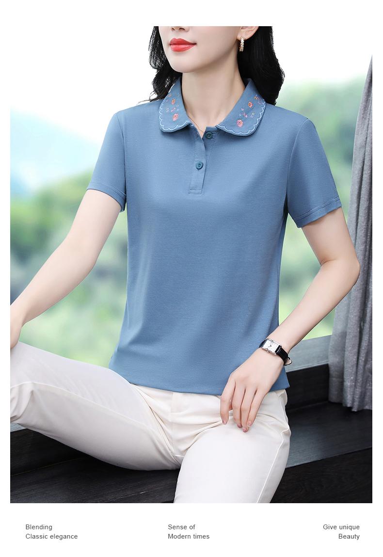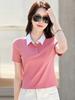 Polo de Algodón Puro Camiseta de Manga Corta Ropa de Verano para Mujer 2025 Nueva Moda Slim Solapa en V Top Polo de Moda