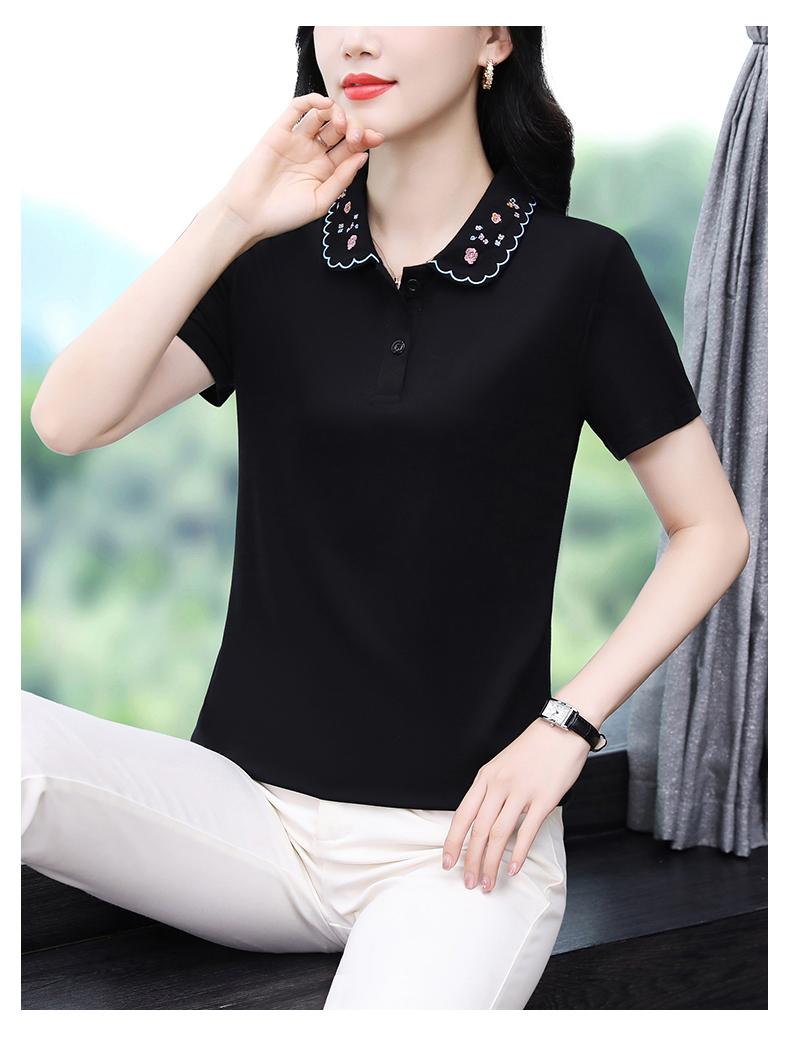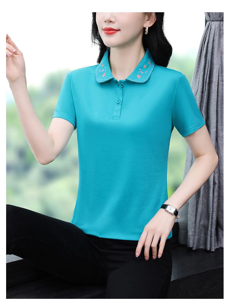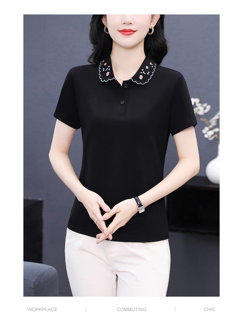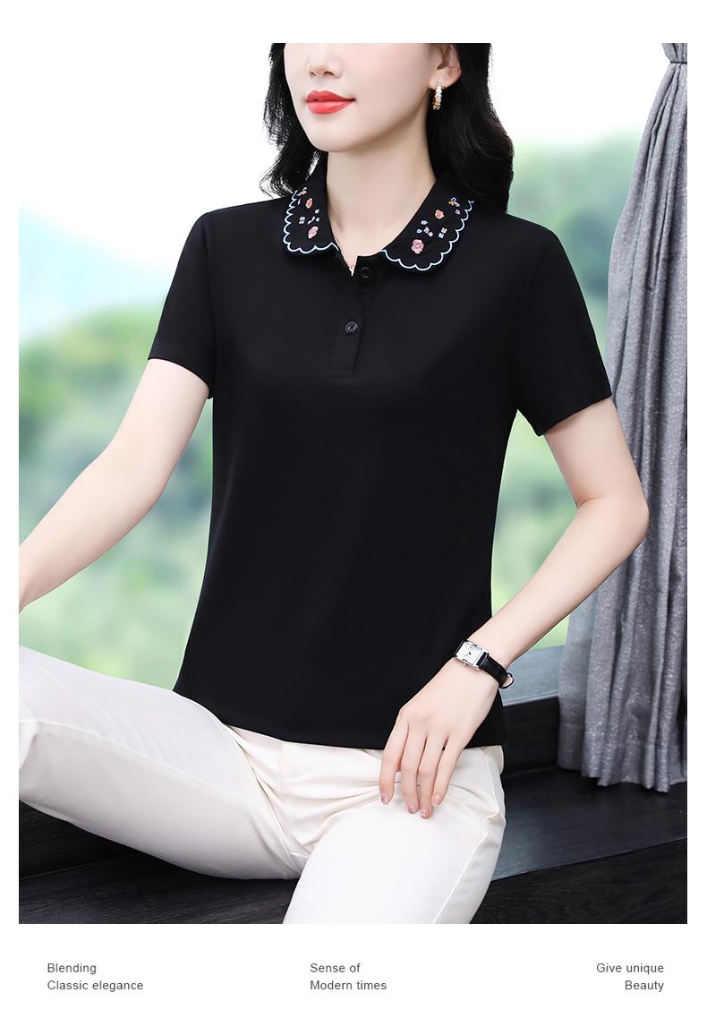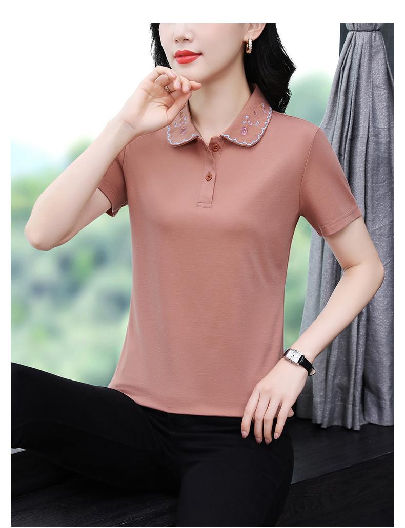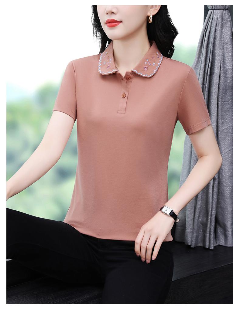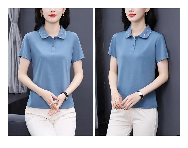 Polo de Algodón Puro Camiseta de Manga Corta Ropa de Verano para Mujer 2025 Nueva Moda Slim Solapa en V Top Polo de Moda