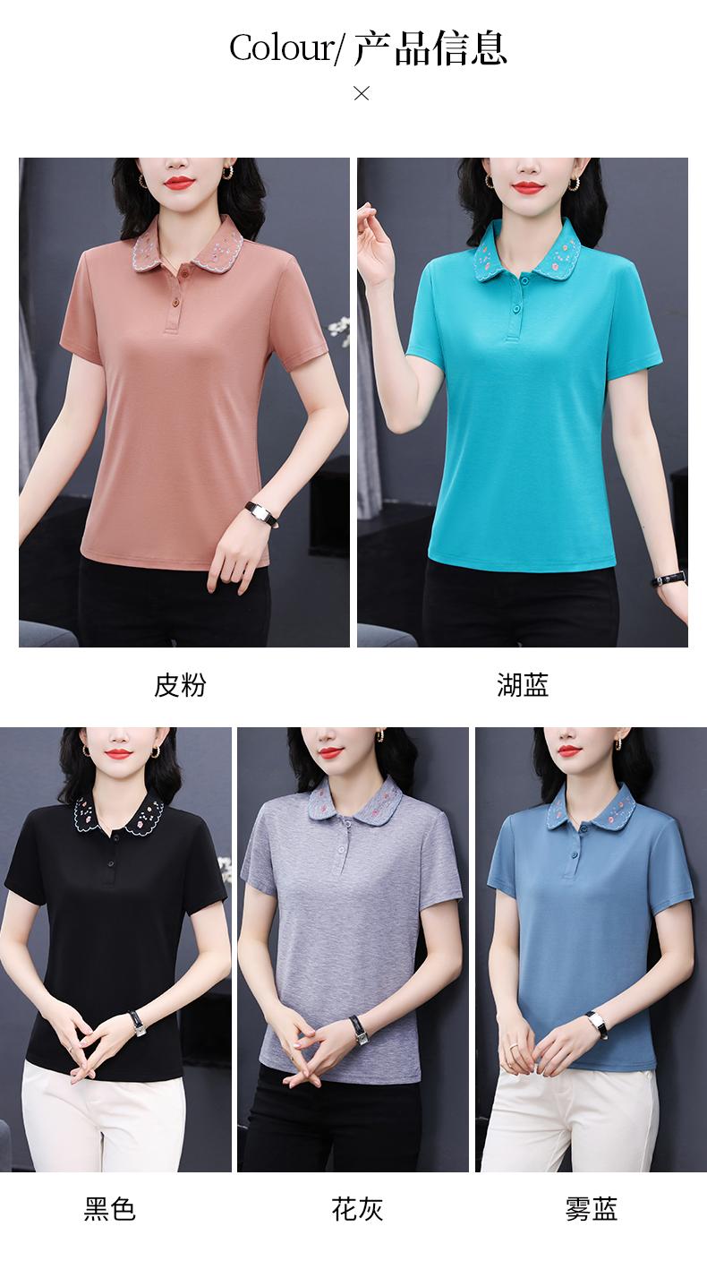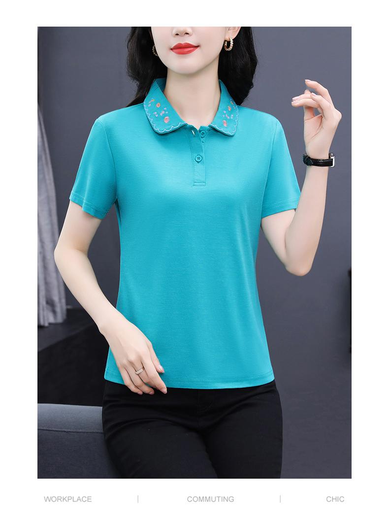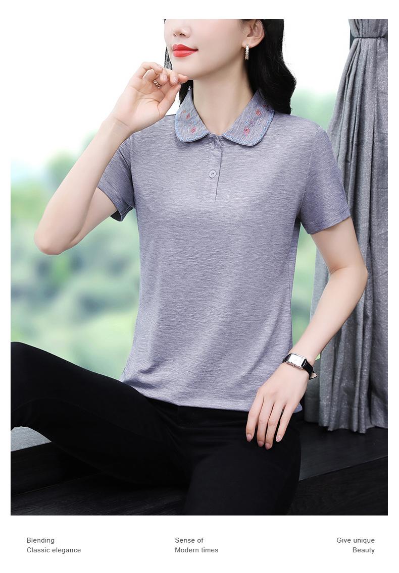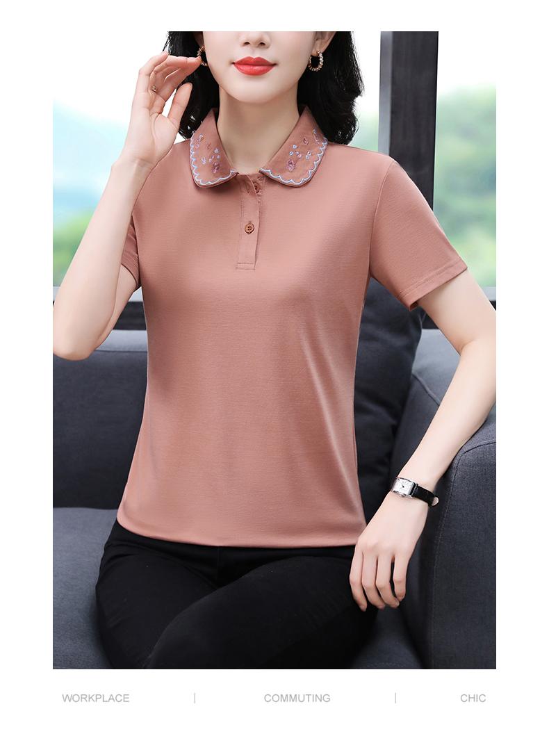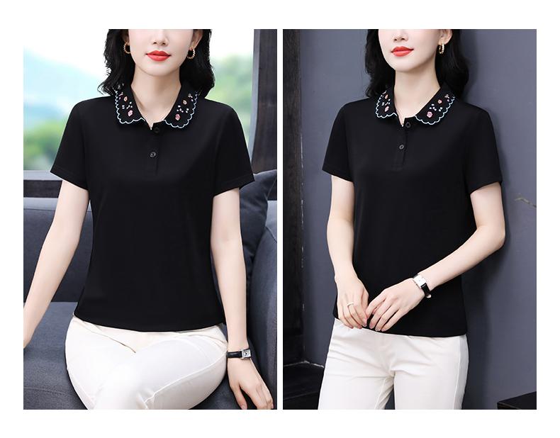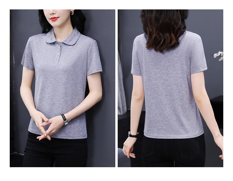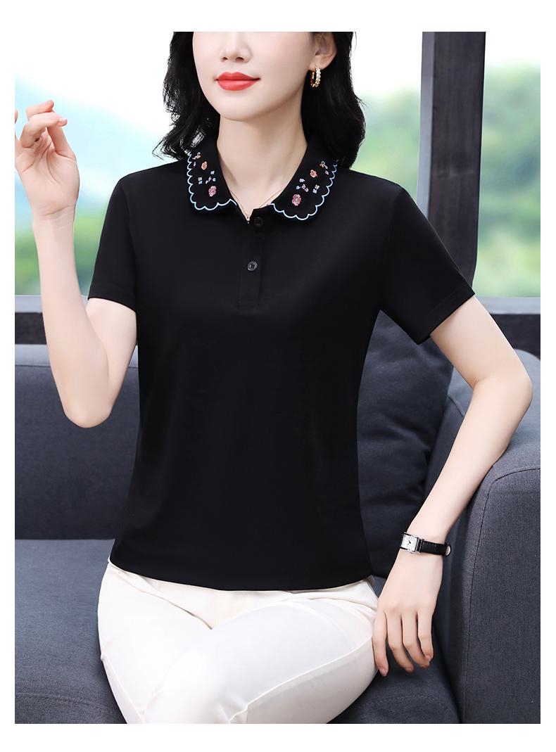 Polo de Algodón Puro Camiseta de Manga Corta Ropa de Verano para Mujer 2025 Nueva Moda Slim Solapa en V Top Polo de Moda