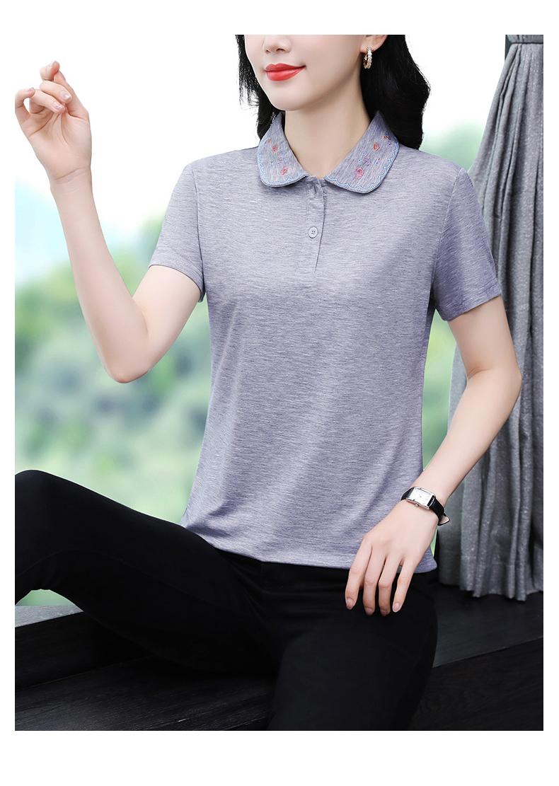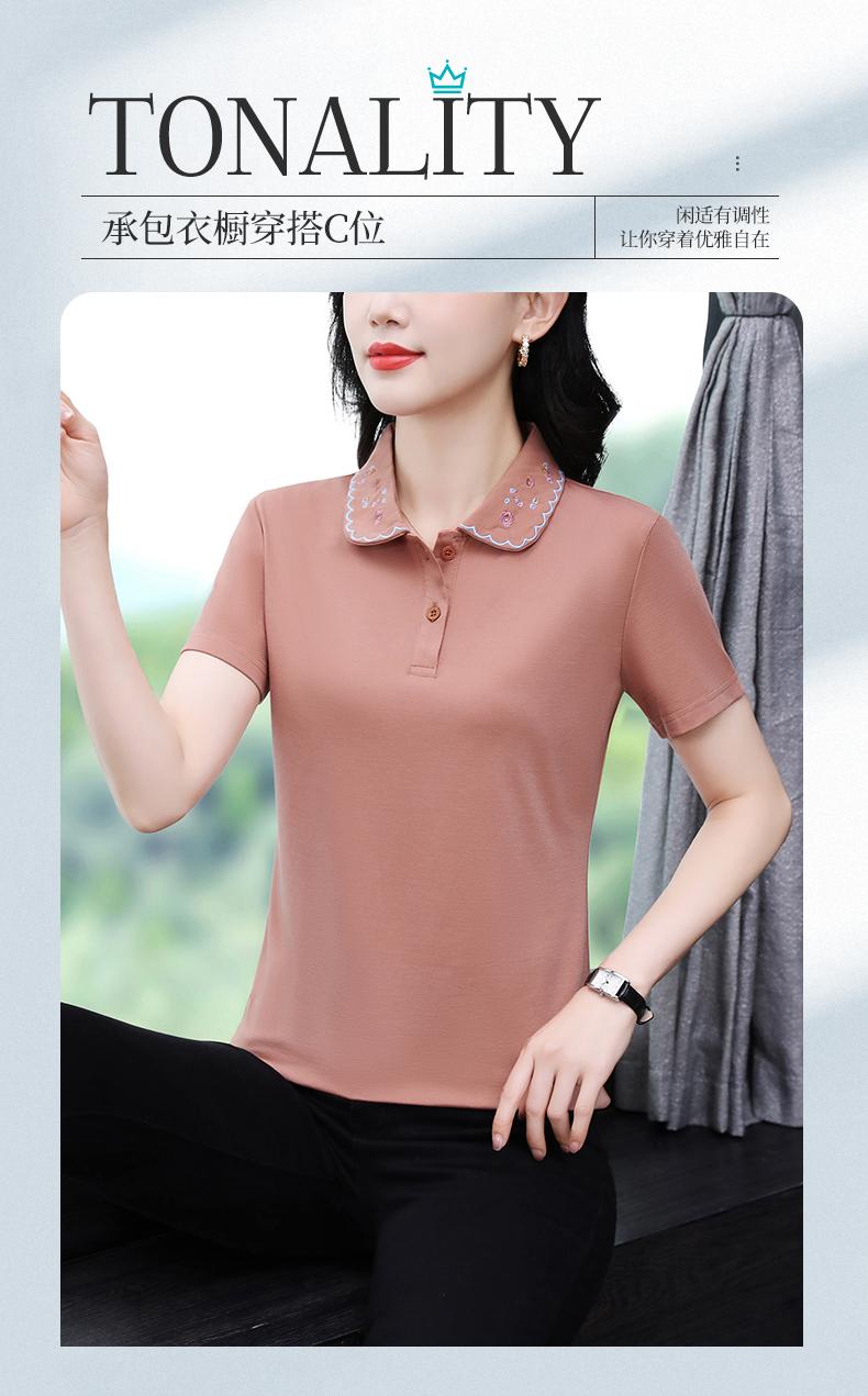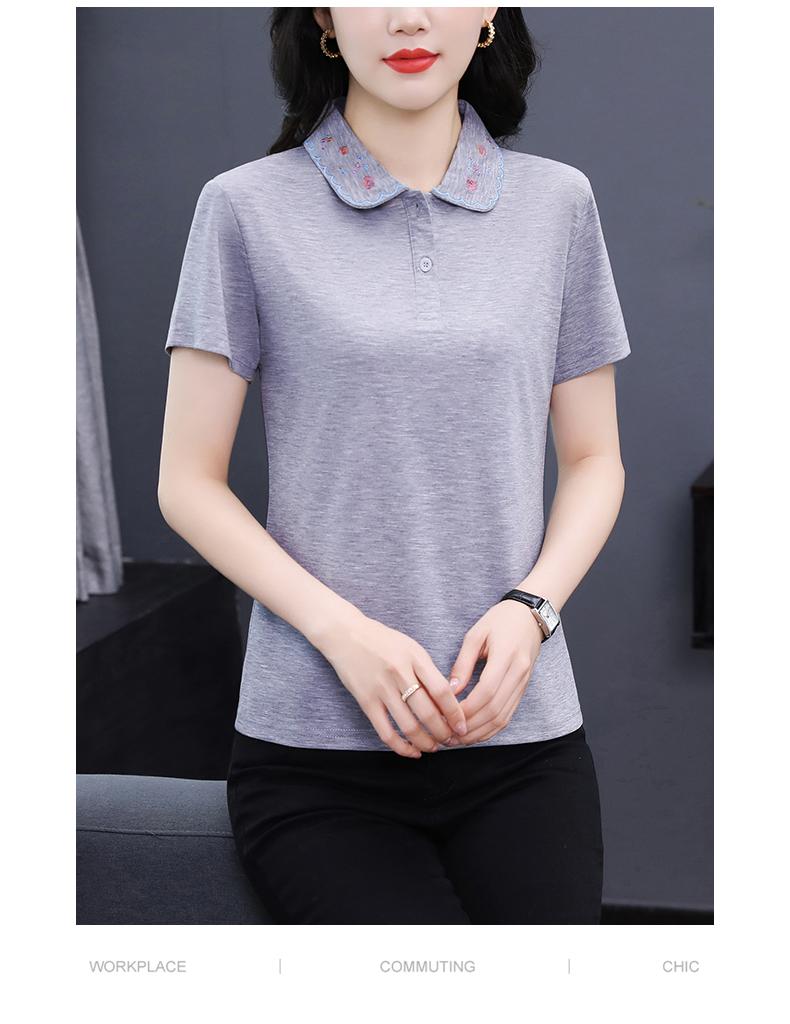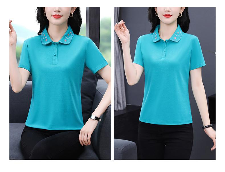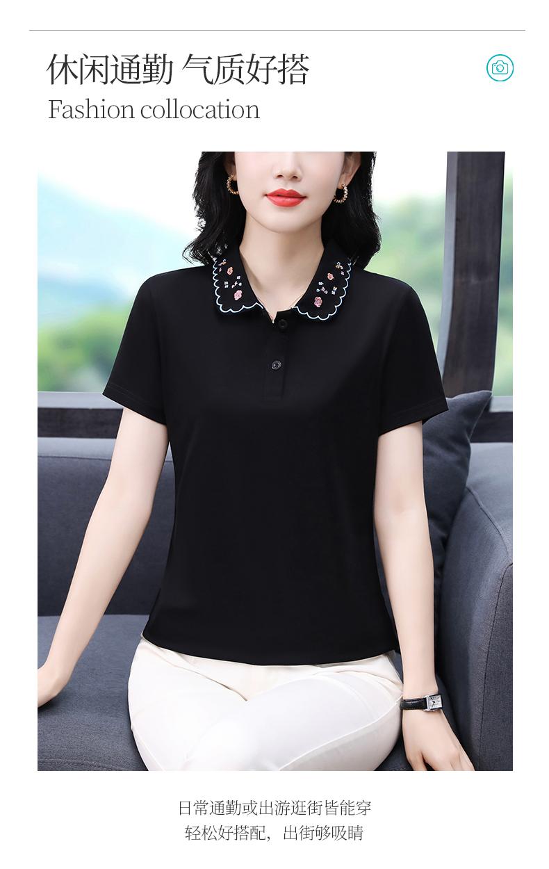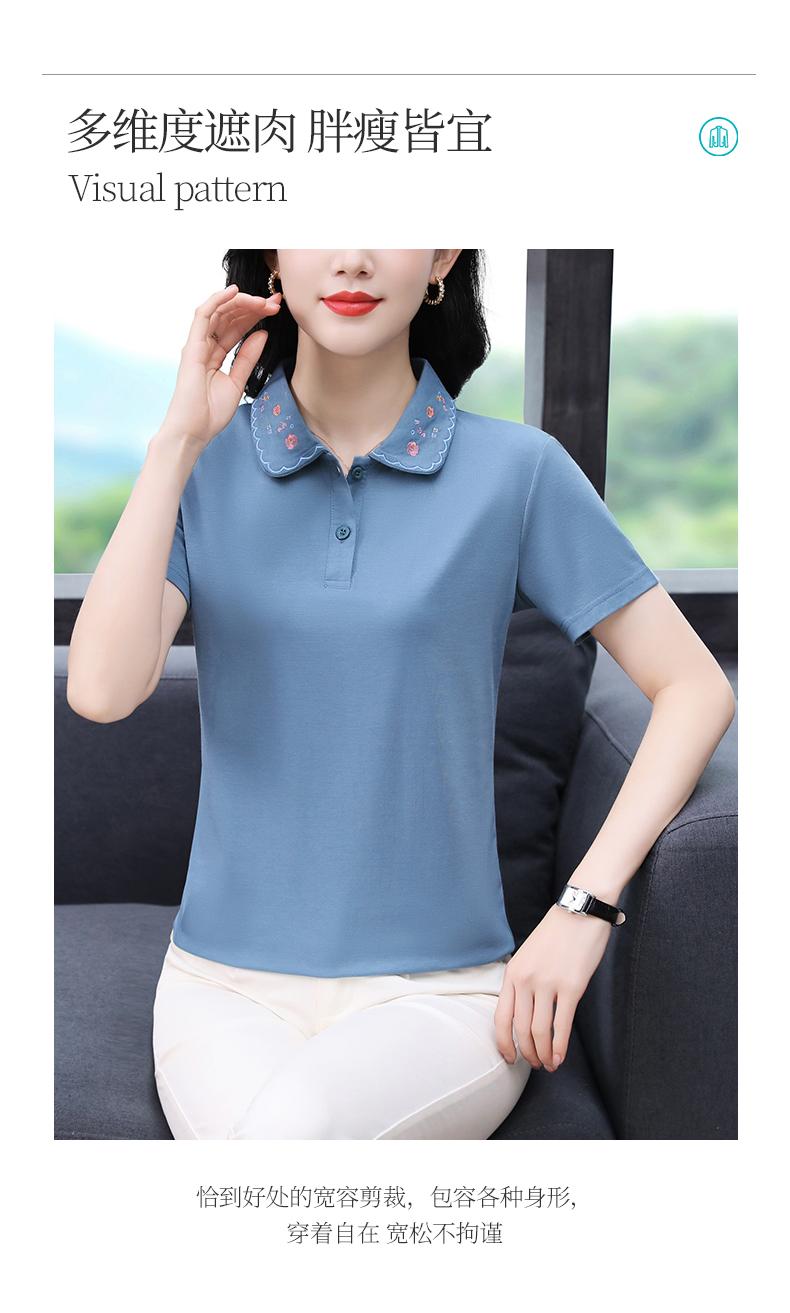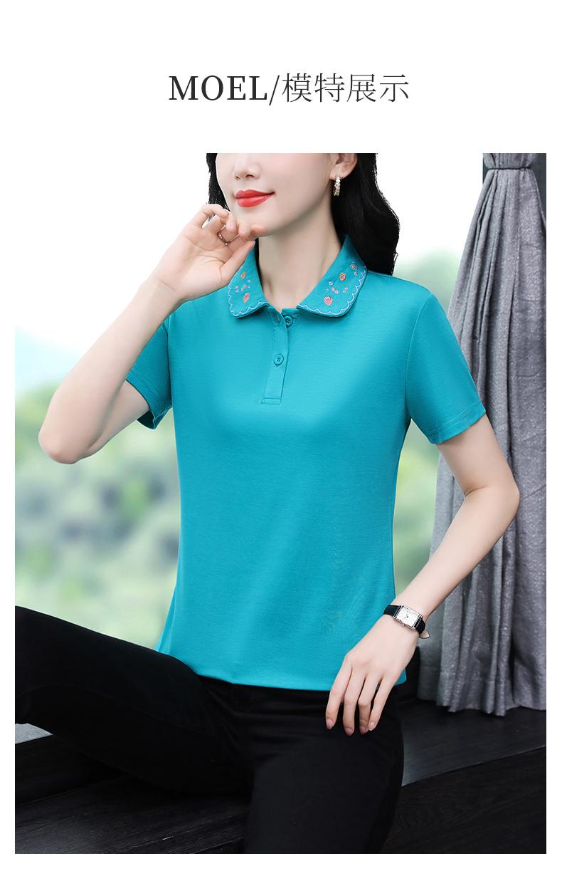 Polo de Algodón Puro Camiseta de Manga Corta Ropa de Verano para Mujer 2025 Nueva Moda Slim Solapa en V Top Polo de Moda