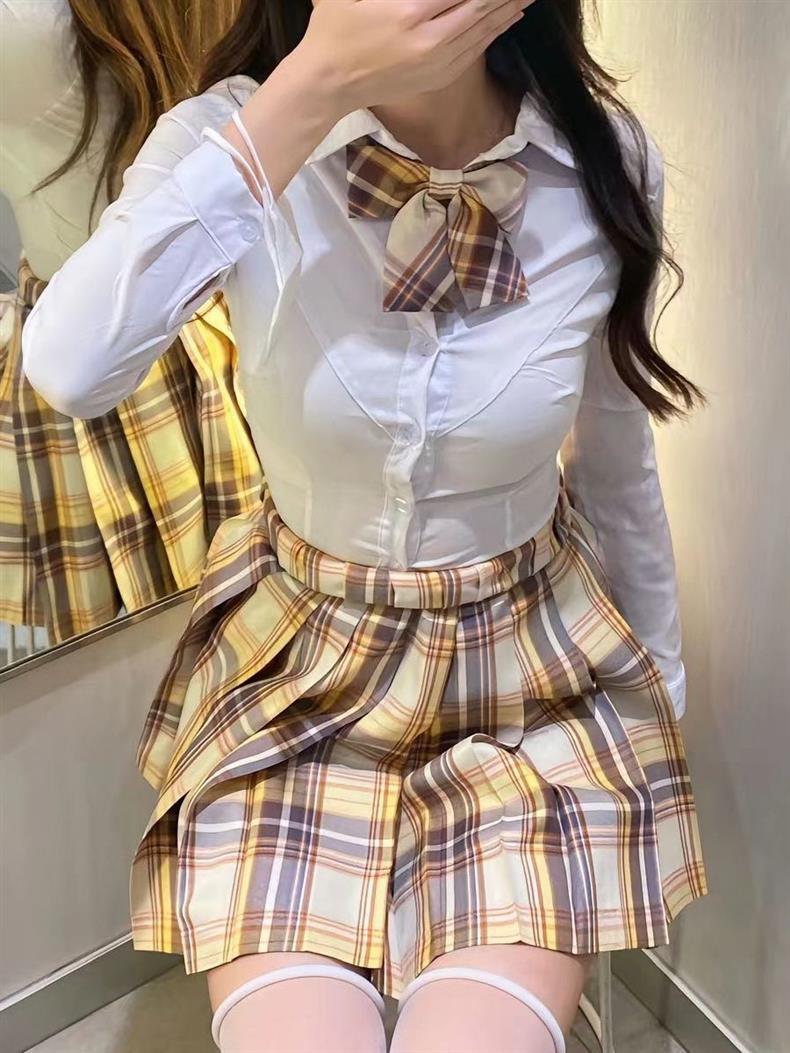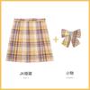 Suit waisted long-sleeved shirt + mountain plaid skirt + bow tie