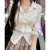 Single waist white shirt, Waist-cinching white shirt + mountain bow tie, Suit waisted long-sleeved shirt + mou...