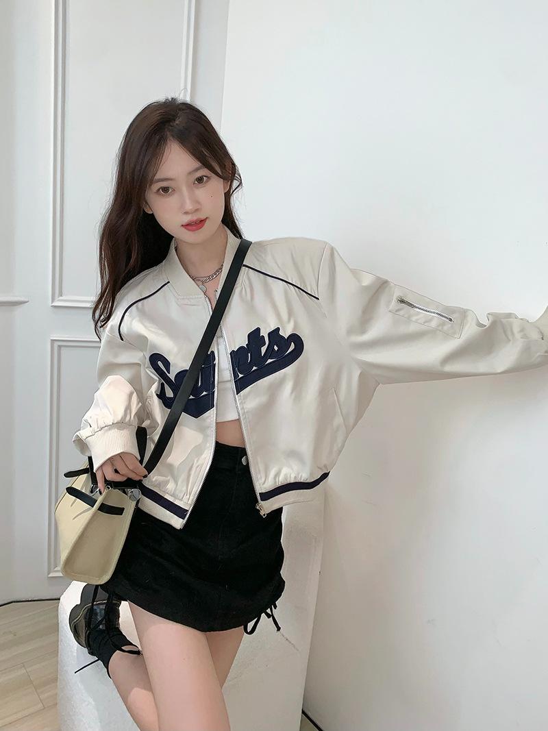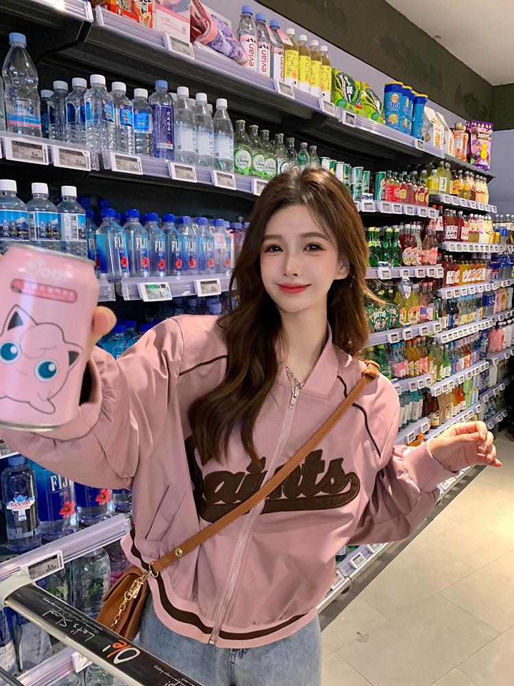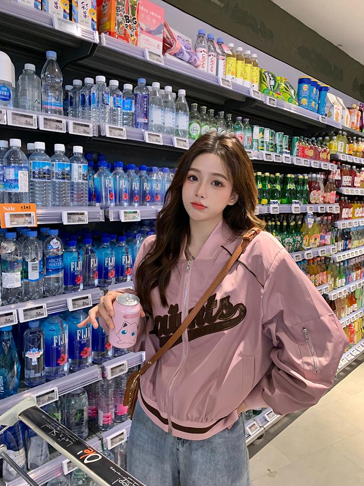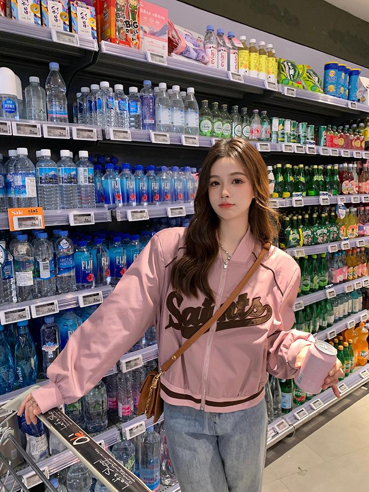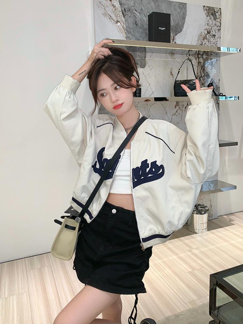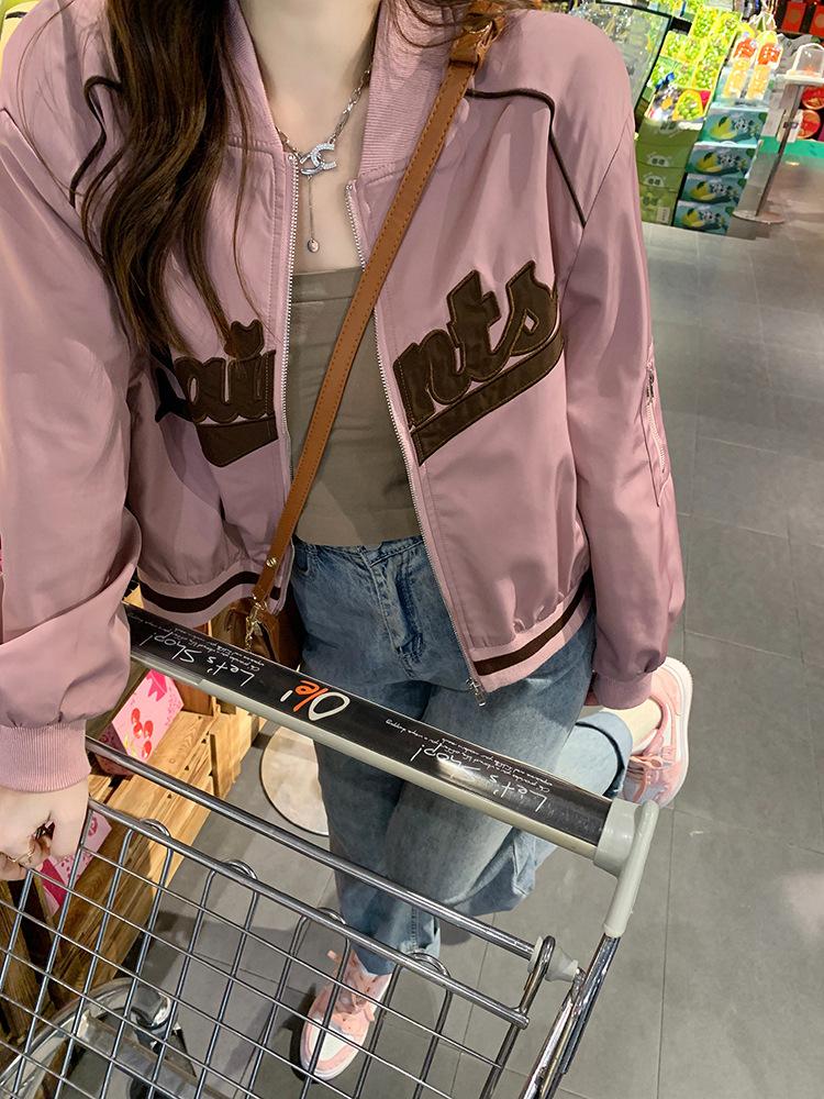 Otoño/Invierno 2024 Nueva Moda Casual Parche Bordado de Letras Patchwork Uniforme de Béisbol Chaqueta Abrigo de Cuello Alto Holgado para Mujer Trendy