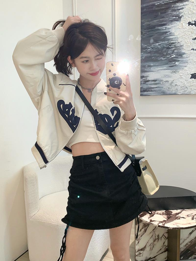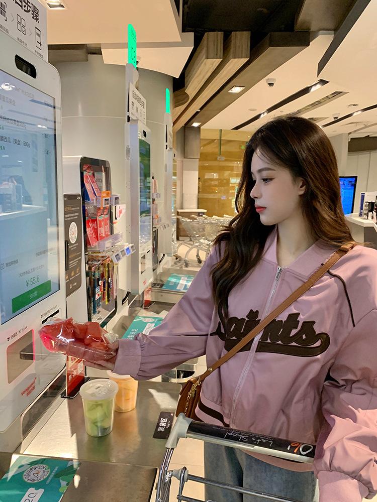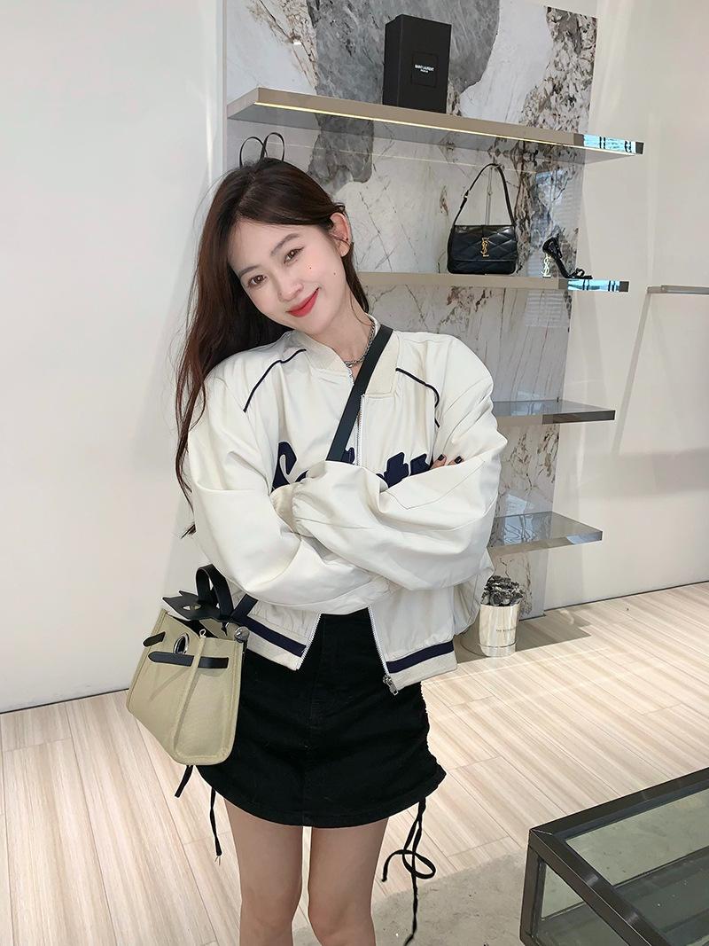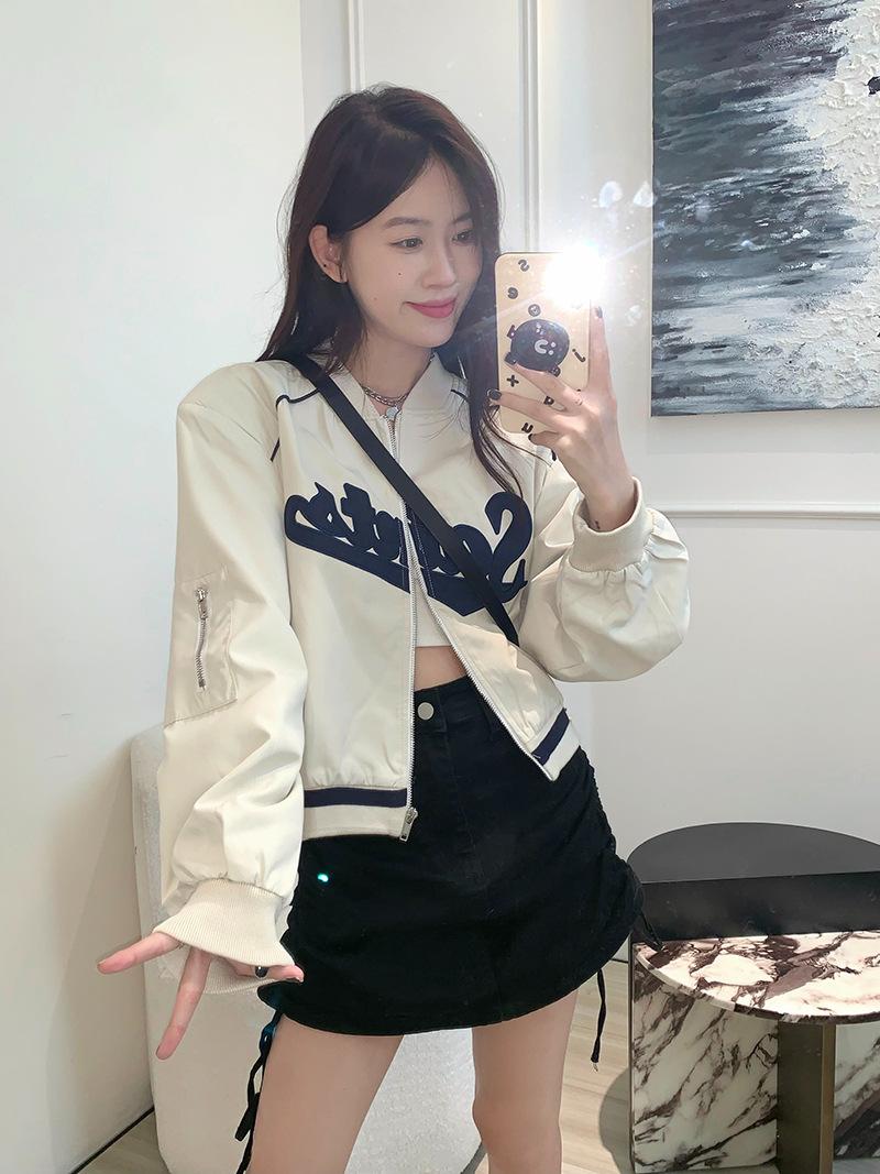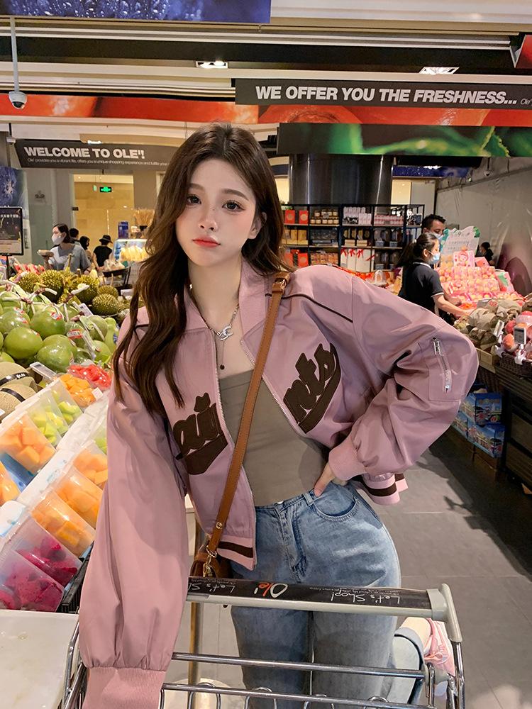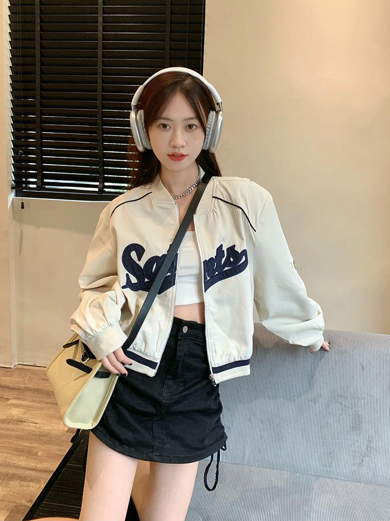 Otoño/Invierno 2024 Nueva Moda Casual Parche Bordado de Letras Patchwork Uniforme de Béisbol Chaqueta Abrigo de Cuello Alto Holgado para Mujer Trendy