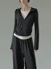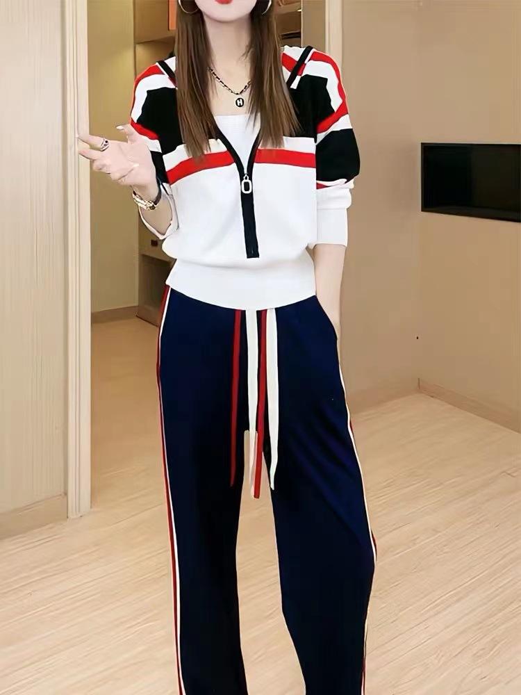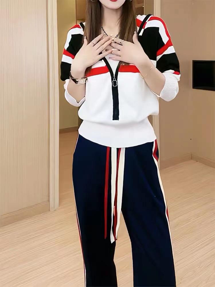 Set de Sudadera Cárdigan con Capucha y Cremallera para Mujer Moda de Principios de Otoño Casual Holgado Adelgazante Pantalón Largo Deportivo Conjunto de Dos Piezas #816