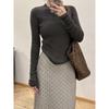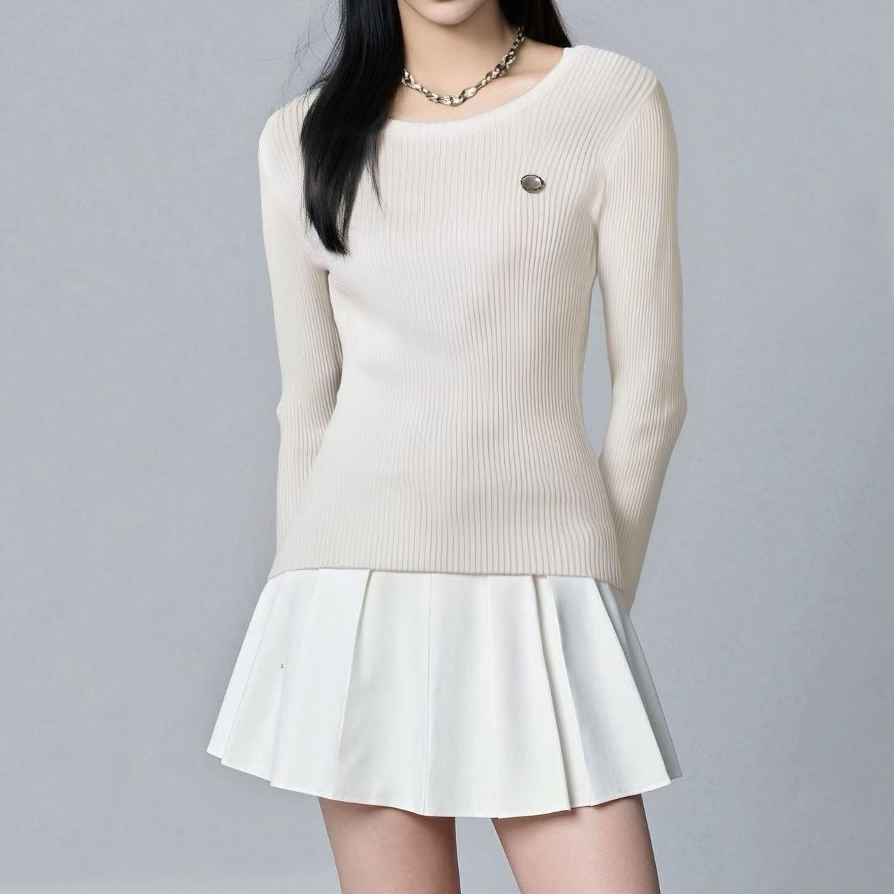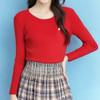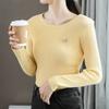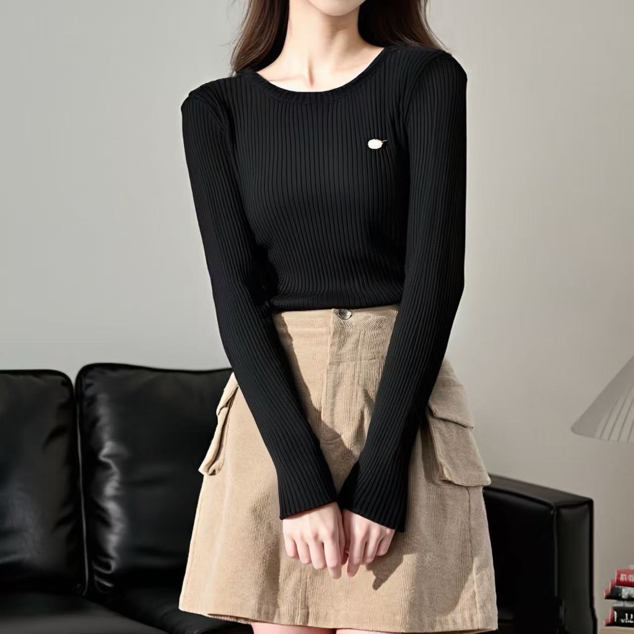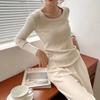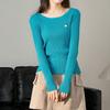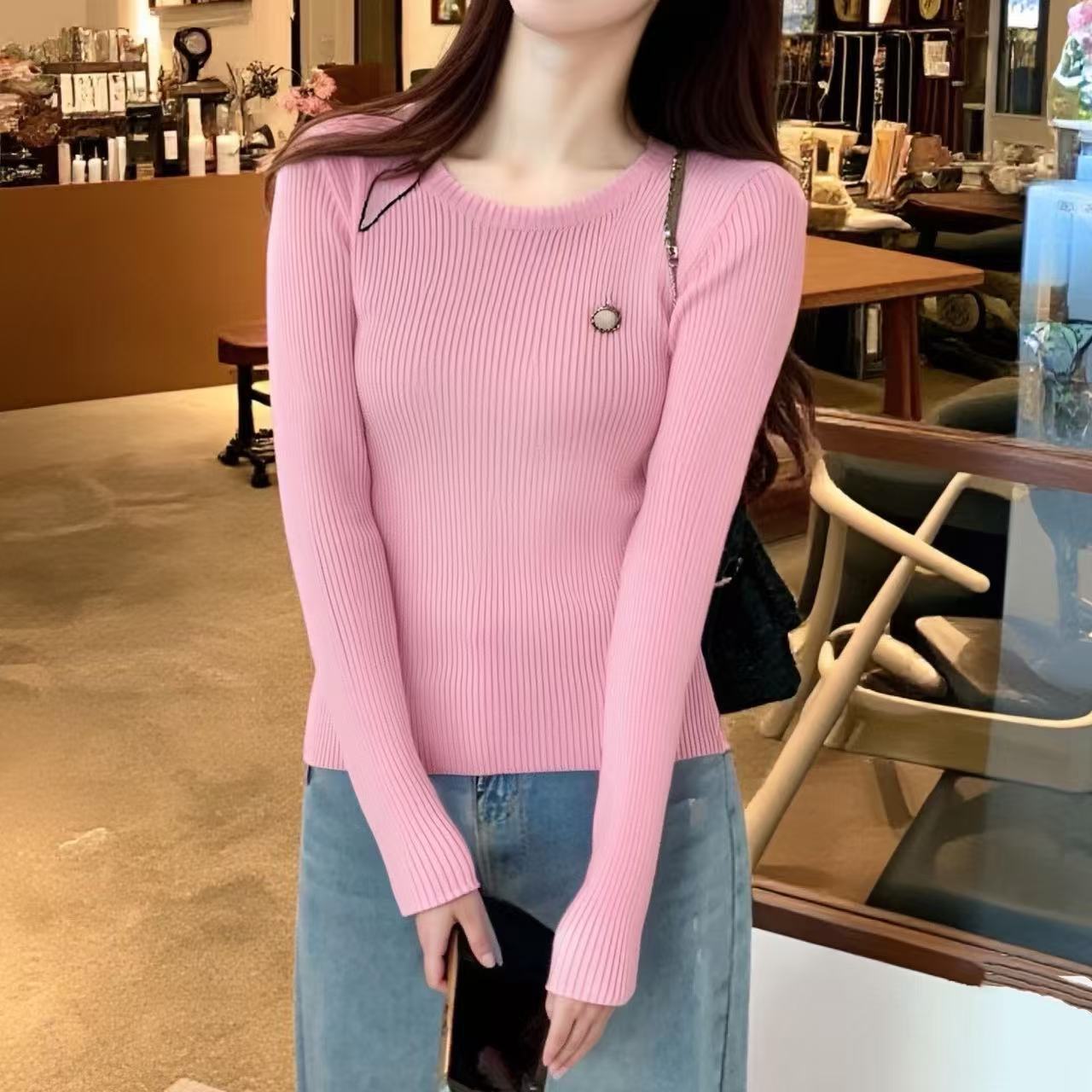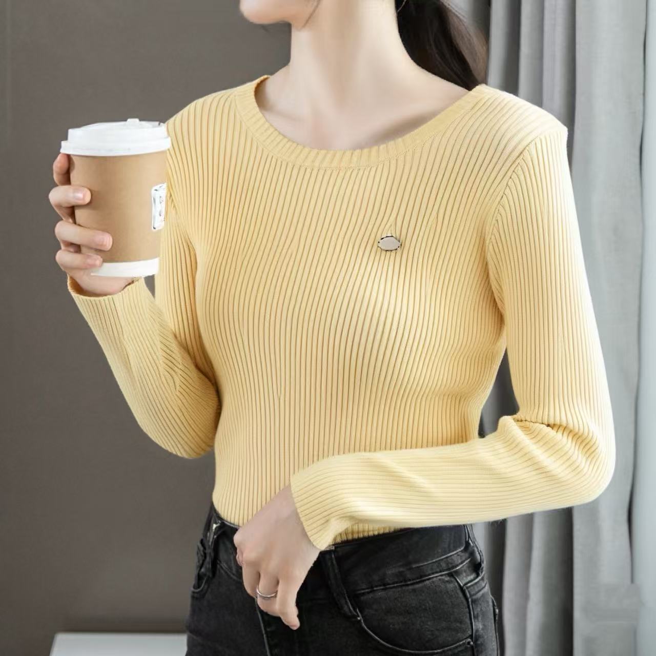 Suéter de Punto de Color Sólido de Manga Larga y Cuello Redondo para Mujer, Otoño, Ajustado, Capa Interior Adelgazante, Suéter Base Fino, Top de Tendencia