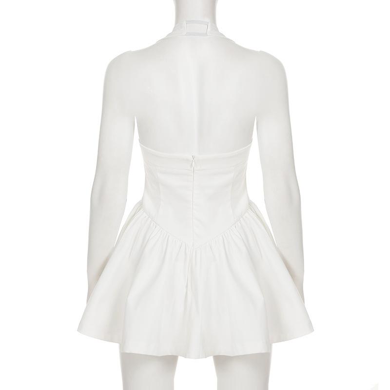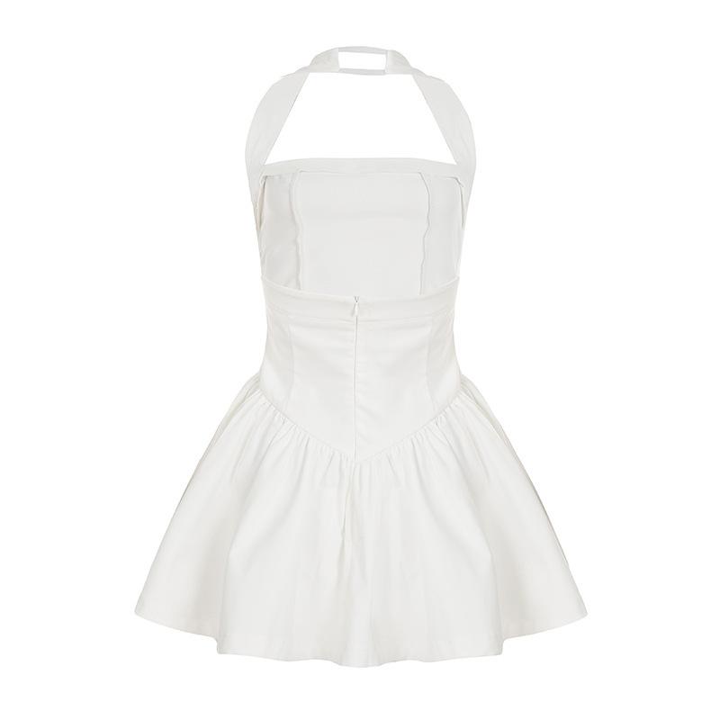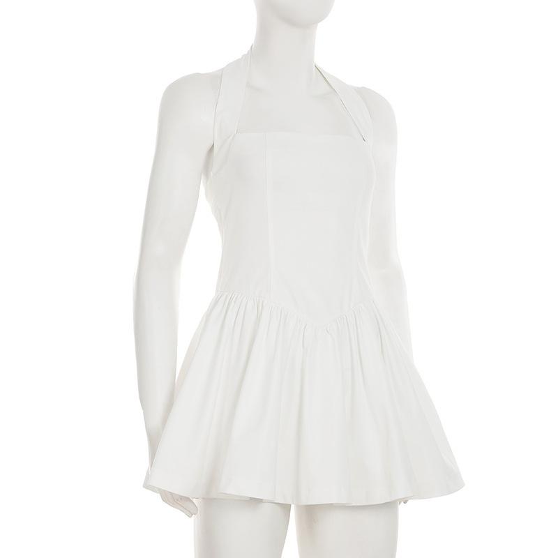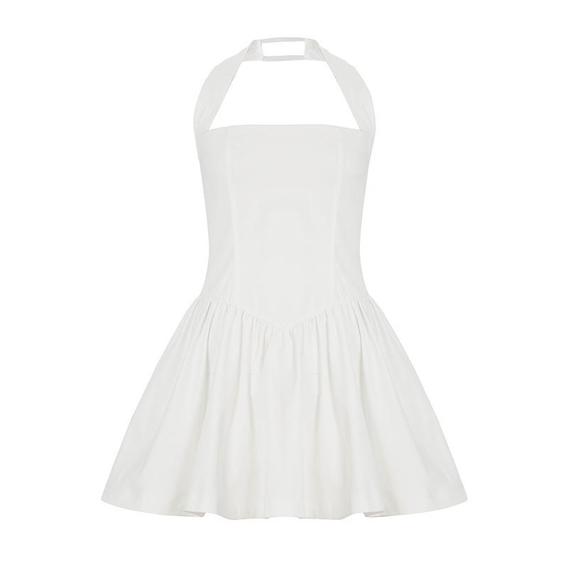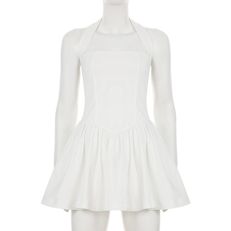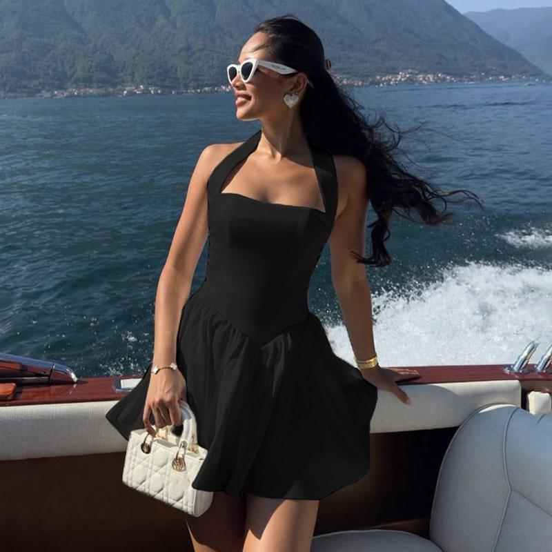 Amazon Europa y América Estilo Vacacional Costero Transfronterizo Color Sólido Entallado Adelgazante Cuello Halter Vestido Línea A Nueva Llegada 2025 Venta al por Mayor