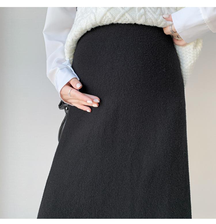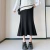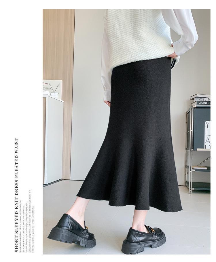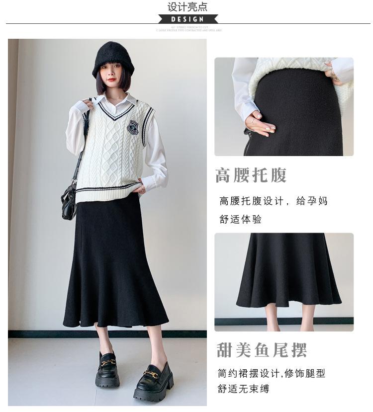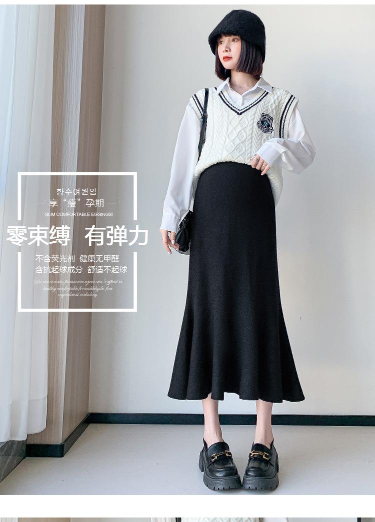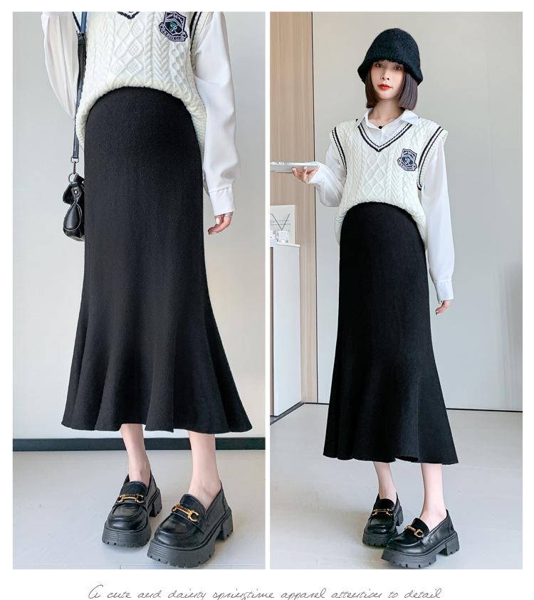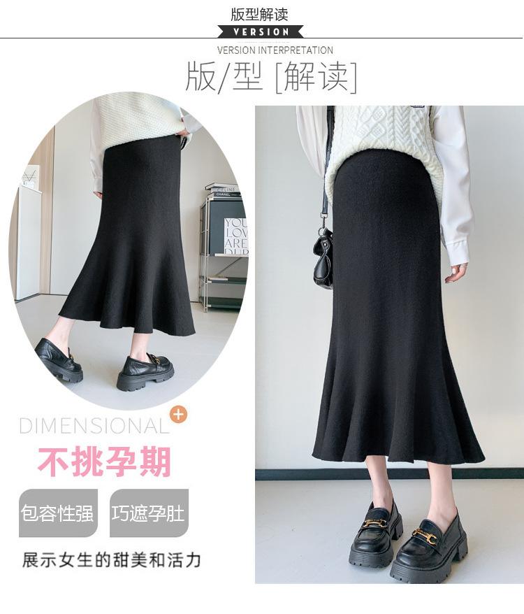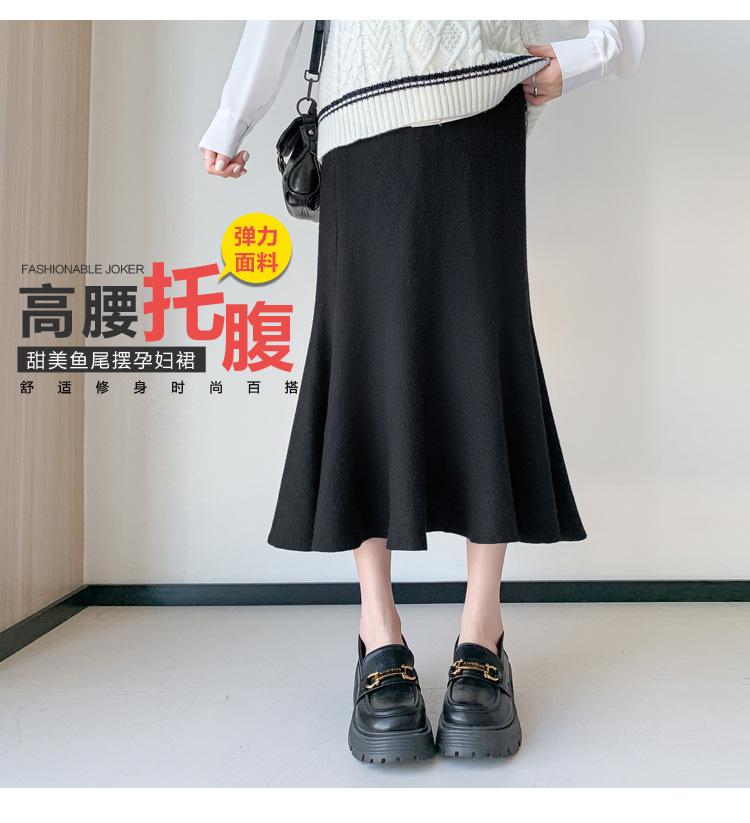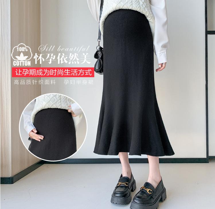 Ropa de Maternidad Otoño Invierno Falda Bodycon Tejida Cola de Pez Moda Trendy para Mamás Adelgazante Cintura Alta Largo Medio Falda de Maternidad