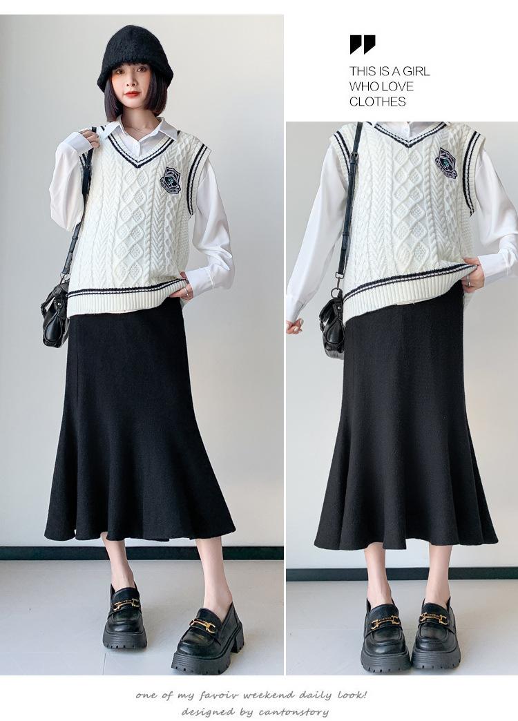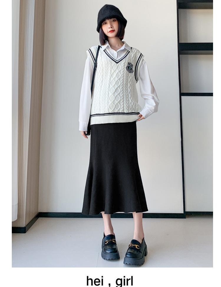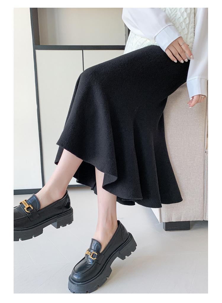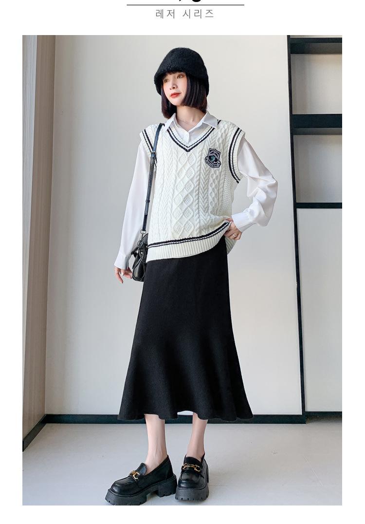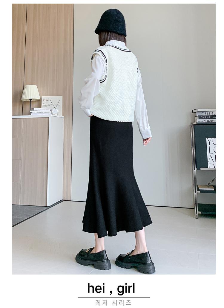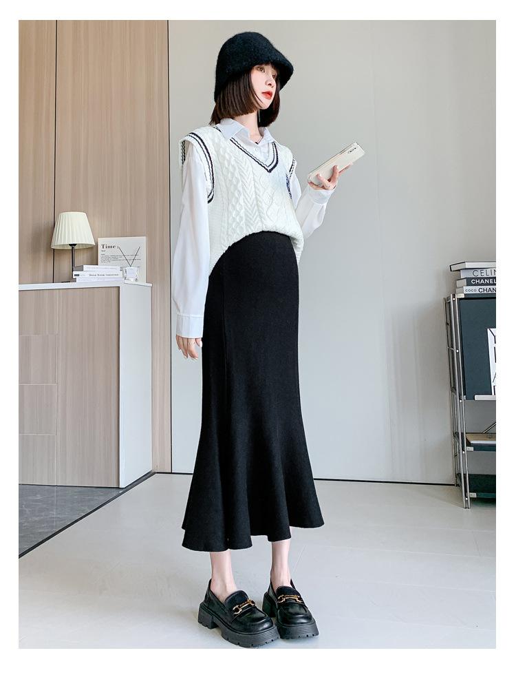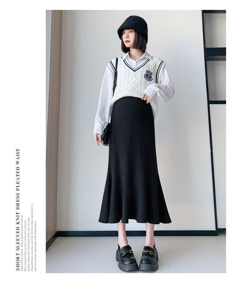 Ropa de Maternidad Otoño Invierno Falda Bodycon Tejida Cola de Pez Moda Trendy para Mamás Adelgazante Cintura Alta Largo Medio Falda de Maternidad