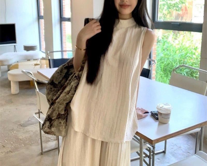 Moda Verano 2025 Nuevo Conjunto Casual Holgado Top sin Mangas Chaleco Culottes de Pierna Ancha Conjunto Holgado de Dos Piezas