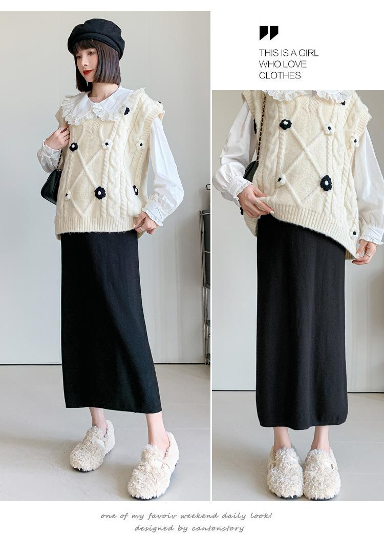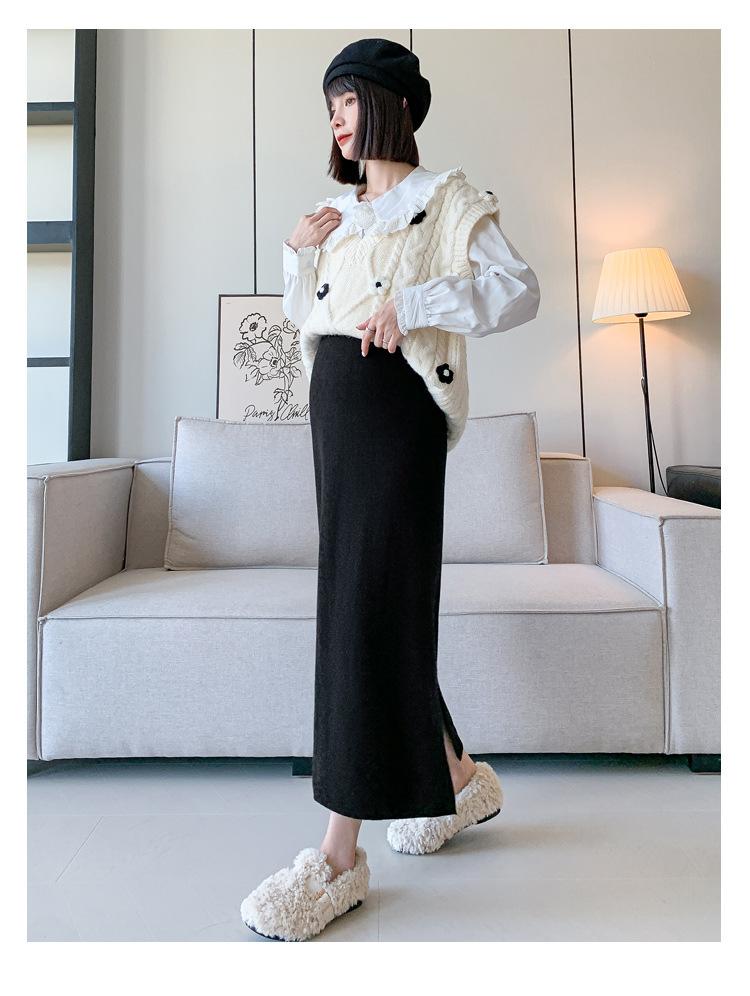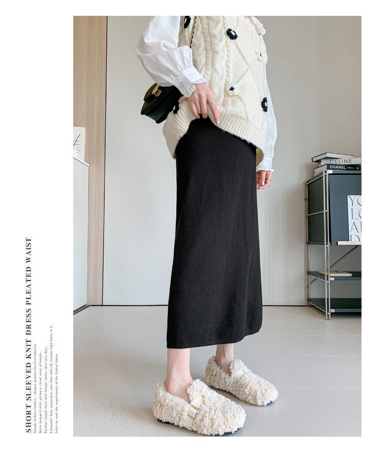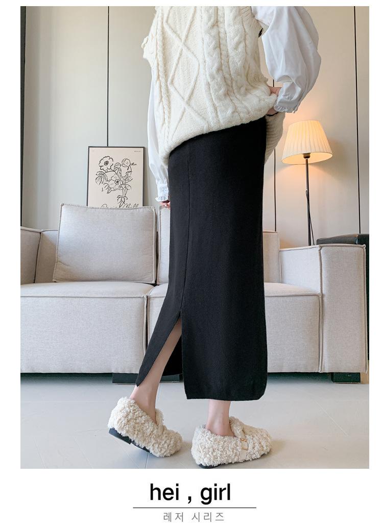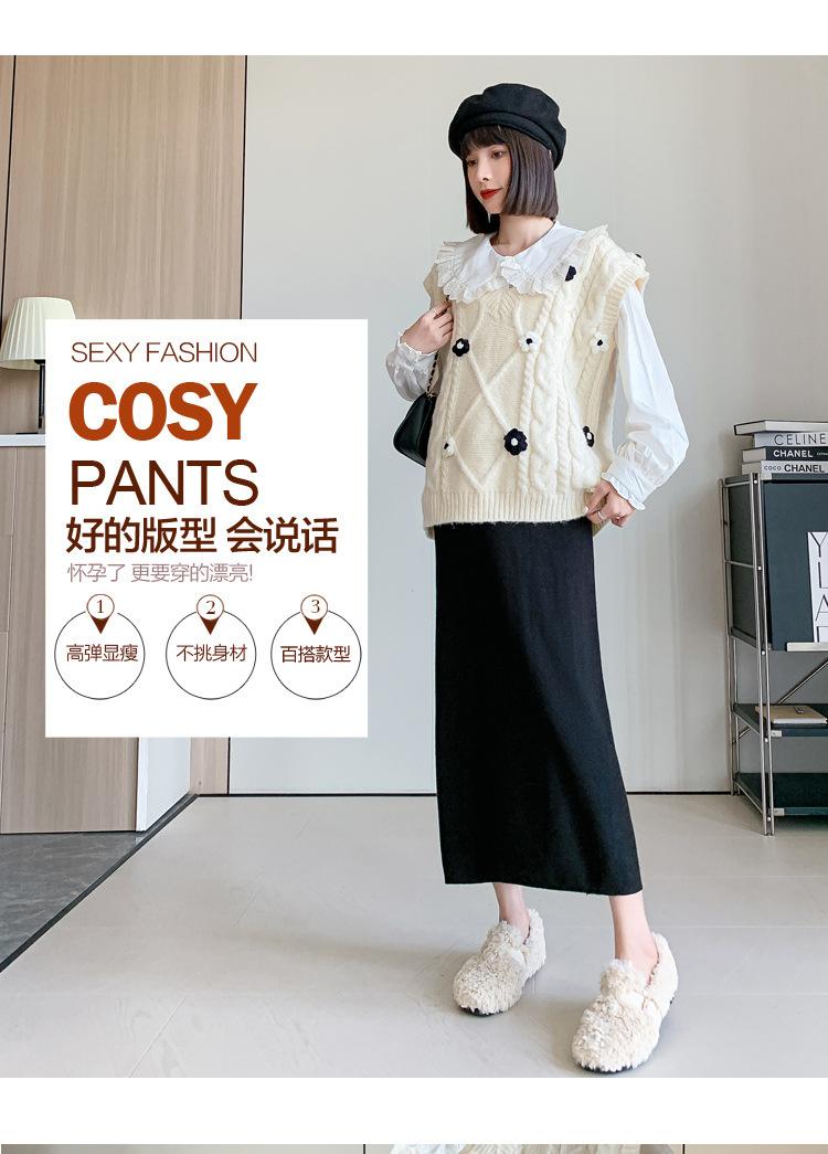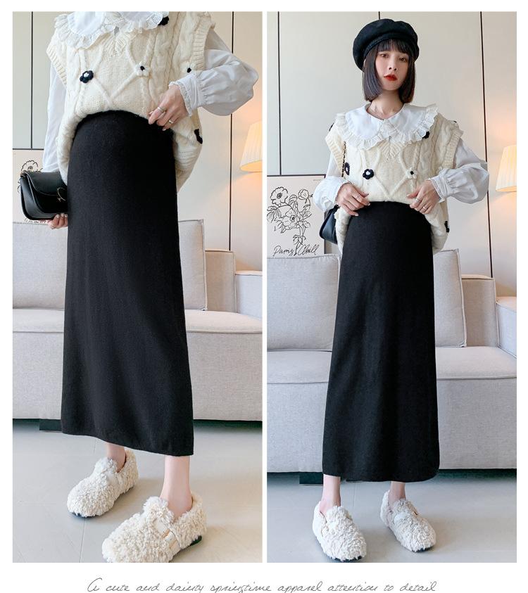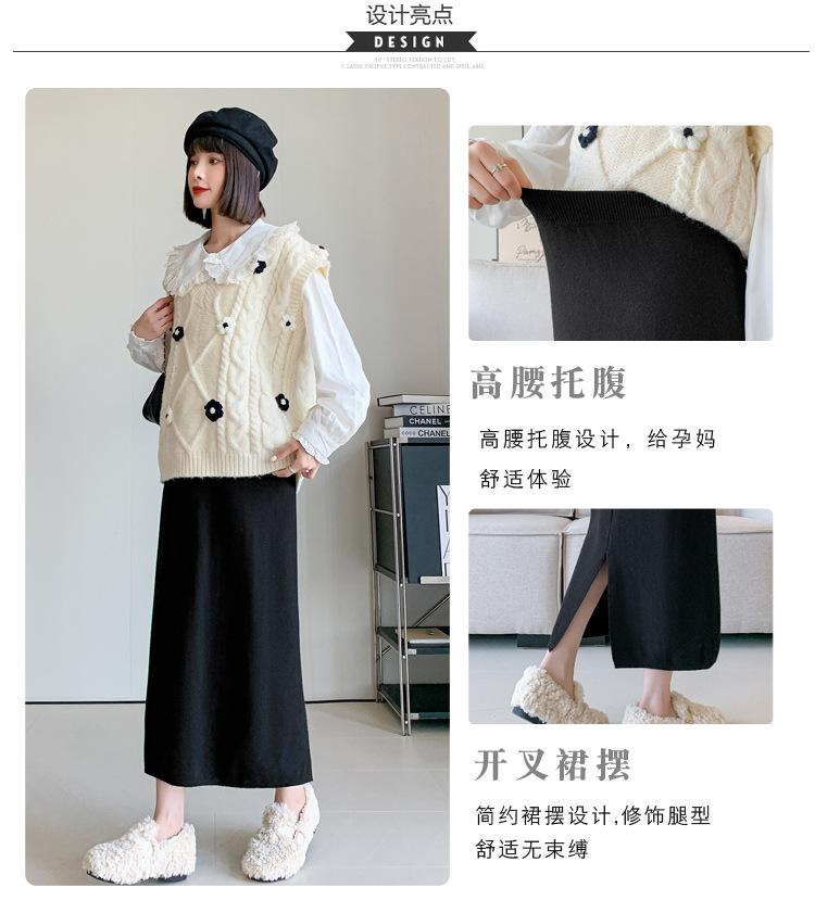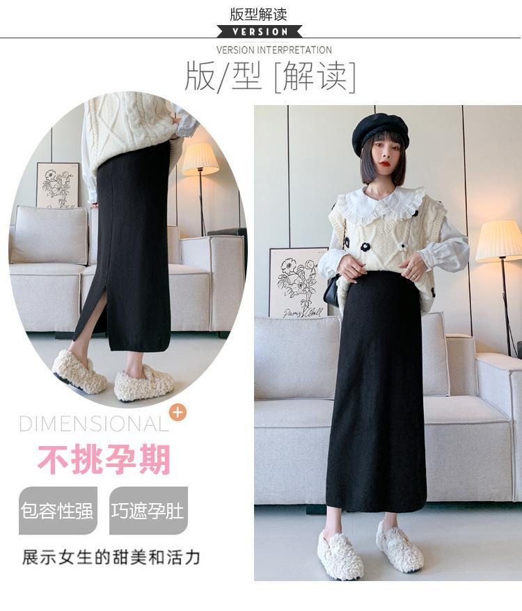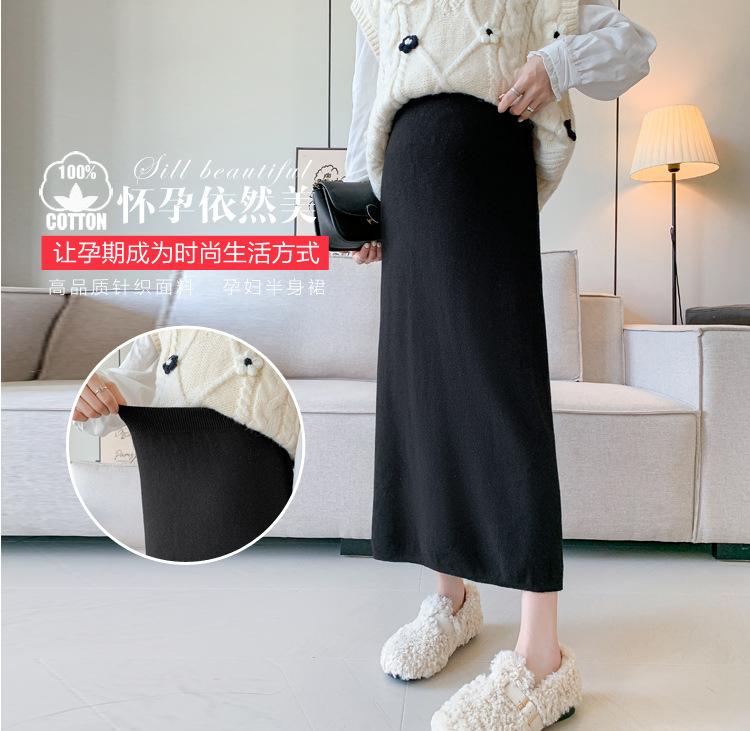 Falda Midi para Mujer Embarazada Moda Otoño e Invierno Casual Falda Midi Tejida Embarazo Ropa Exterior Adelgazante Recta con Abertura Falda de Un Paso