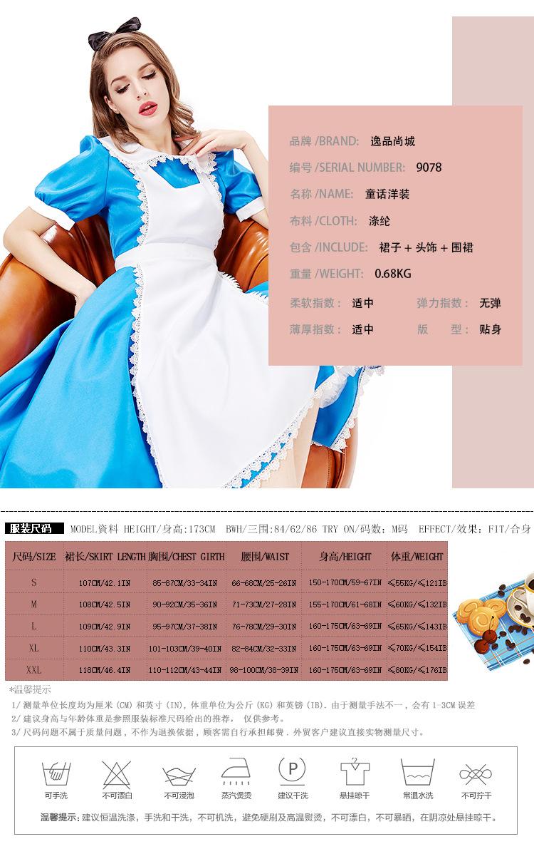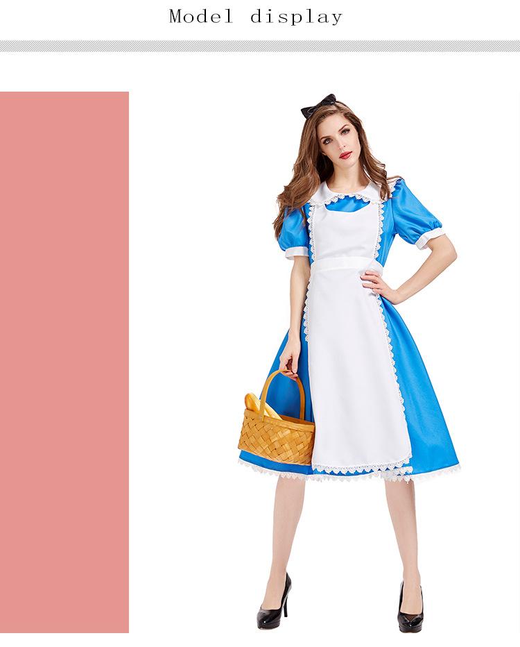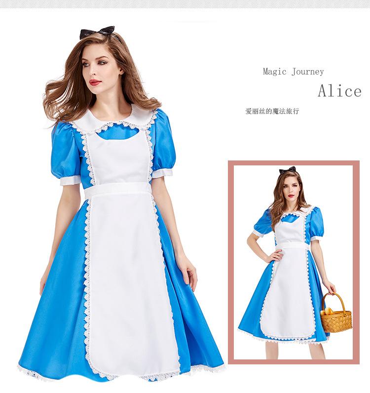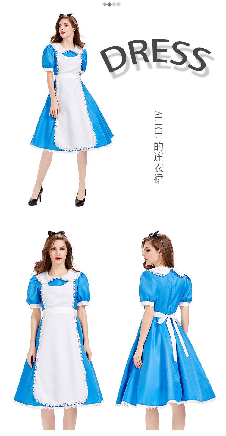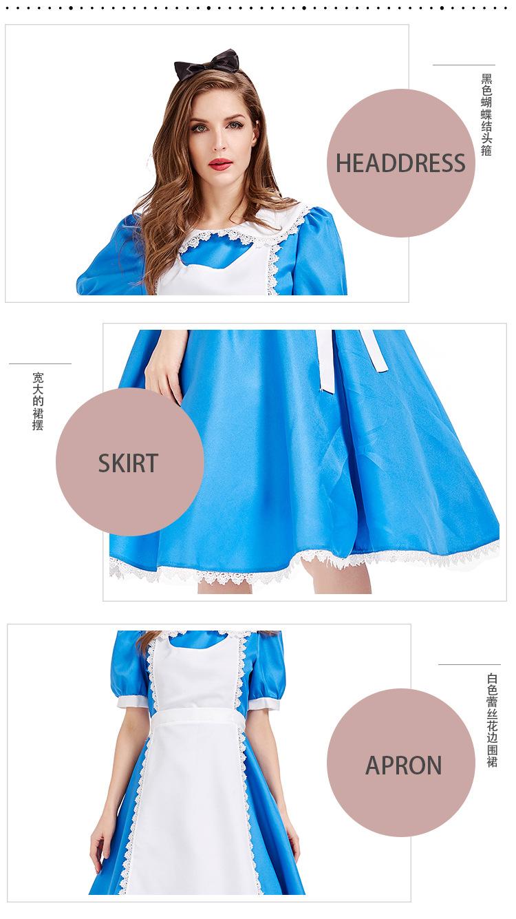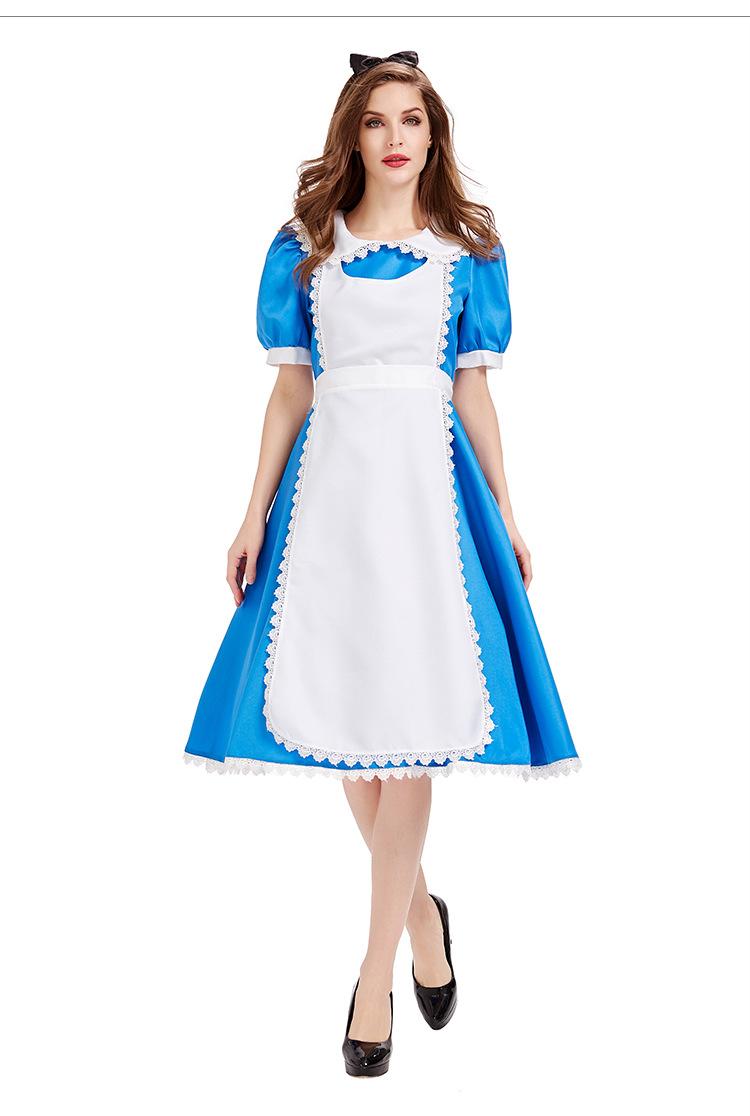 Cuentos de Hadas Alicia en el País de las Maravillas Disfraz Fiesta de Té Vestido Azul Disfraz para Actuación Escénica