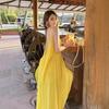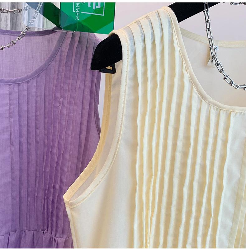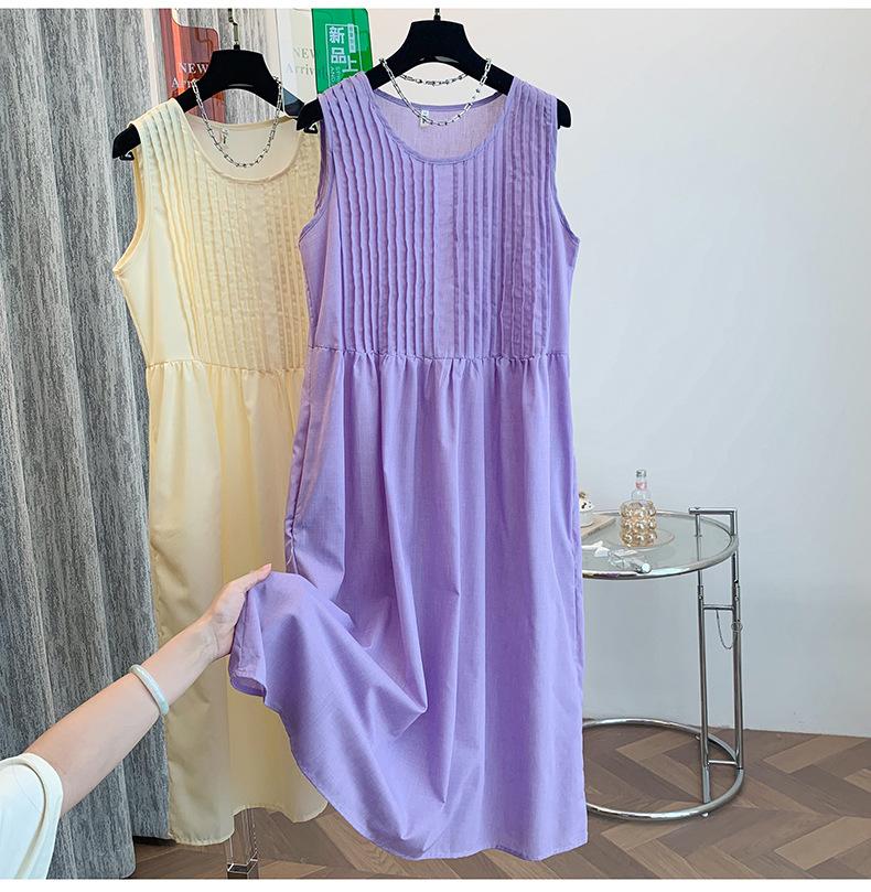 Vestido camisola morado francés sin mangas con tirantes para mujer 2025 nuevo verano vacaciones junto al mar vestido largo sentido