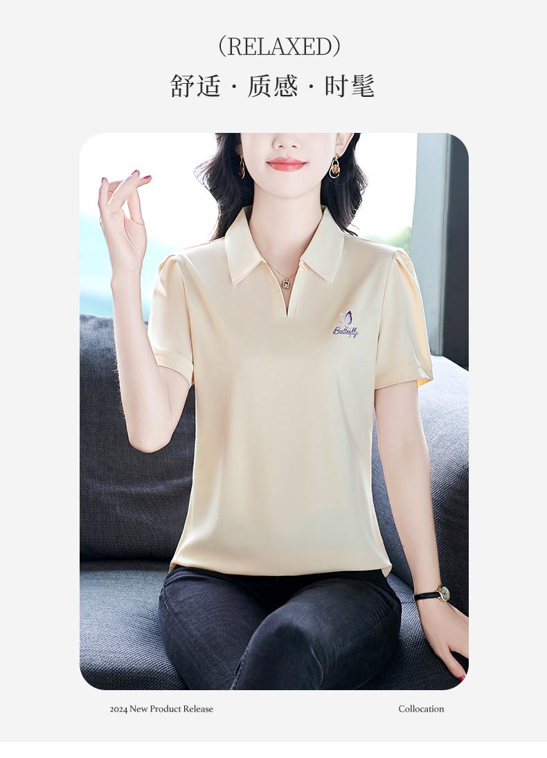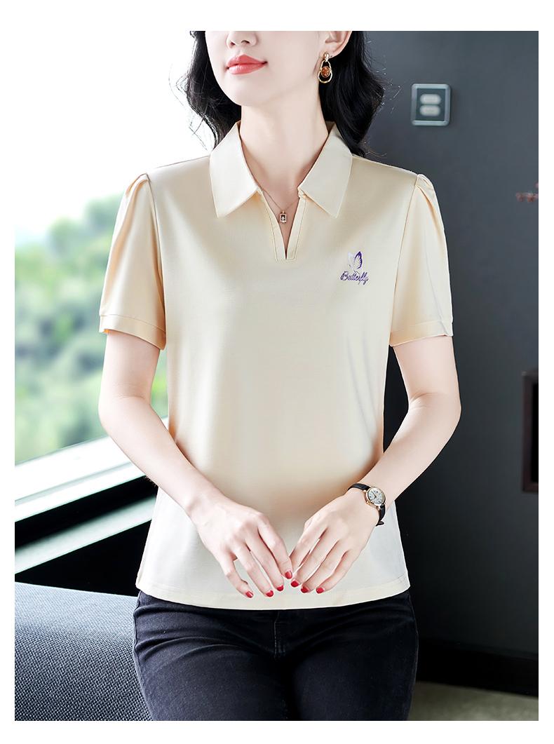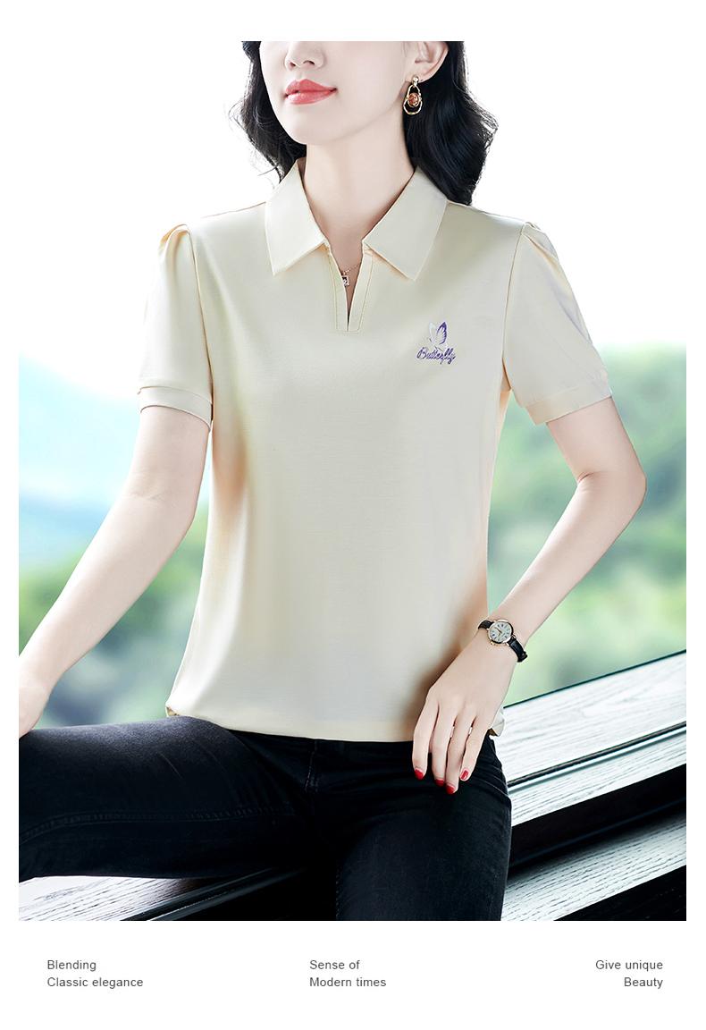 Playera de Manga Corta para Mujer Verano Lujo Ligero de Alta Gama Única Hermosa Top Pequeño Pequeña Moderna Reductora de Edad Camisa POLO