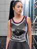 En Stock Verano Nuevo Estilo Callejero Europeo y Americano Sin Mangas Sexy Estampado Abstracto Delgado Jersey Corto Top Corto de Tirantes