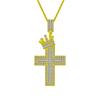 Collar con colgante de cruz hueca estilo hip hop de lujo con diamantes y circonitas cúbicas, cadena con colgante geométrico.