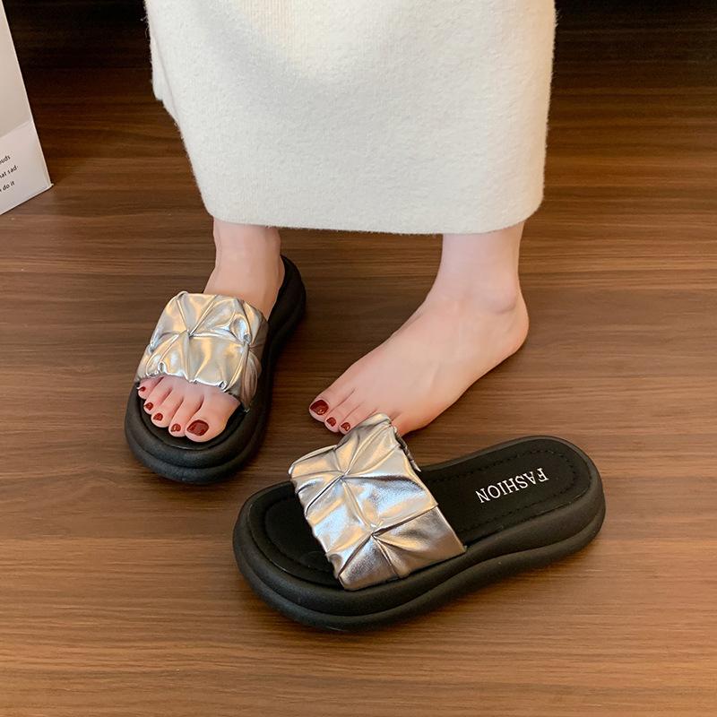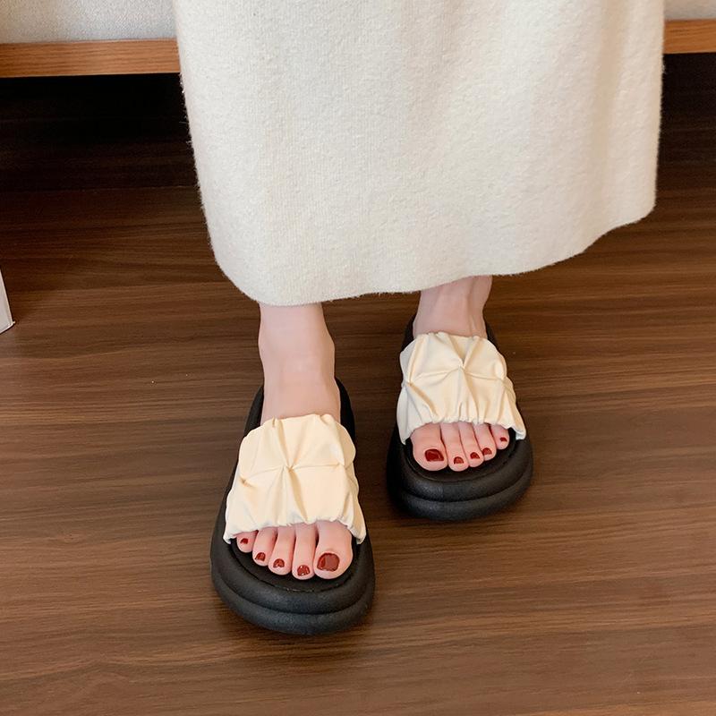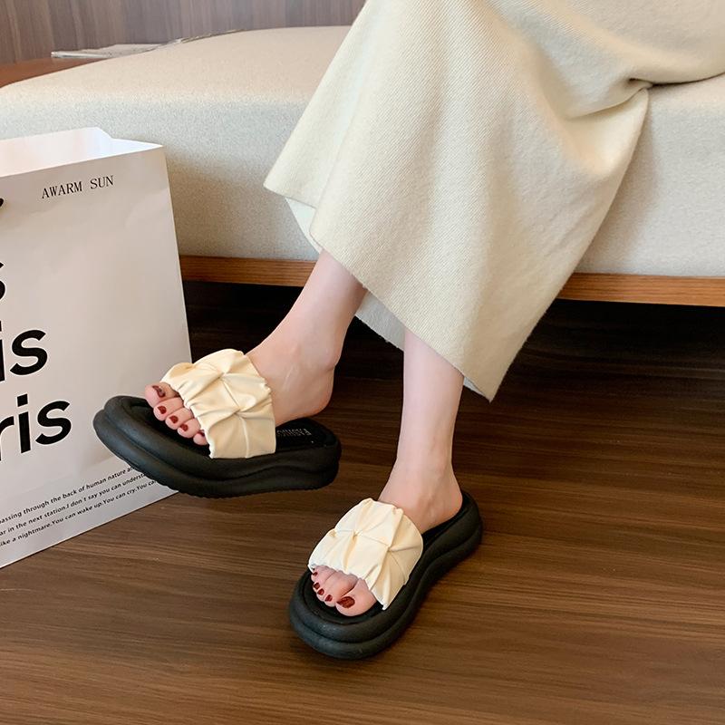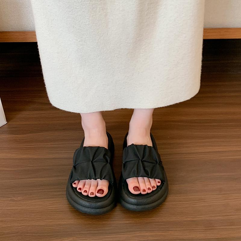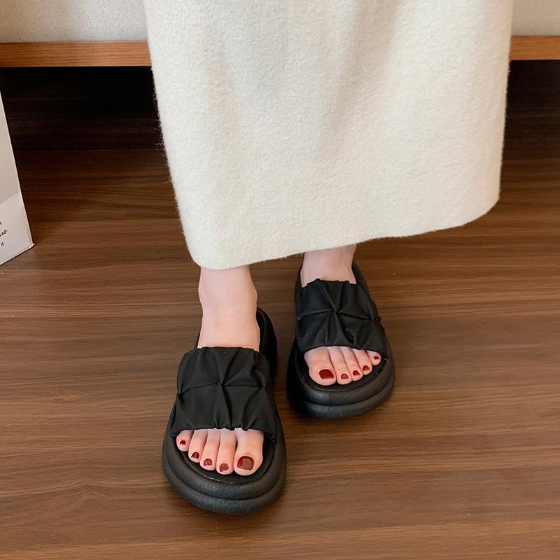 Zapatillas de Exterior Estilo Hada con Punta Abierta para Mujer Verano 2025 Nuevo Estilo Coreano de Playa con Plataforma Plisada para Mujer