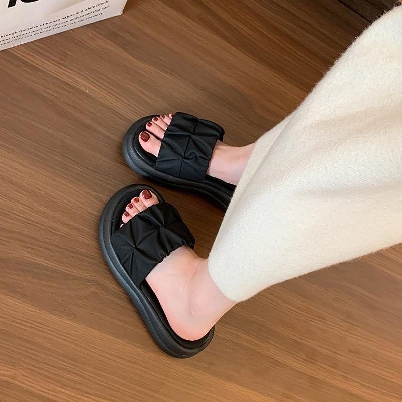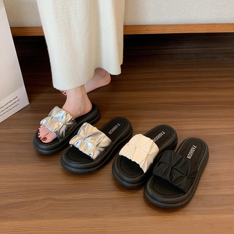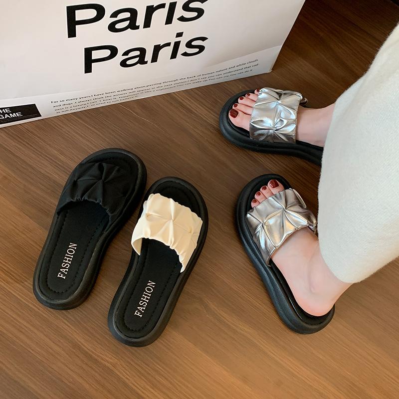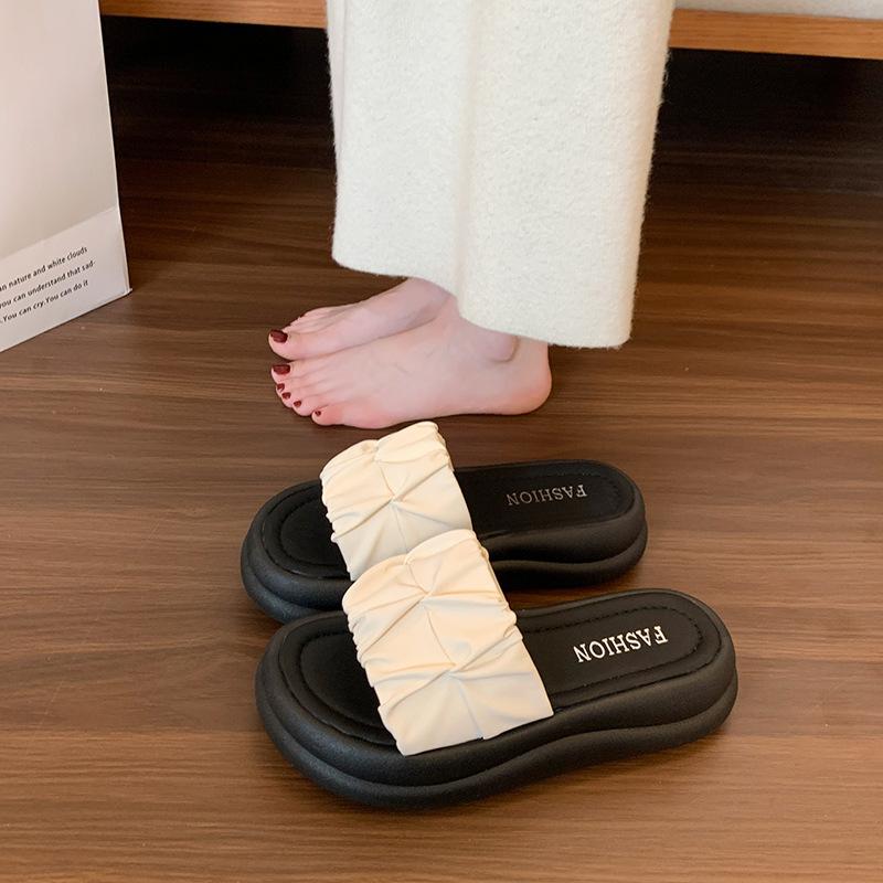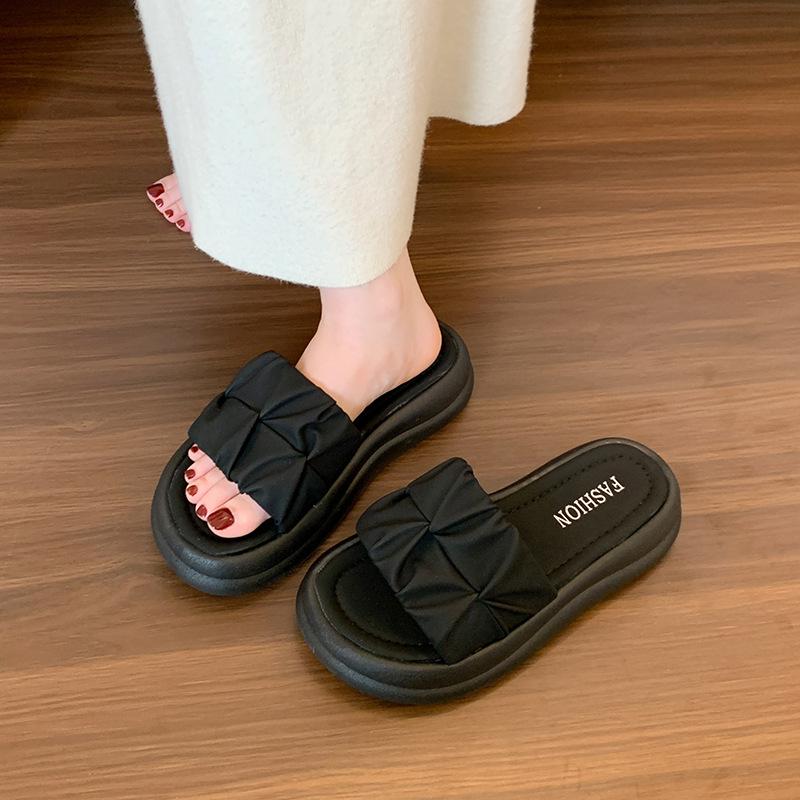 Zapatillas de Exterior Estilo Hada con Punta Abierta para Mujer Verano 2025 Nuevo Estilo Coreano de Playa con Plataforma Plisada para Mujer
