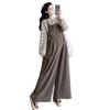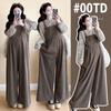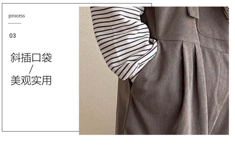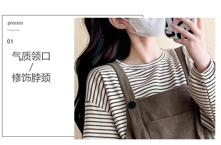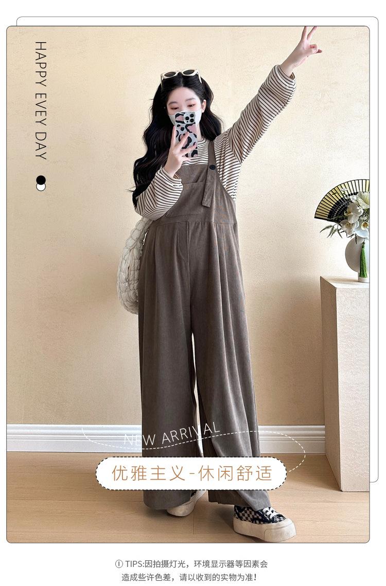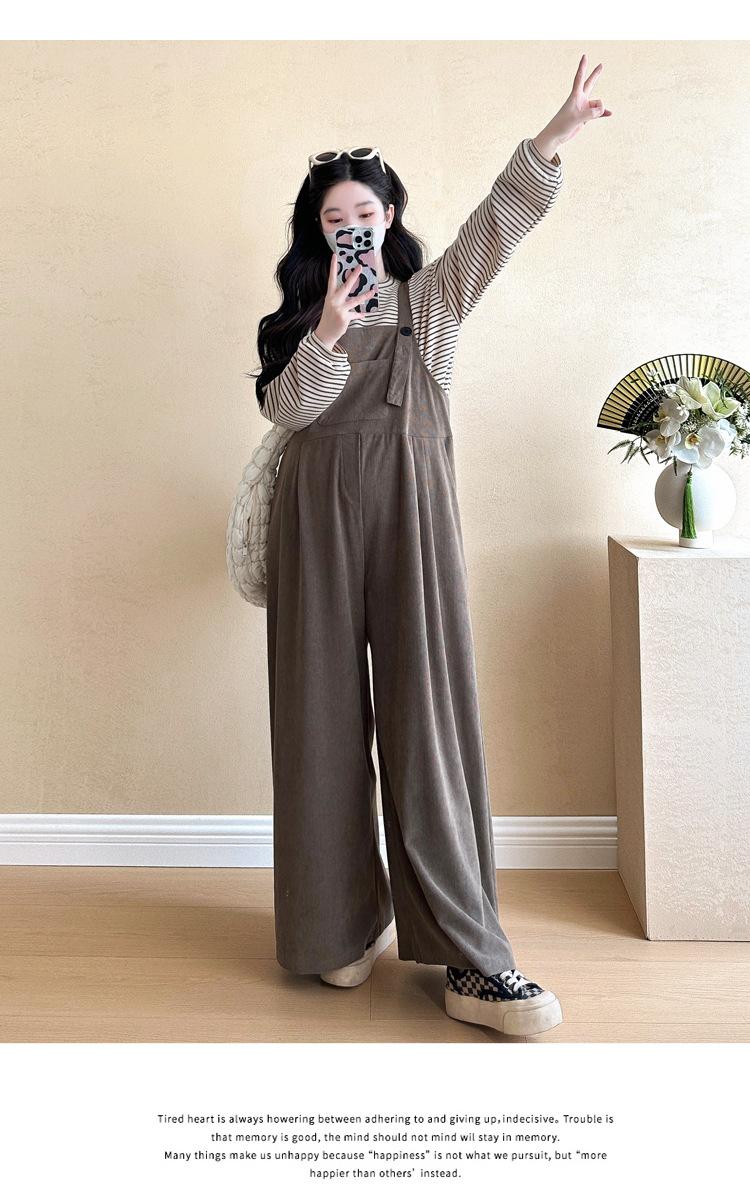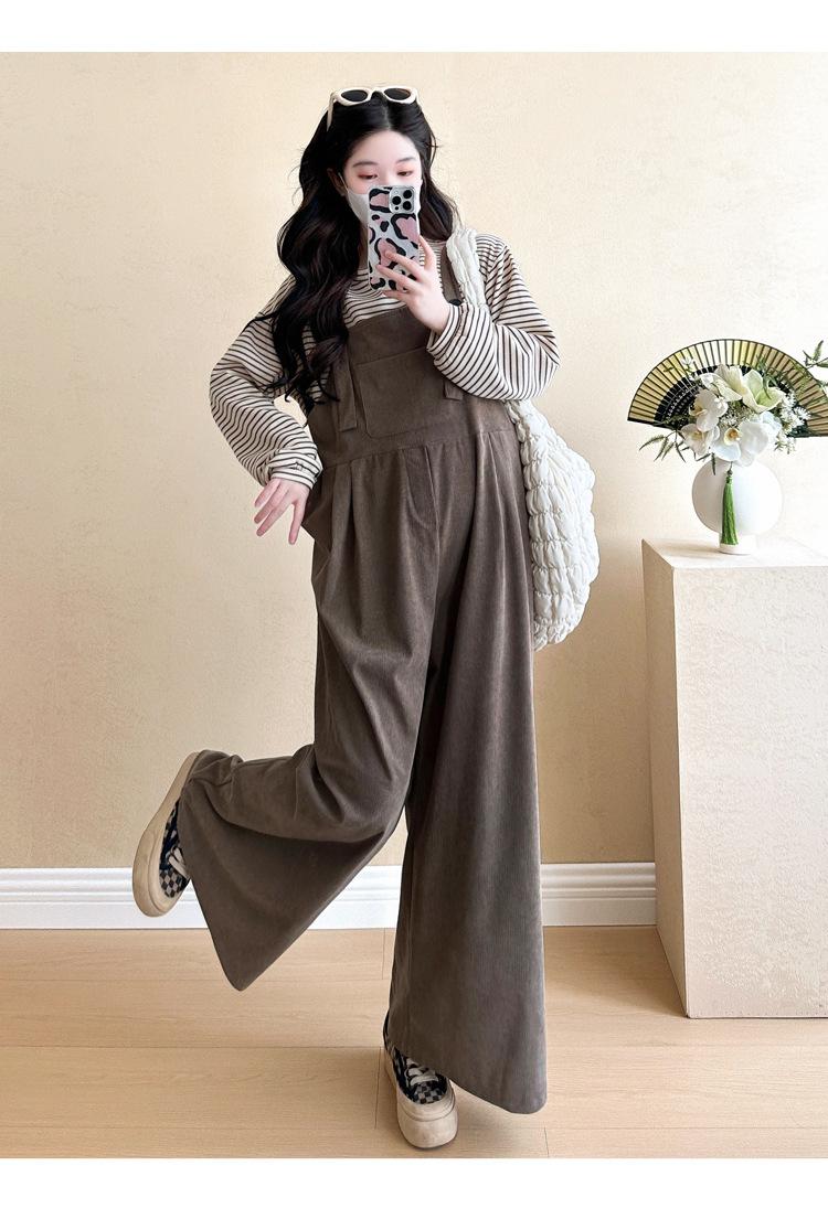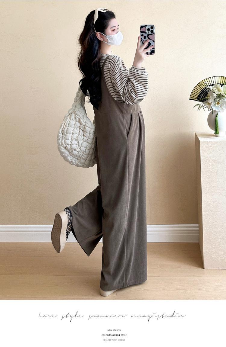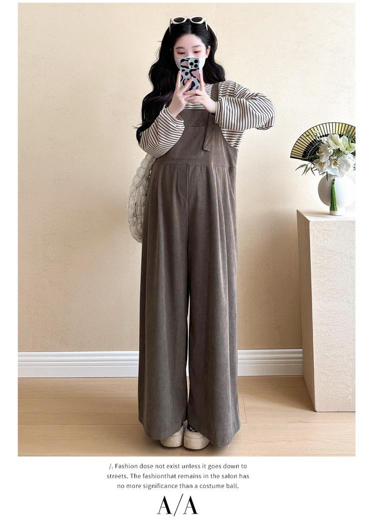 Overol de pana para otoño e invierno + Camiseta de punto a rayas Conjunto de dos piezas Traje de maternidad