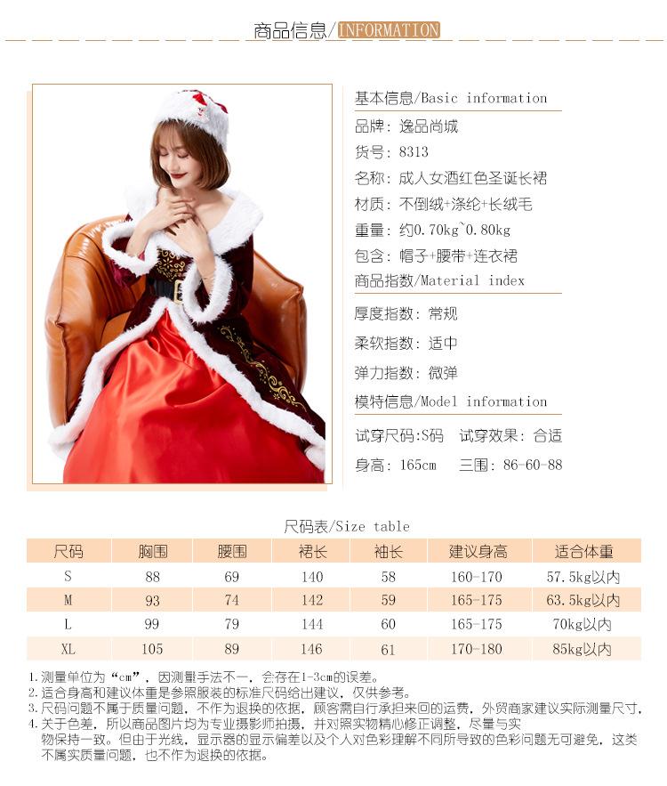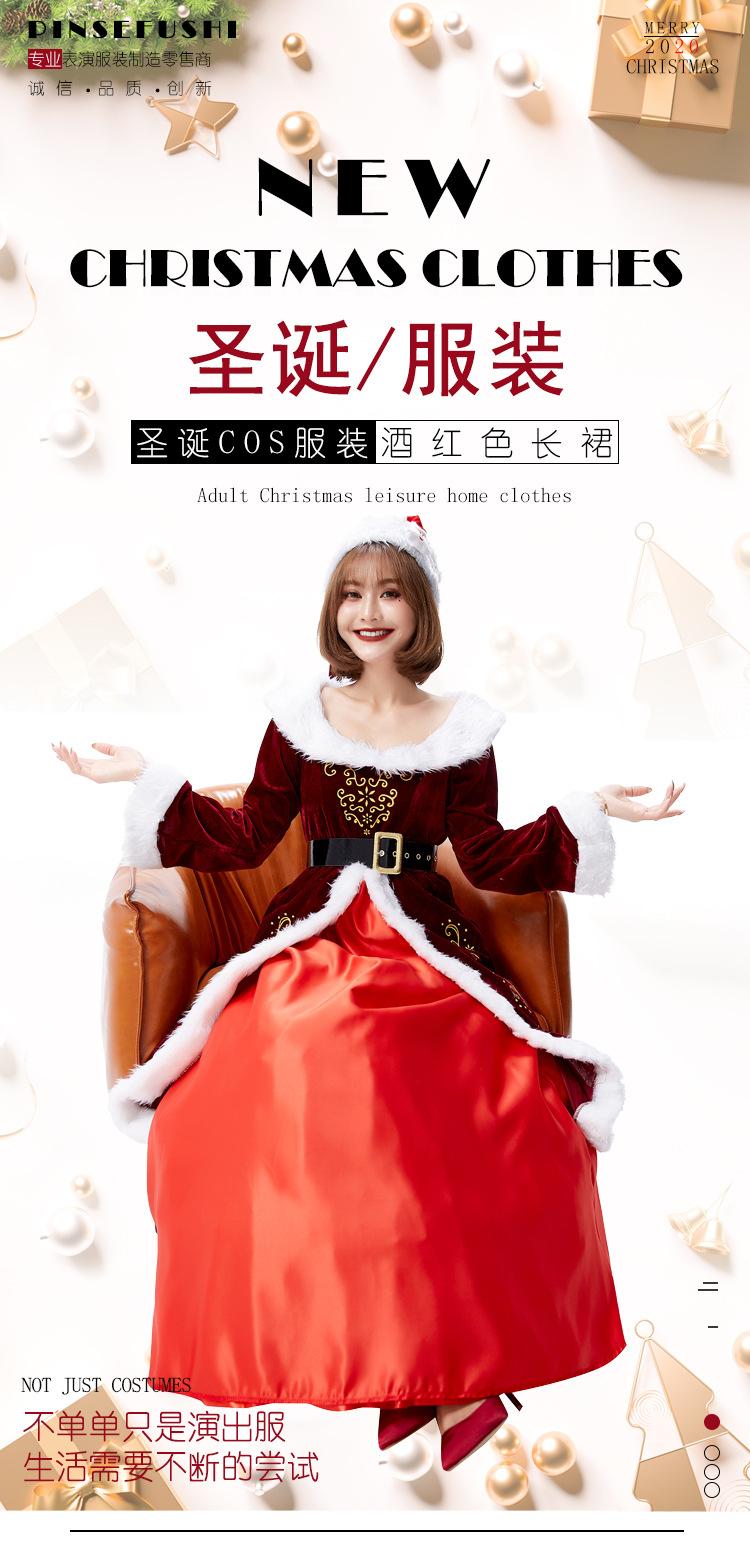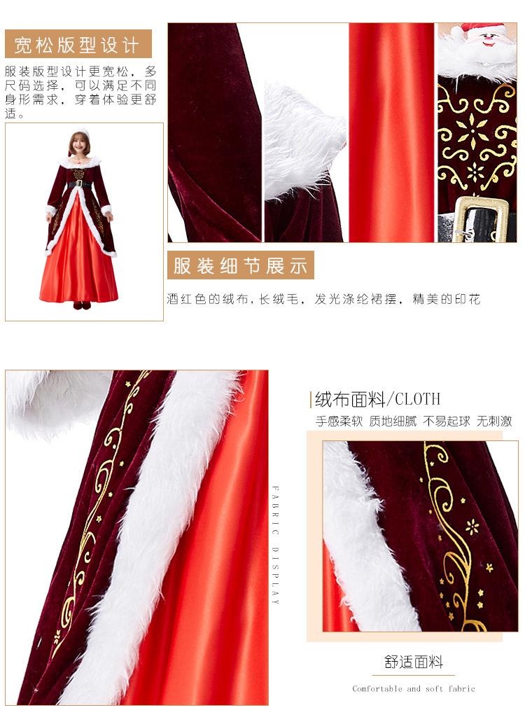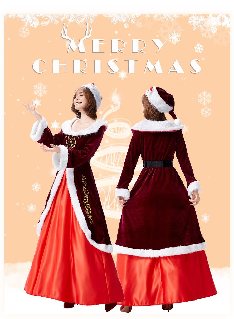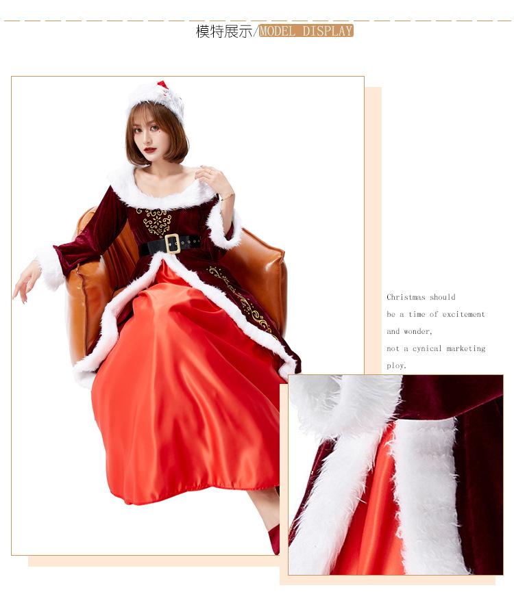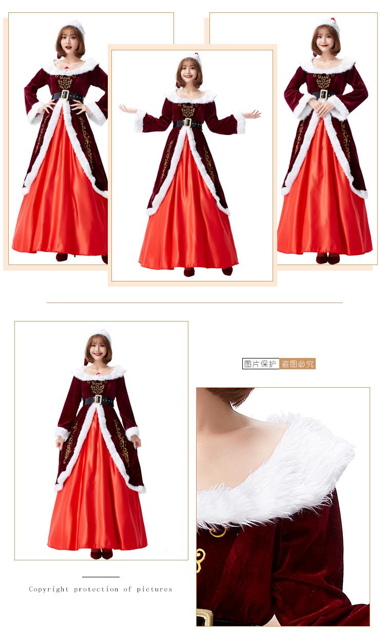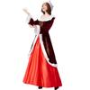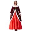 Disfraz de cosplay de Halloween para actuación festiva, vestido con estampado noble de reina de Navidad rojo vino alegre