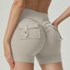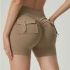 Pantalones de Yoga de Bolsillo de Pierna Ancha y Cadera de Melocotón Europeos y Americanos Transfronterizos para Mujer, Adecuados para Correr al Aire Libre, Shorts de Fitness de Secado Rápido, Shorts de Yoga